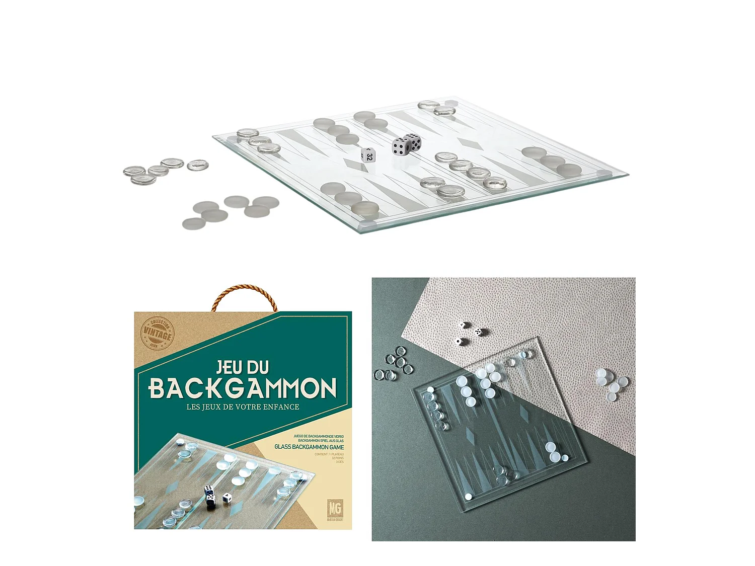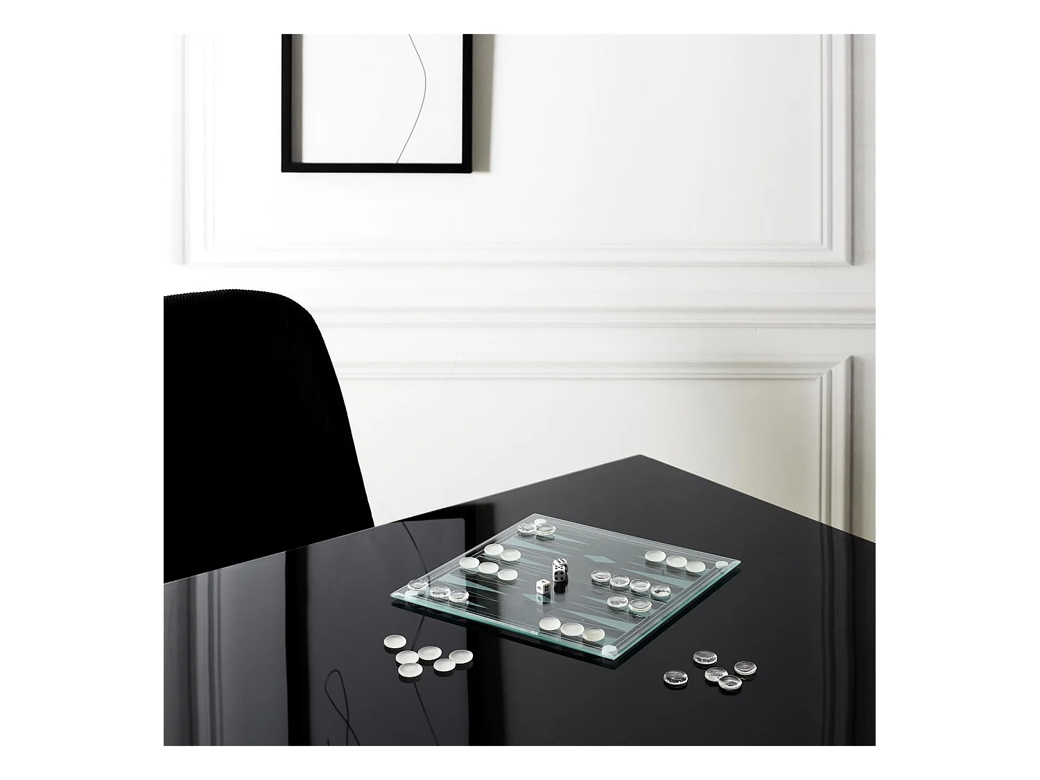 Jeu De Backgammon En Verre Blanc, Noir