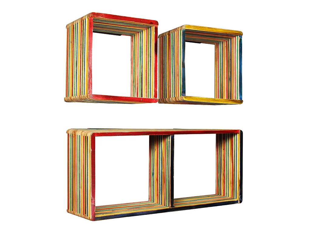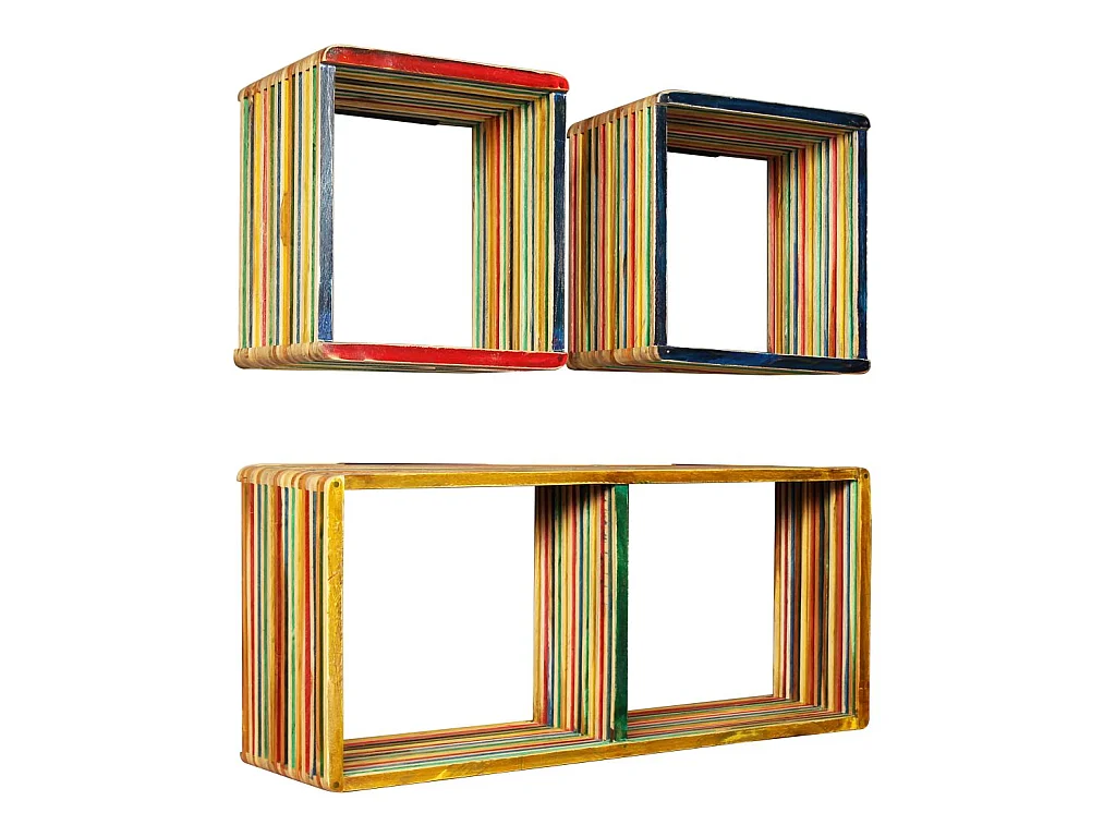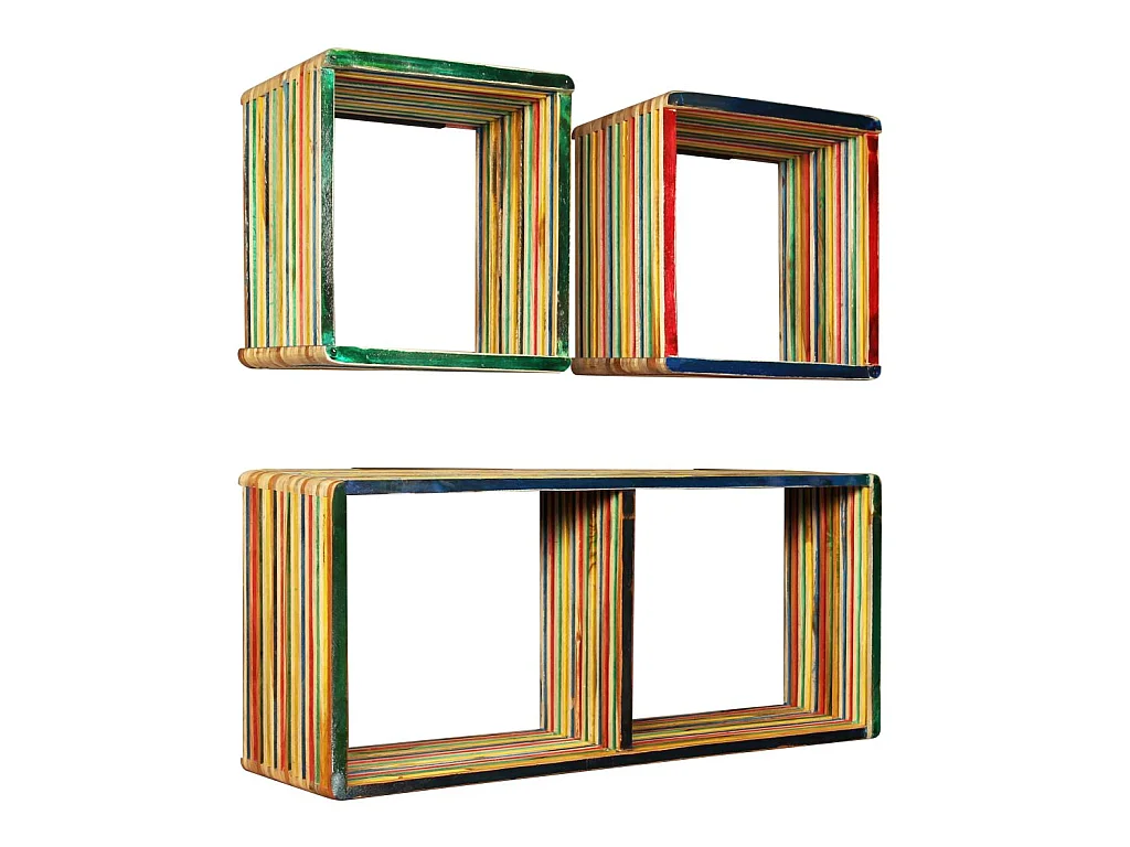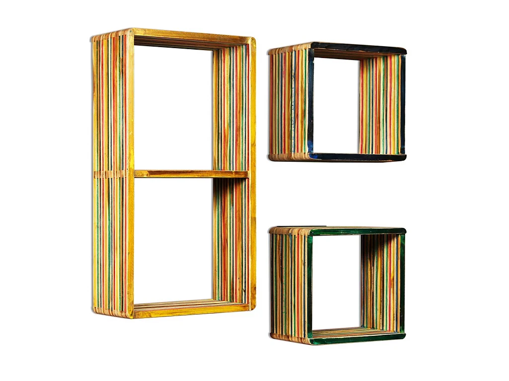 Jeu d'étagère murale 3 pcs Teck massif recyclé Multicolore