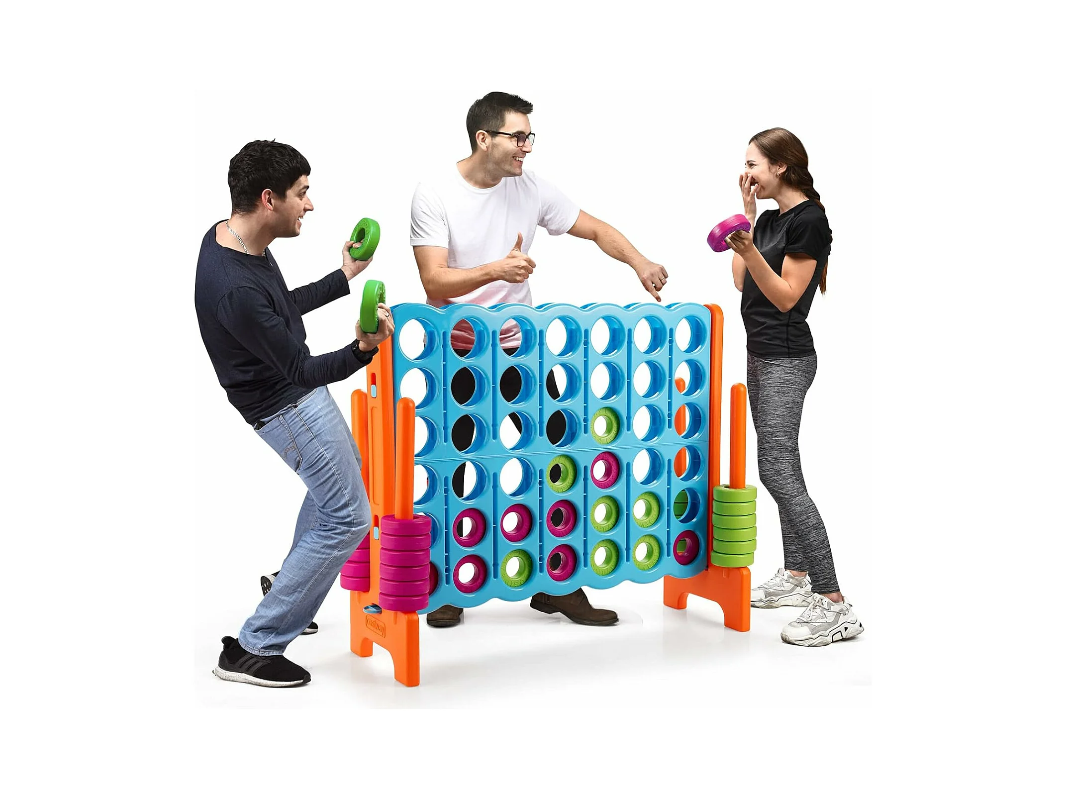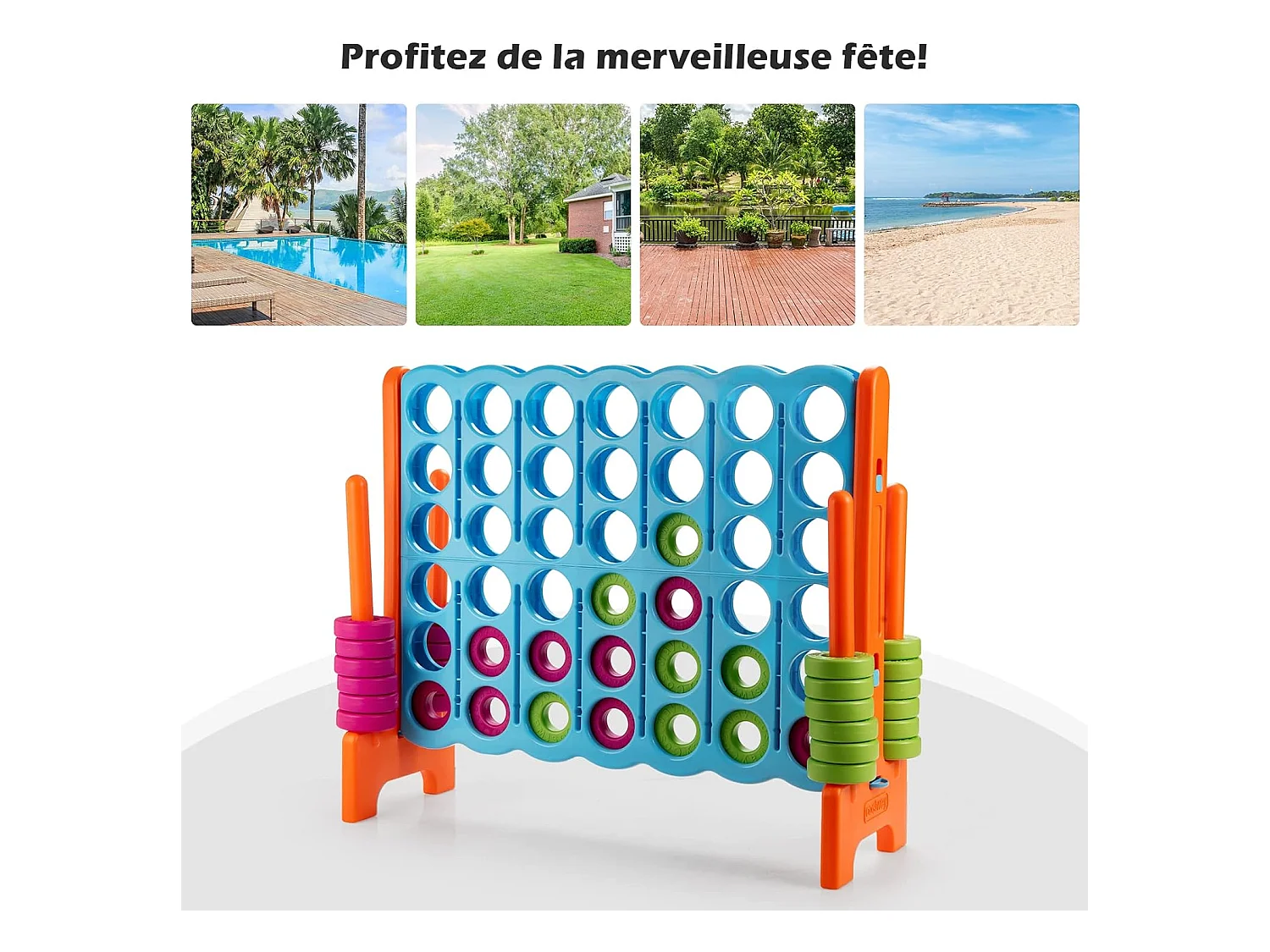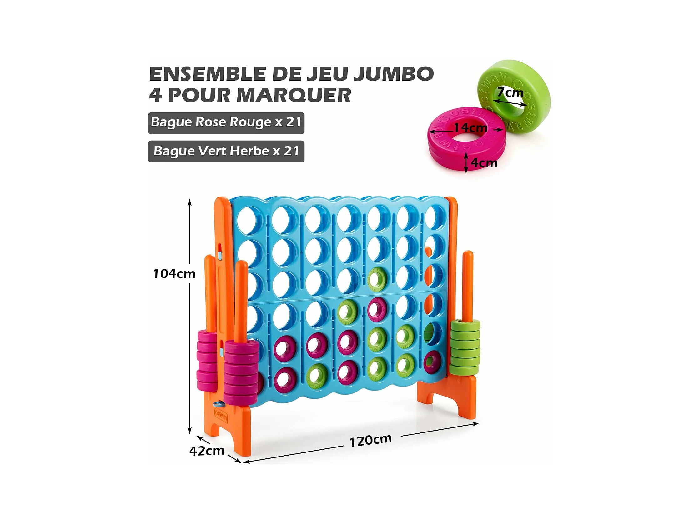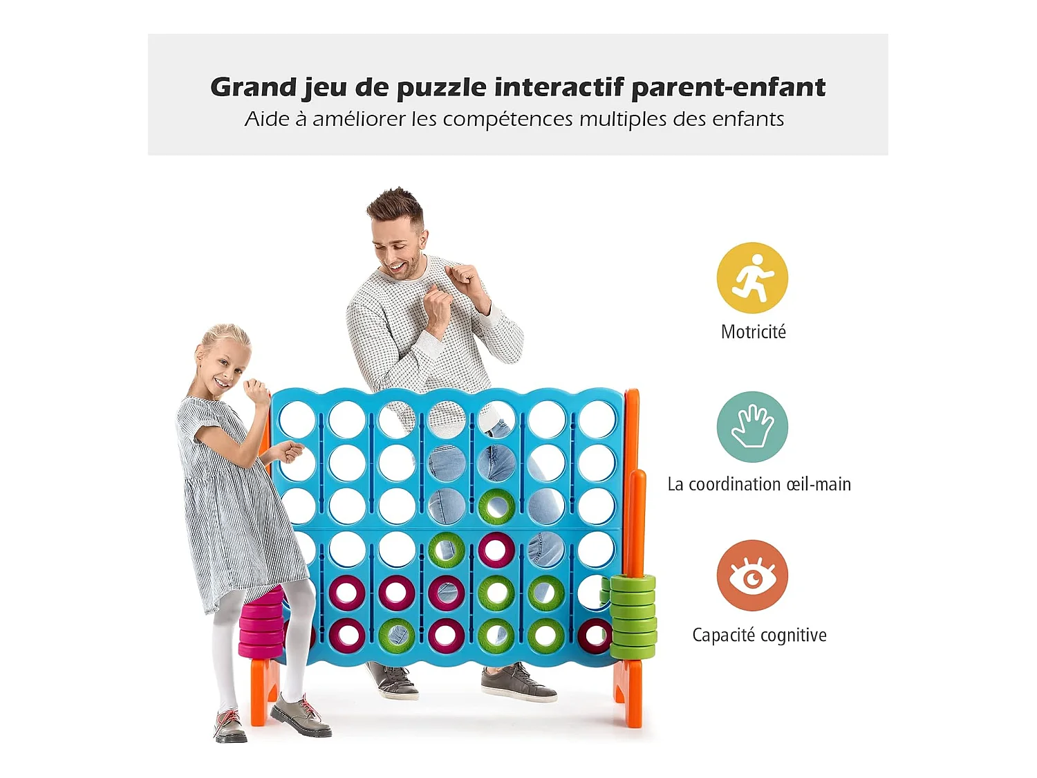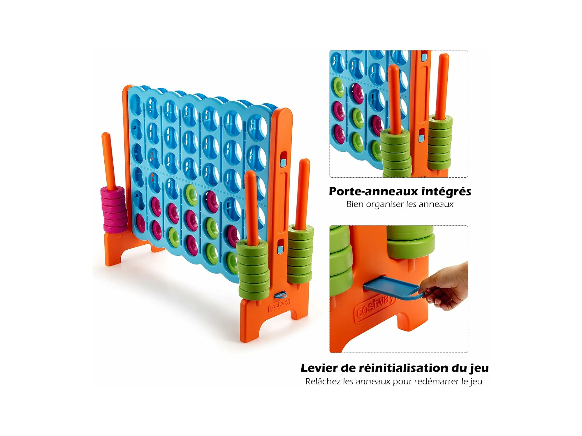 Jeux Puissance 4 Géant Enfants avec 42 Jetons, Jeu de Société Ludique & Éducatif avec Porte-Anneaux, Levier de Réinitialisation, Utilisation Intérieur et Extérieur