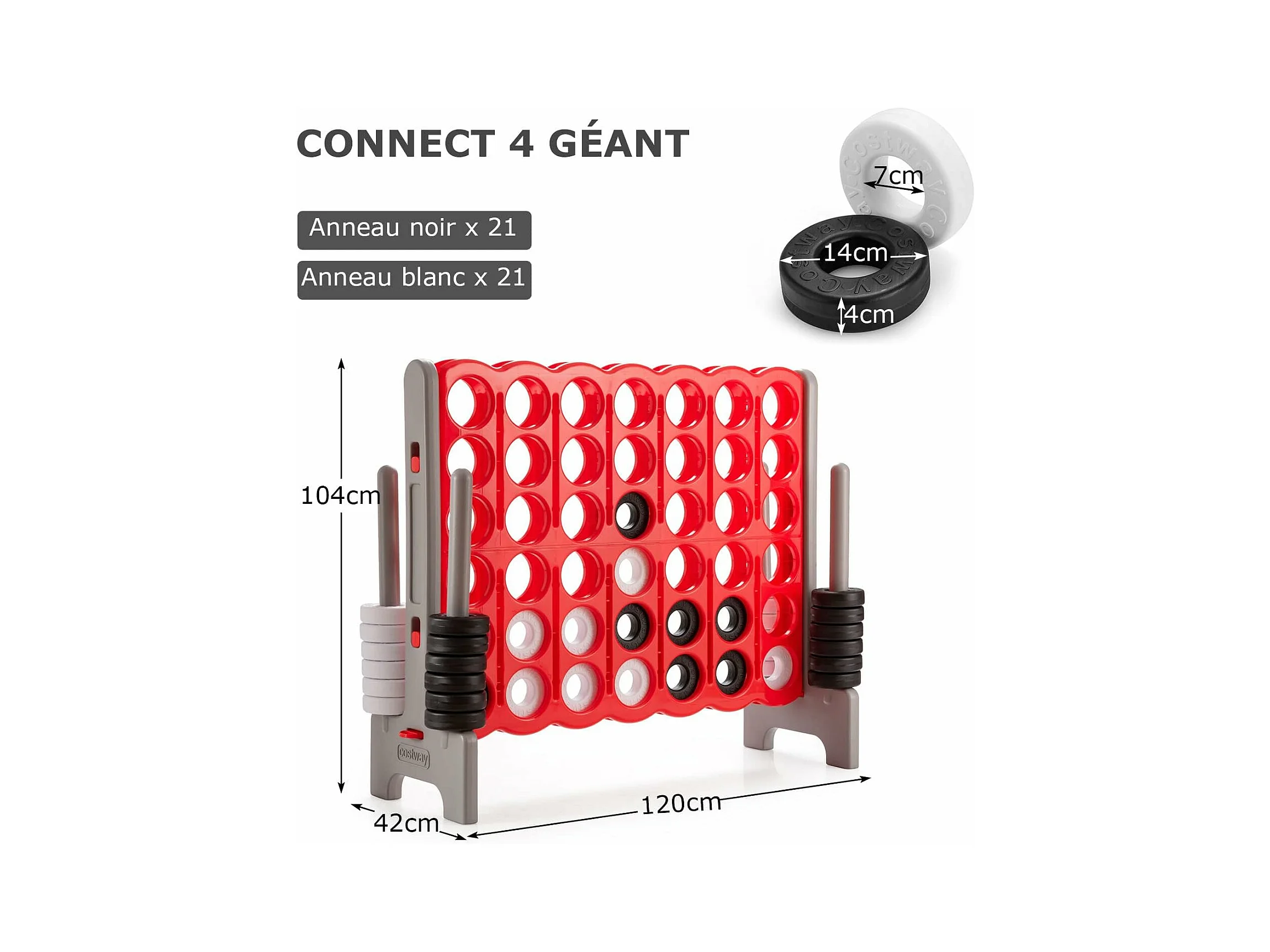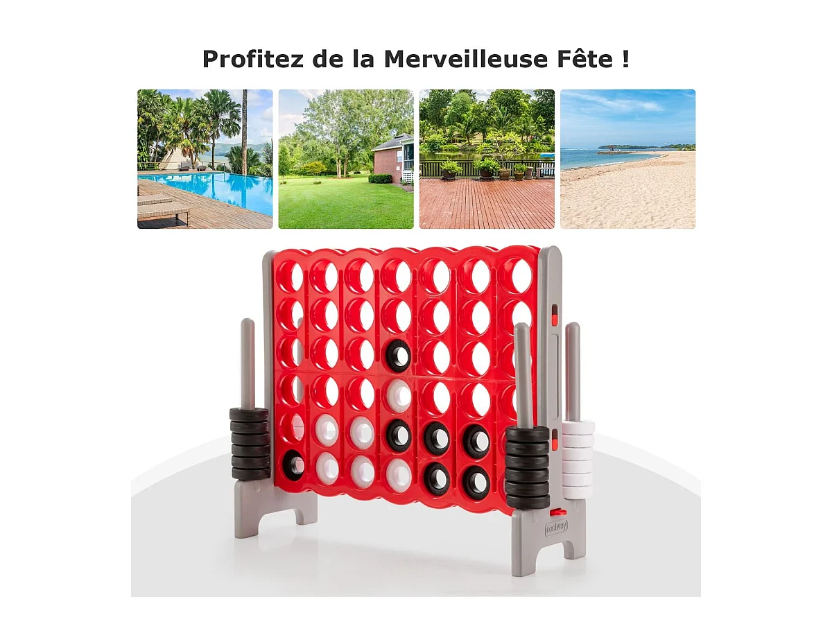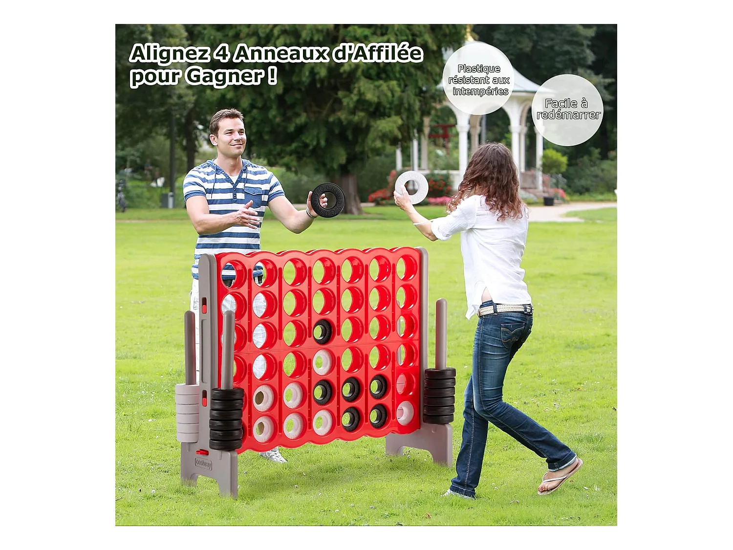 Jeux Puissance 4 Géant Enfants avec 42 Jetons, Jeu de Société Ludique & Éducatif avec Porte-Anneaux, Levier de Réinitialisation, Utilisation Intérieur et Extérieur