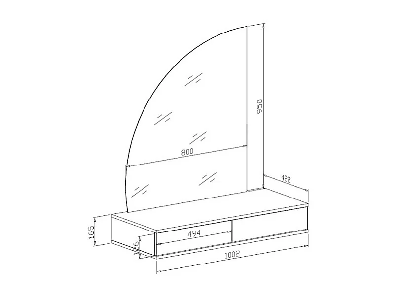 Coiffeuse suspendue avec miroir à LEDs - 2 tiroirs – Coloris : Naturel clair - JINEZA