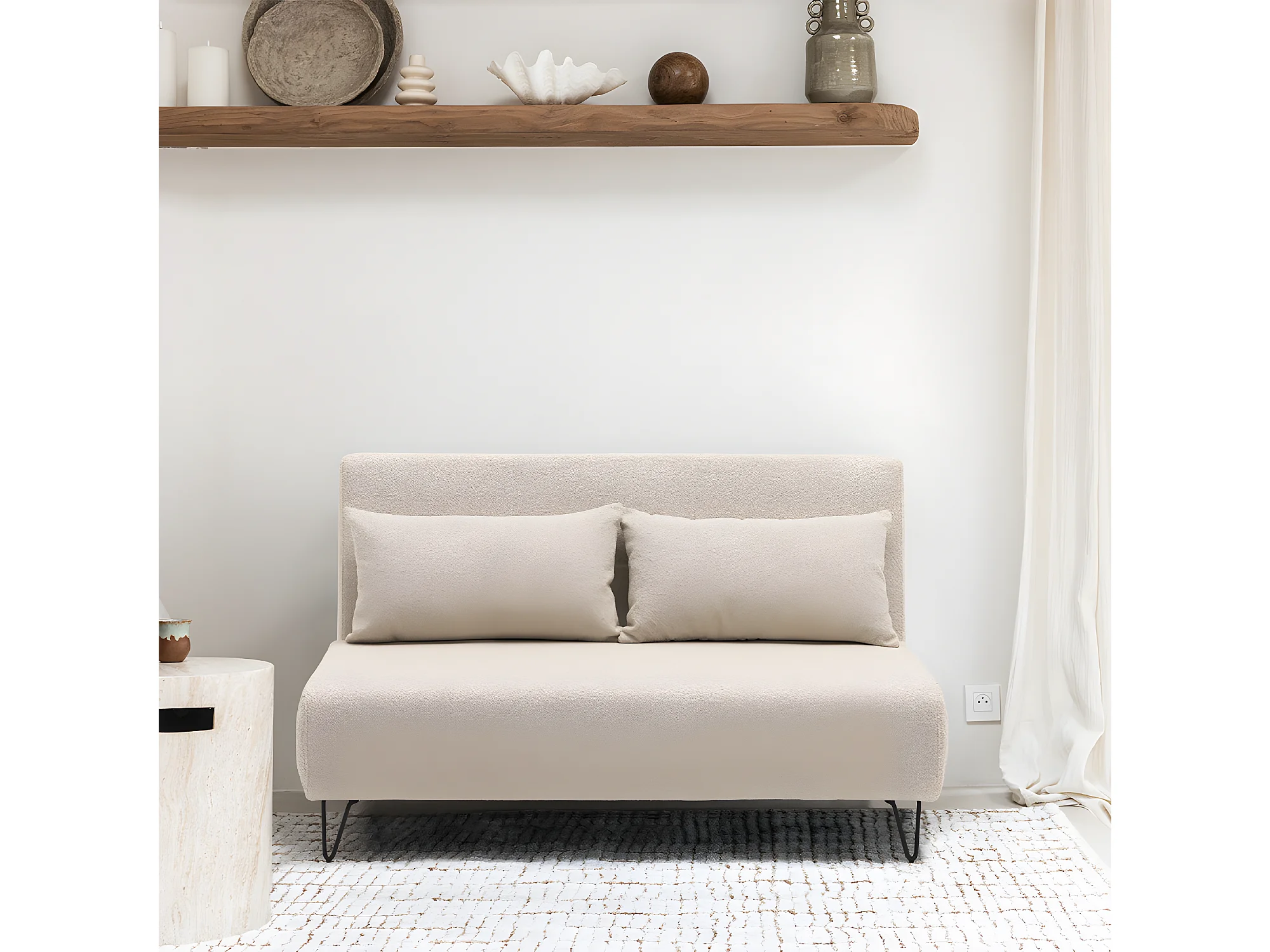 Joe harper - Canapé convertible 2 places en tissu bouclette - Écru
