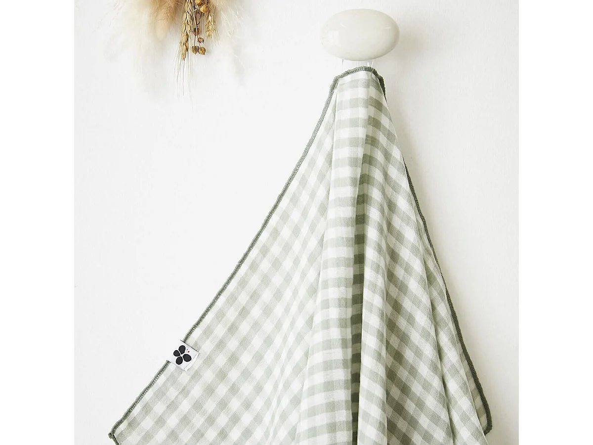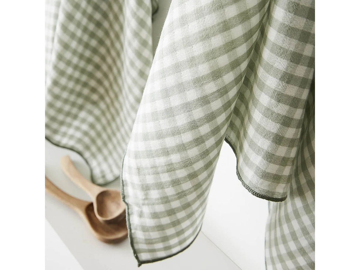 JOEL - Lot de 2 Essuie-mains 50x70cm Gaze de Coton Vichy Coloris Eucalyptus