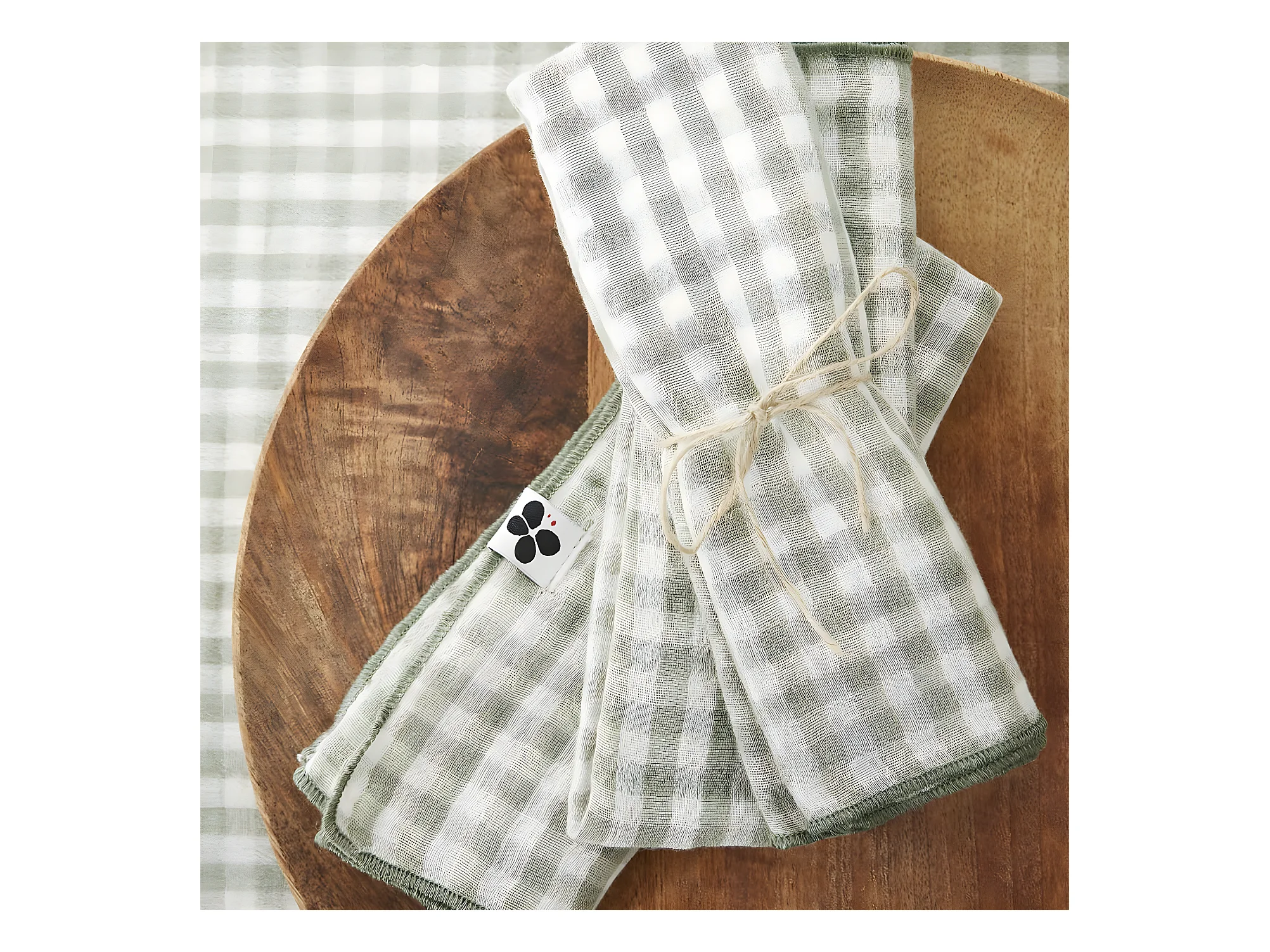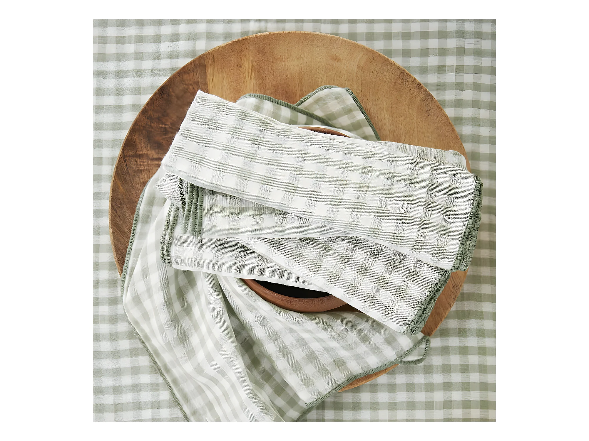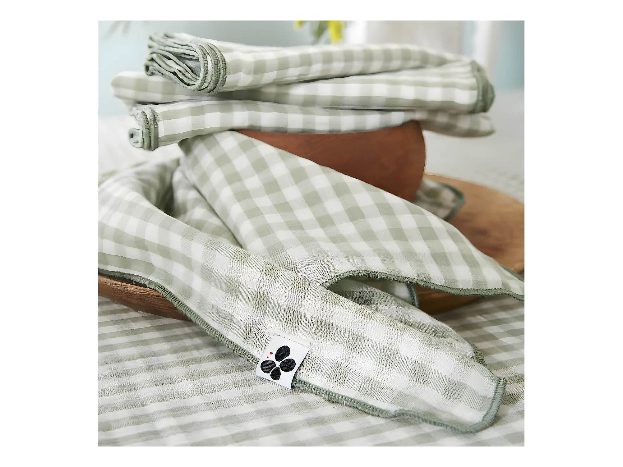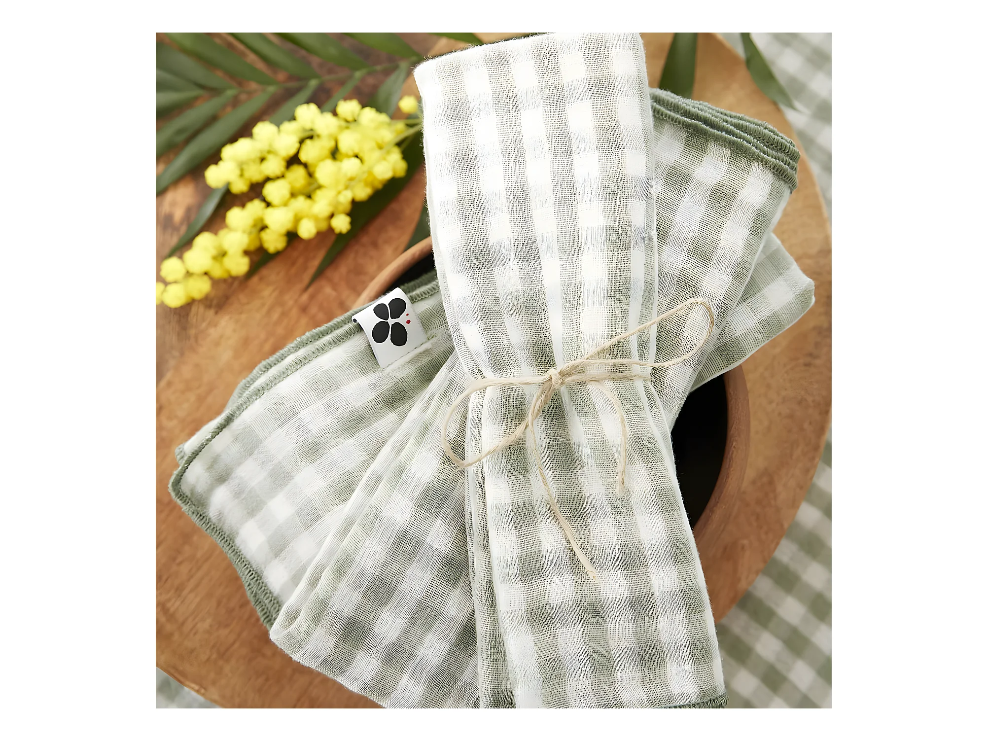 JOEL - Lot de 3 Serviettes 40x40cm Gaze de Coton Vichy Coloris Eucalyptus