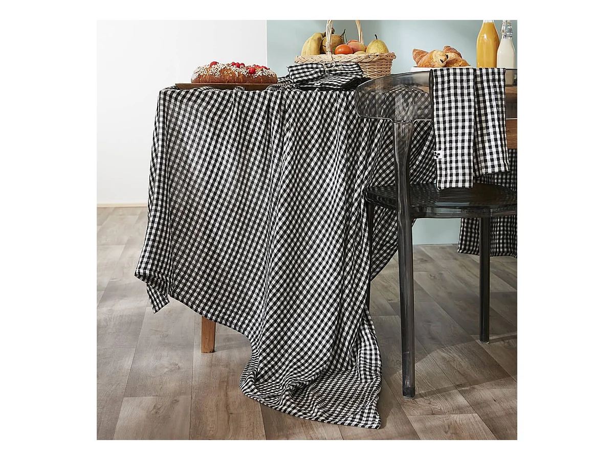 JOEL - Nappe Rectangulaire 150x350cm Gaze de Coton Vichy Coloris Truffe
