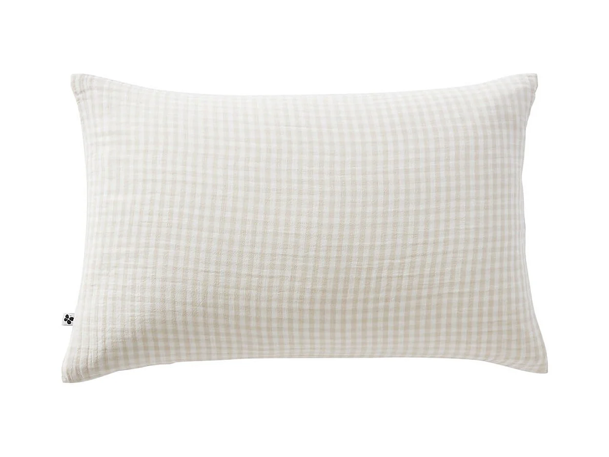 OUREA MOTIF - Taie d'Oreiller 50x70cm Gaze de Coton Pampa à Grands Carreaux