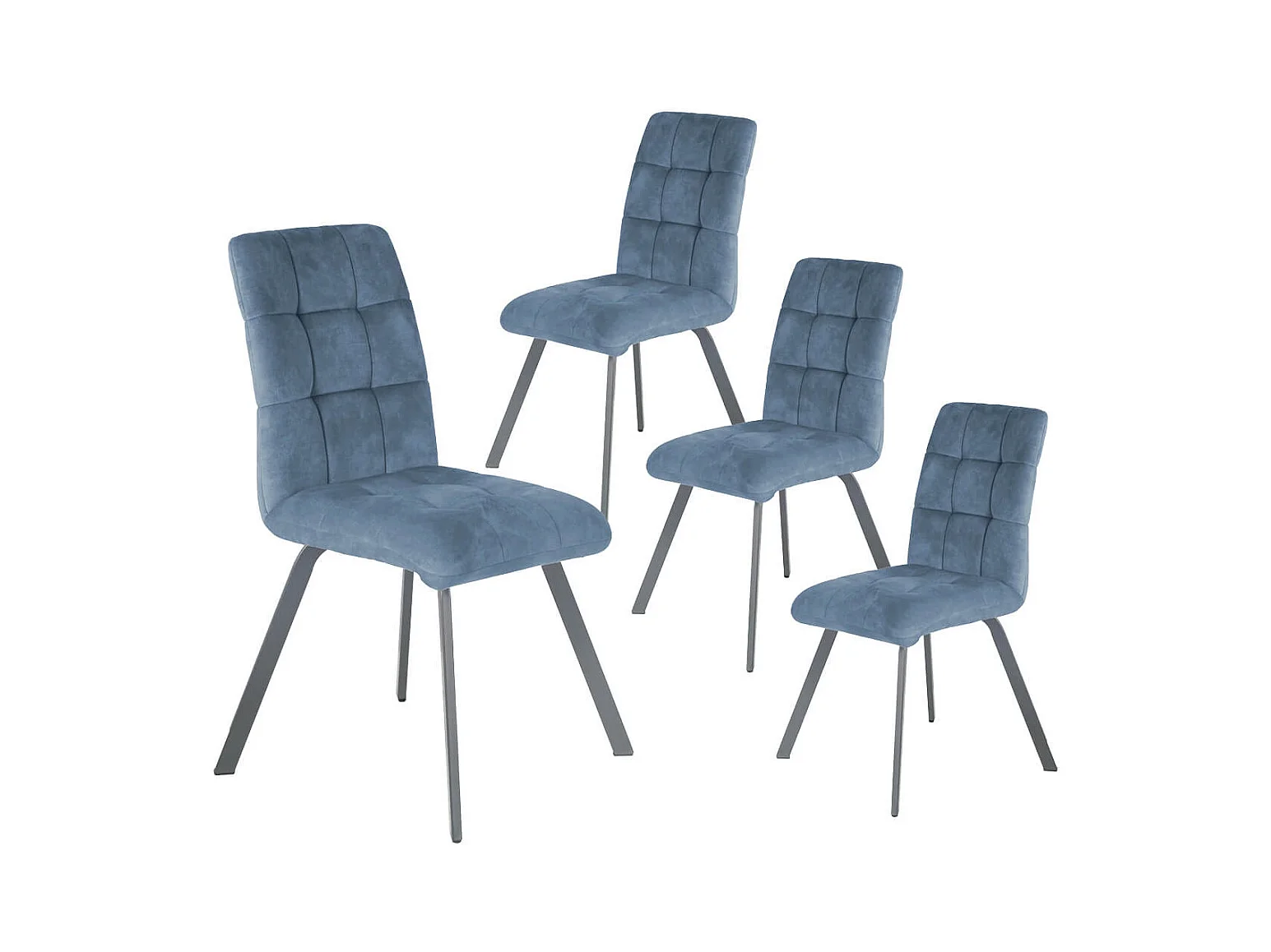 JOHN - Lot de 4 Chaises Capitonnées Bleu Gris