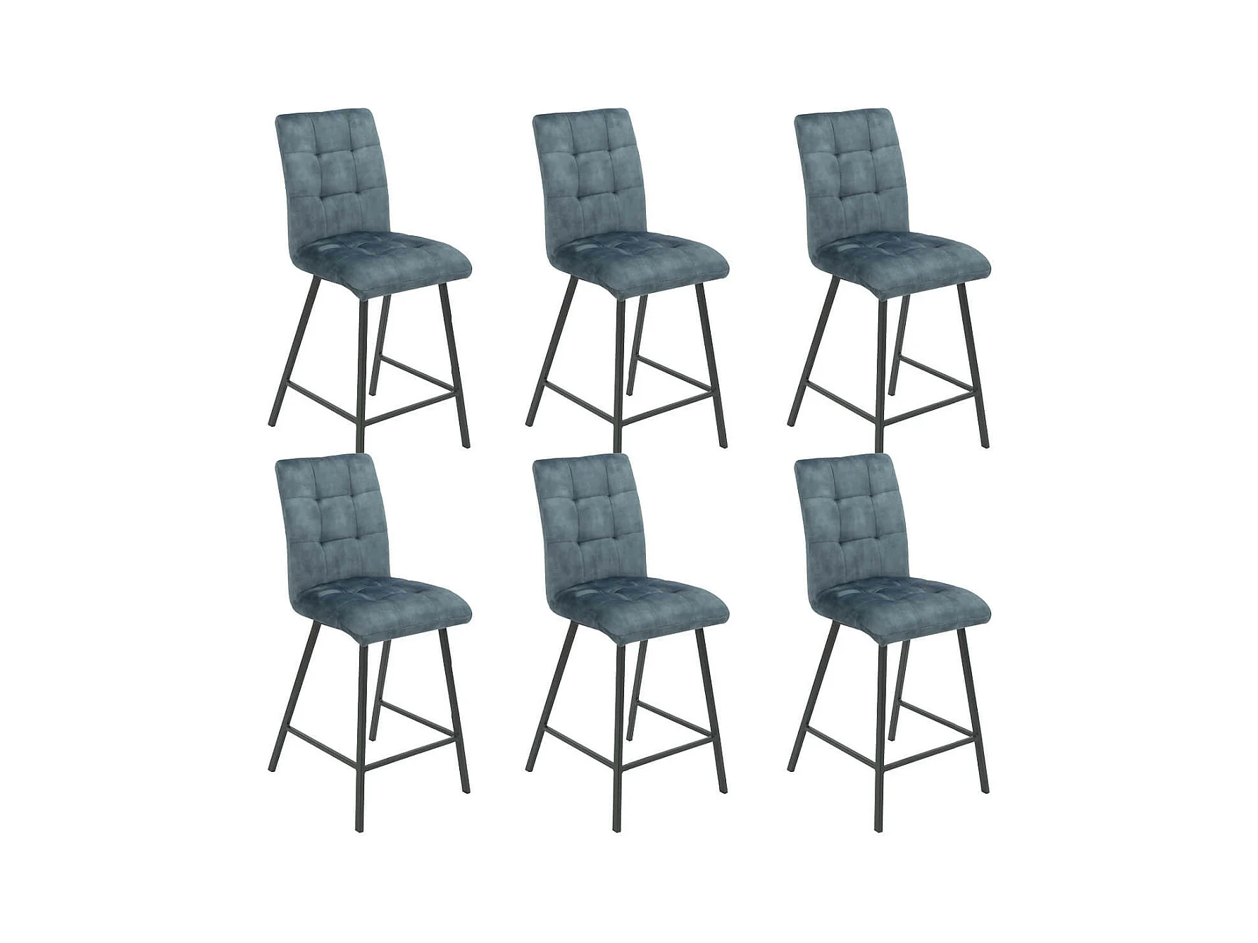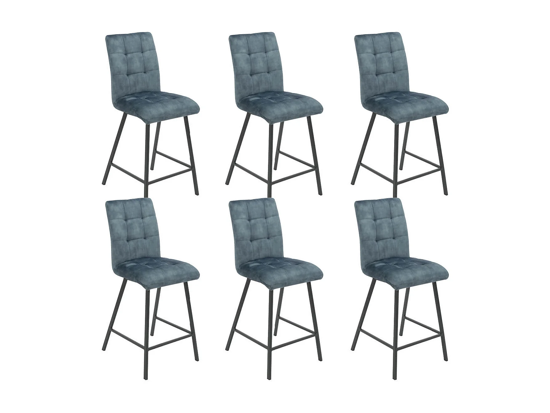 JOHN - Lot de 6 Tabourets de Bar Capitonnés Bleu Gris