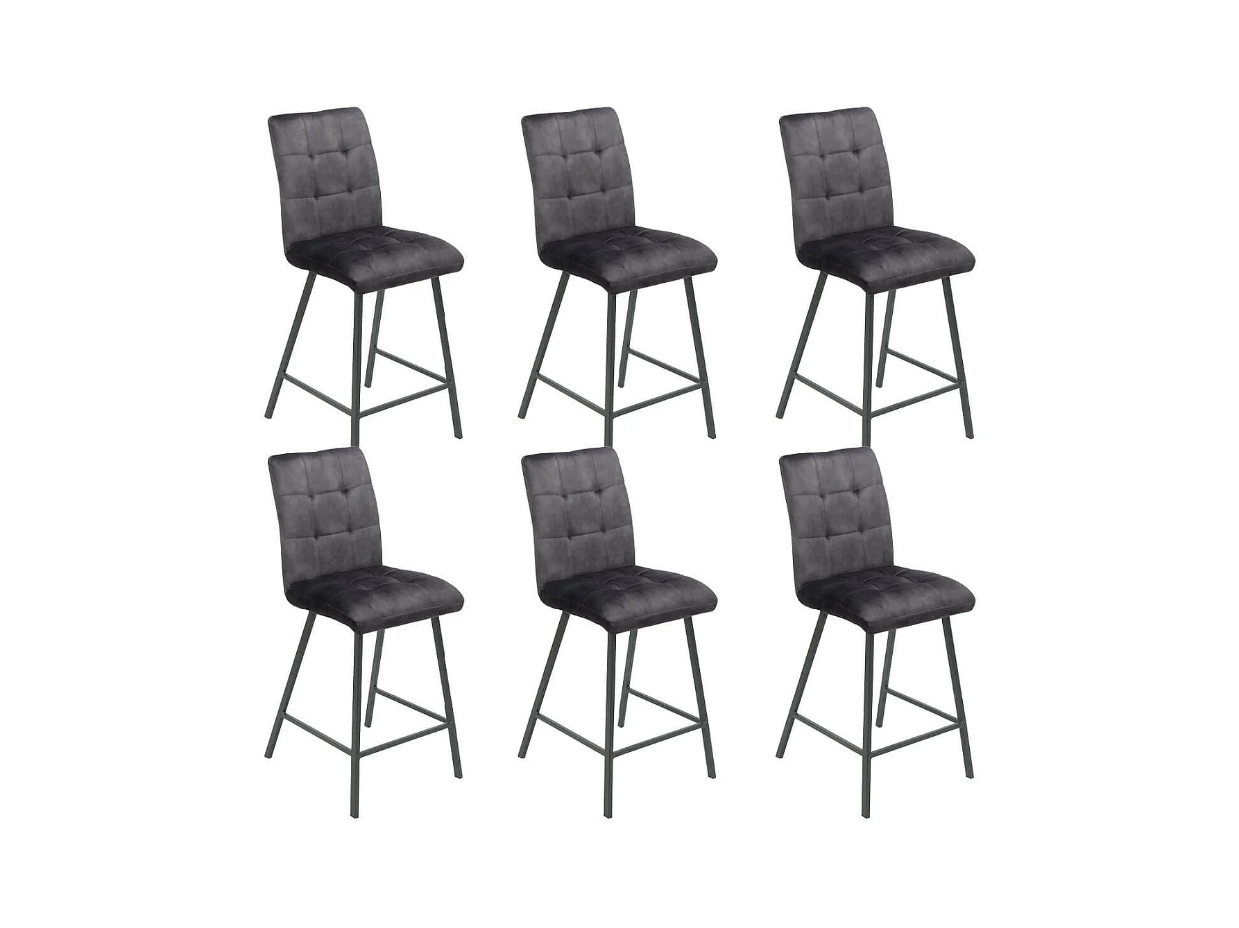 JOHN - Lot de 6 Tabourets de Bar Capitonnés Gris
