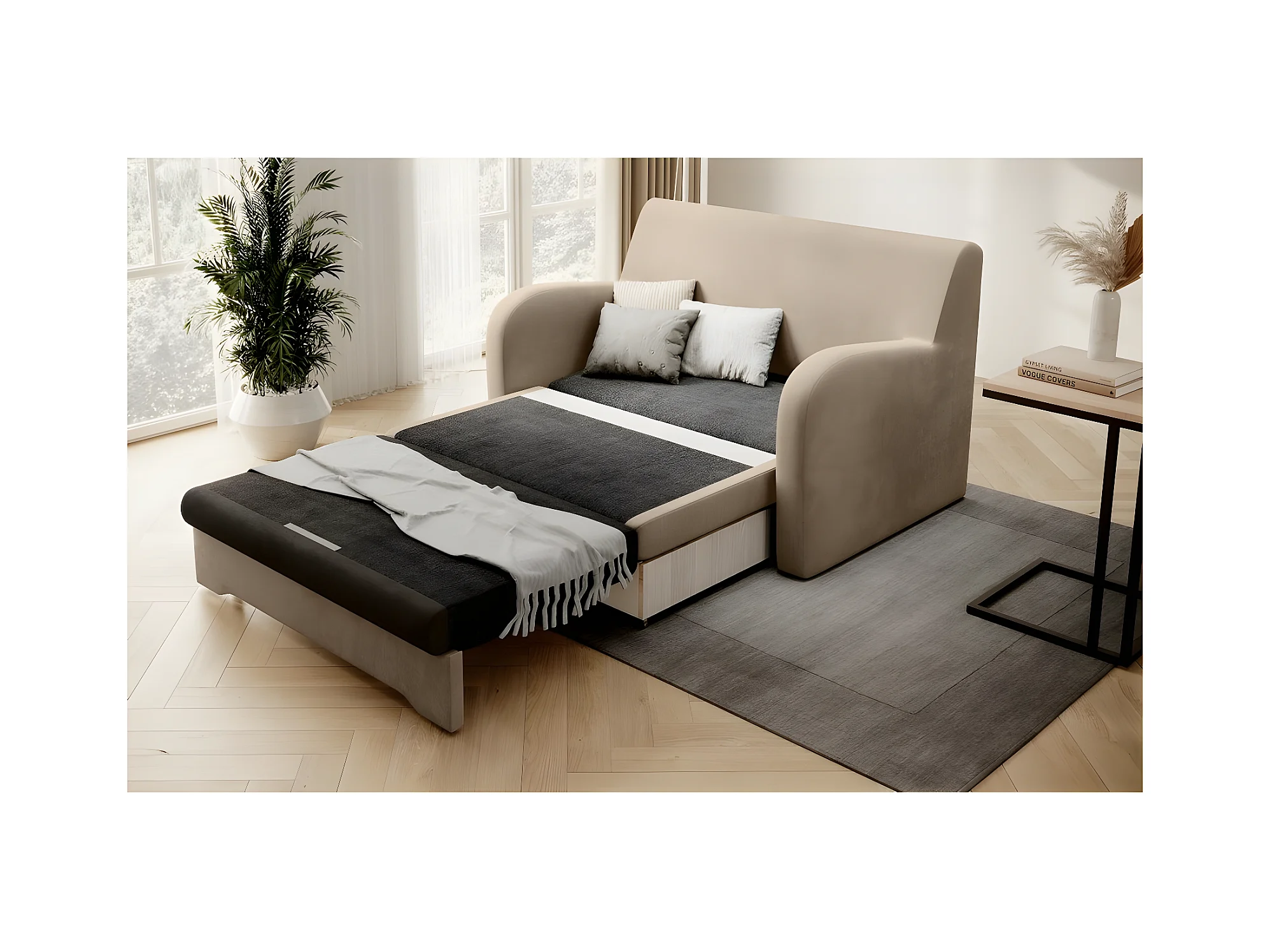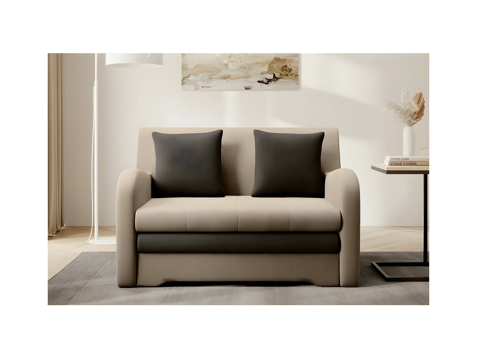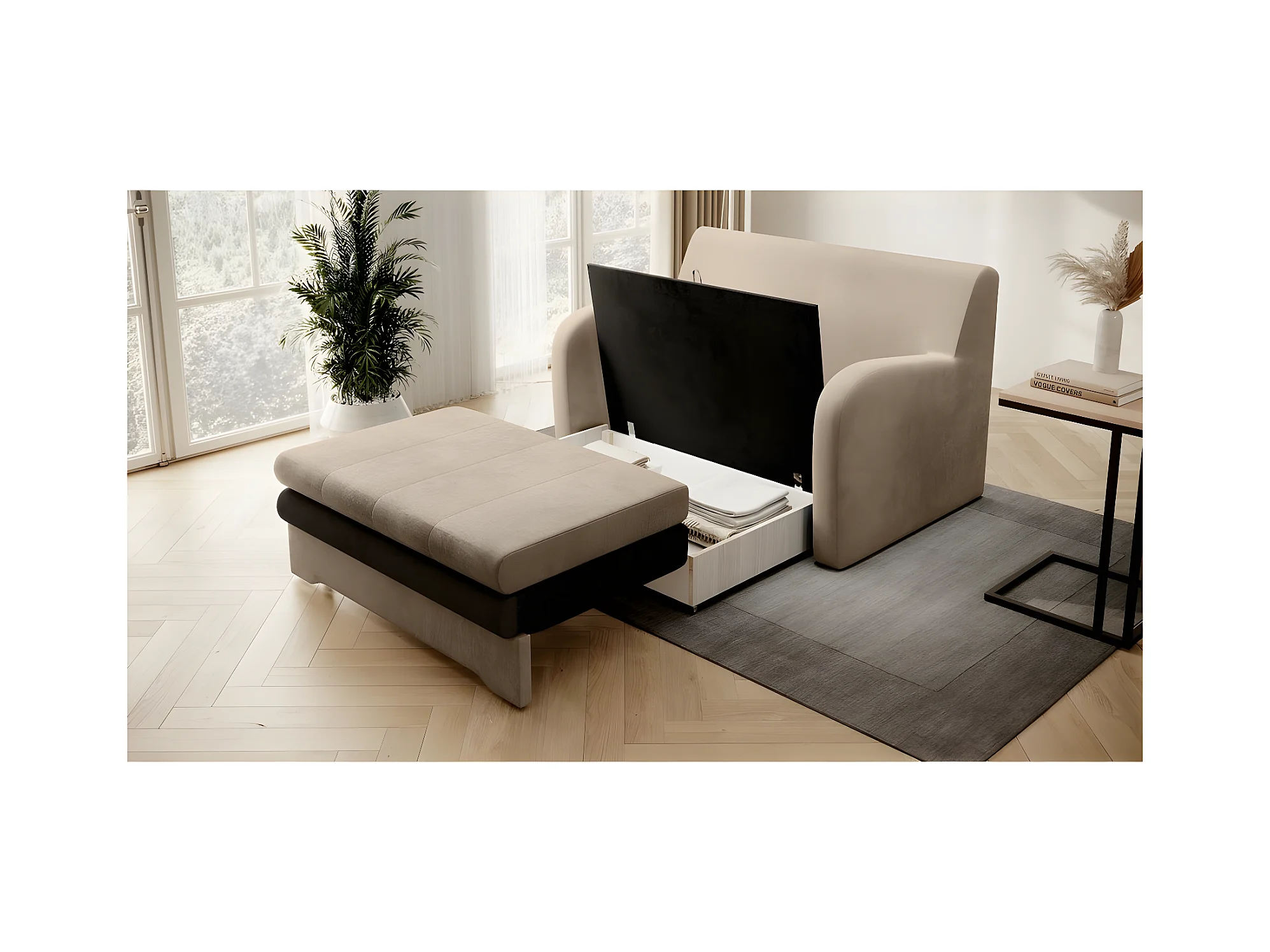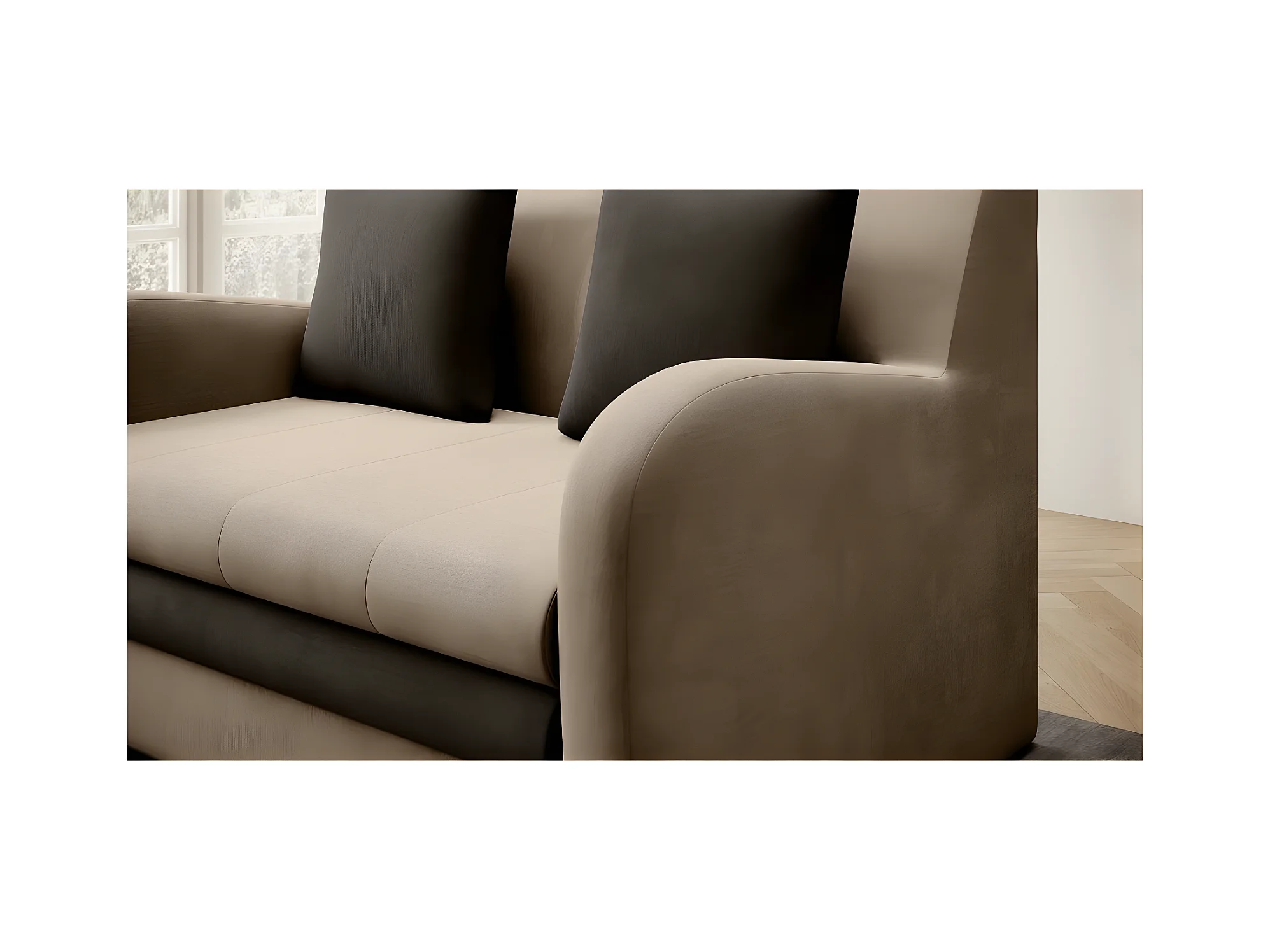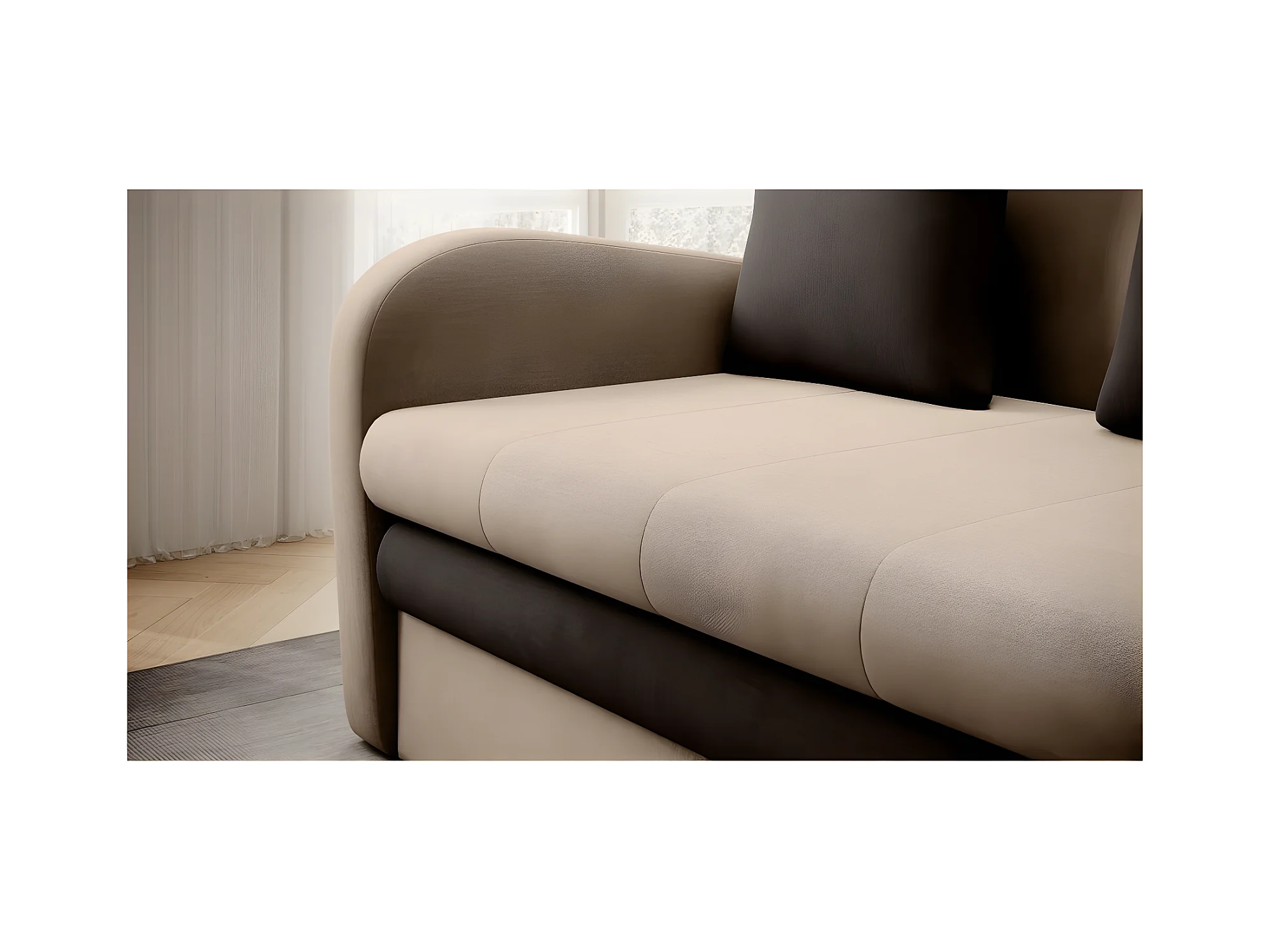 Joli canapé convertible avec rangement en velours beige et chocolat, ARIEL