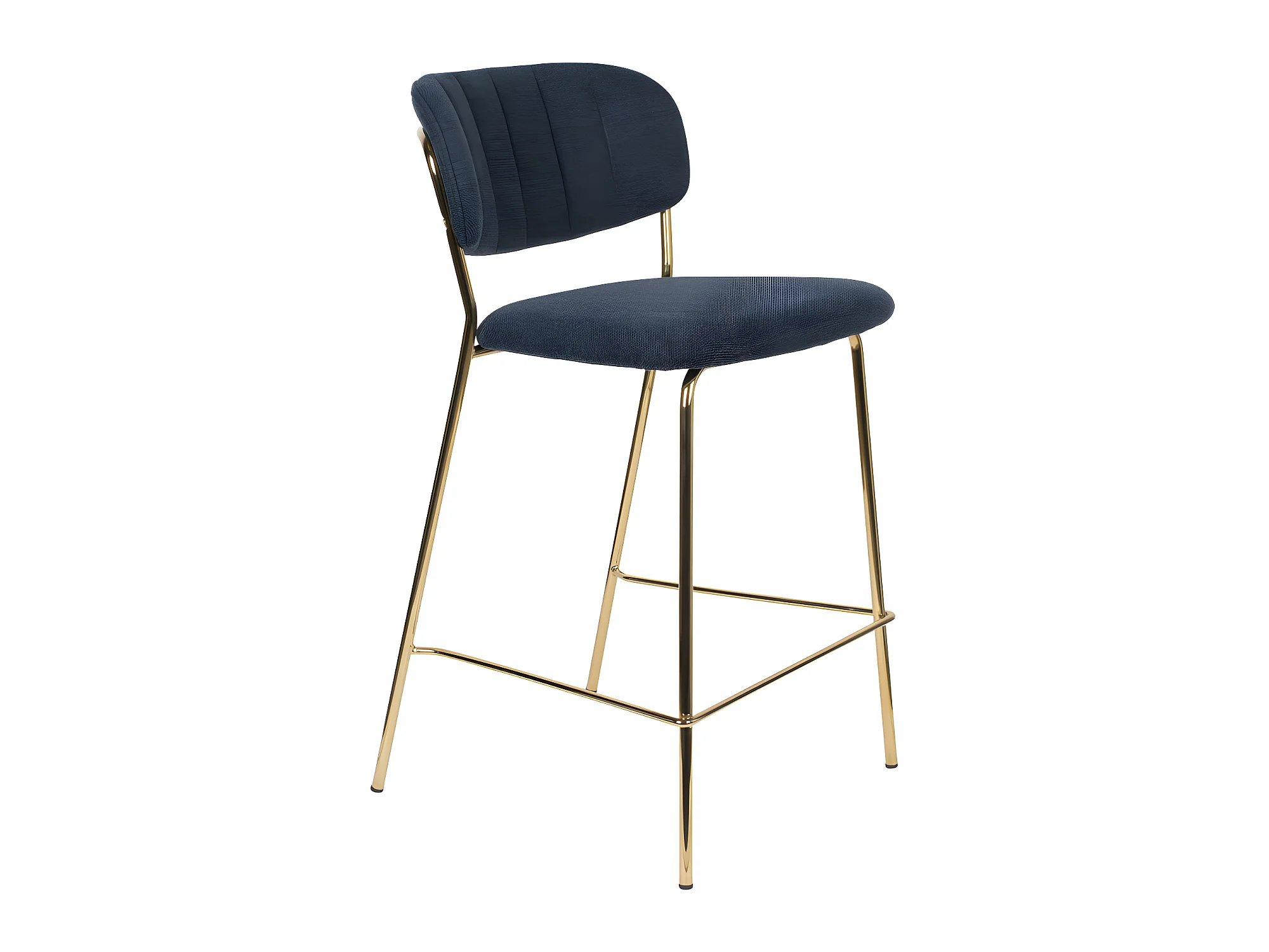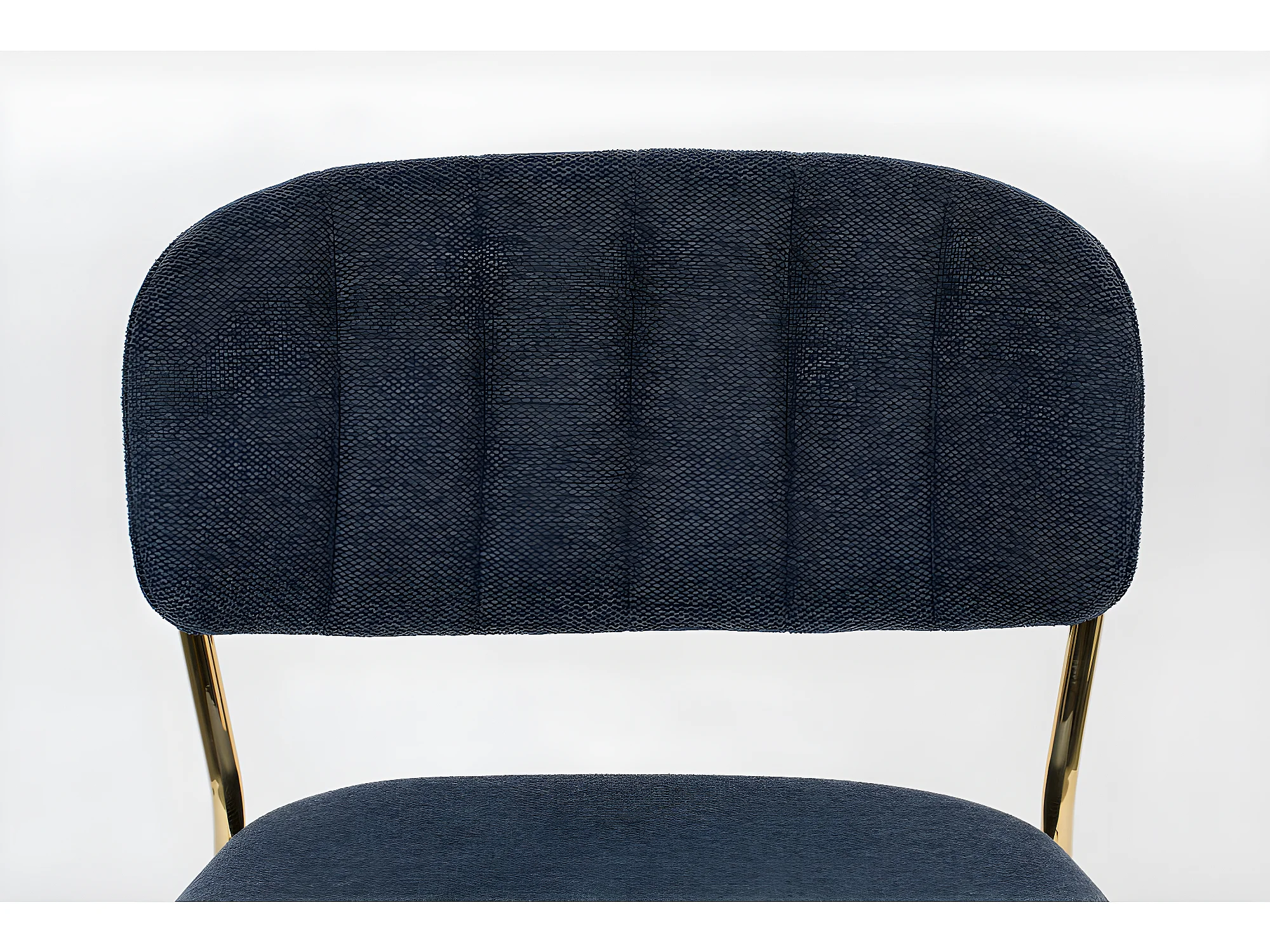 Jolien - Lot de 2 tabourets de bar en tissu avec pieds dorés H65cm - Bleu foncé
