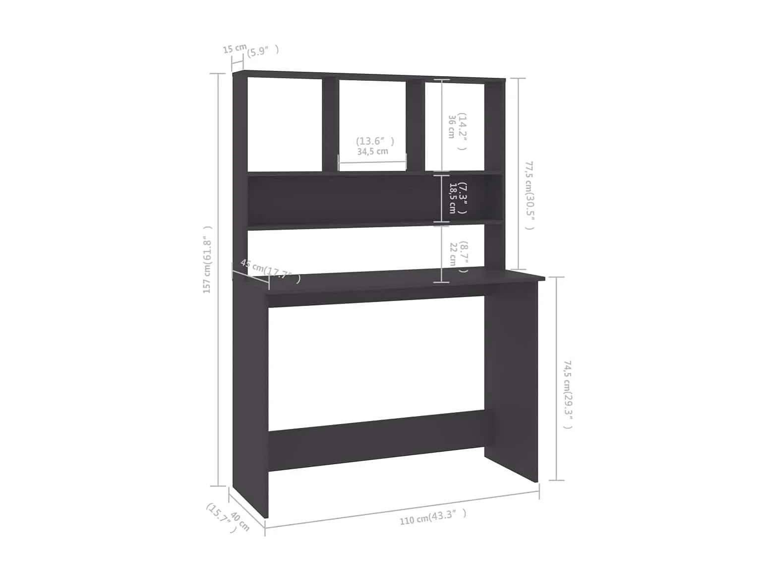 Jomala Bureau avec étagères Gris 110x45x157 cm Bois d'ingénierie