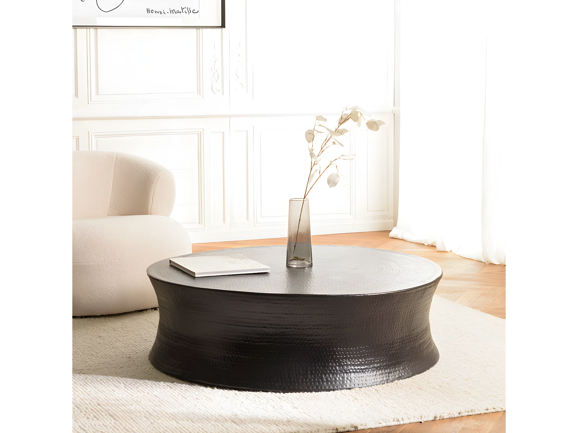 JONAS - Table basse ronde 117x117cm en aluminium noir