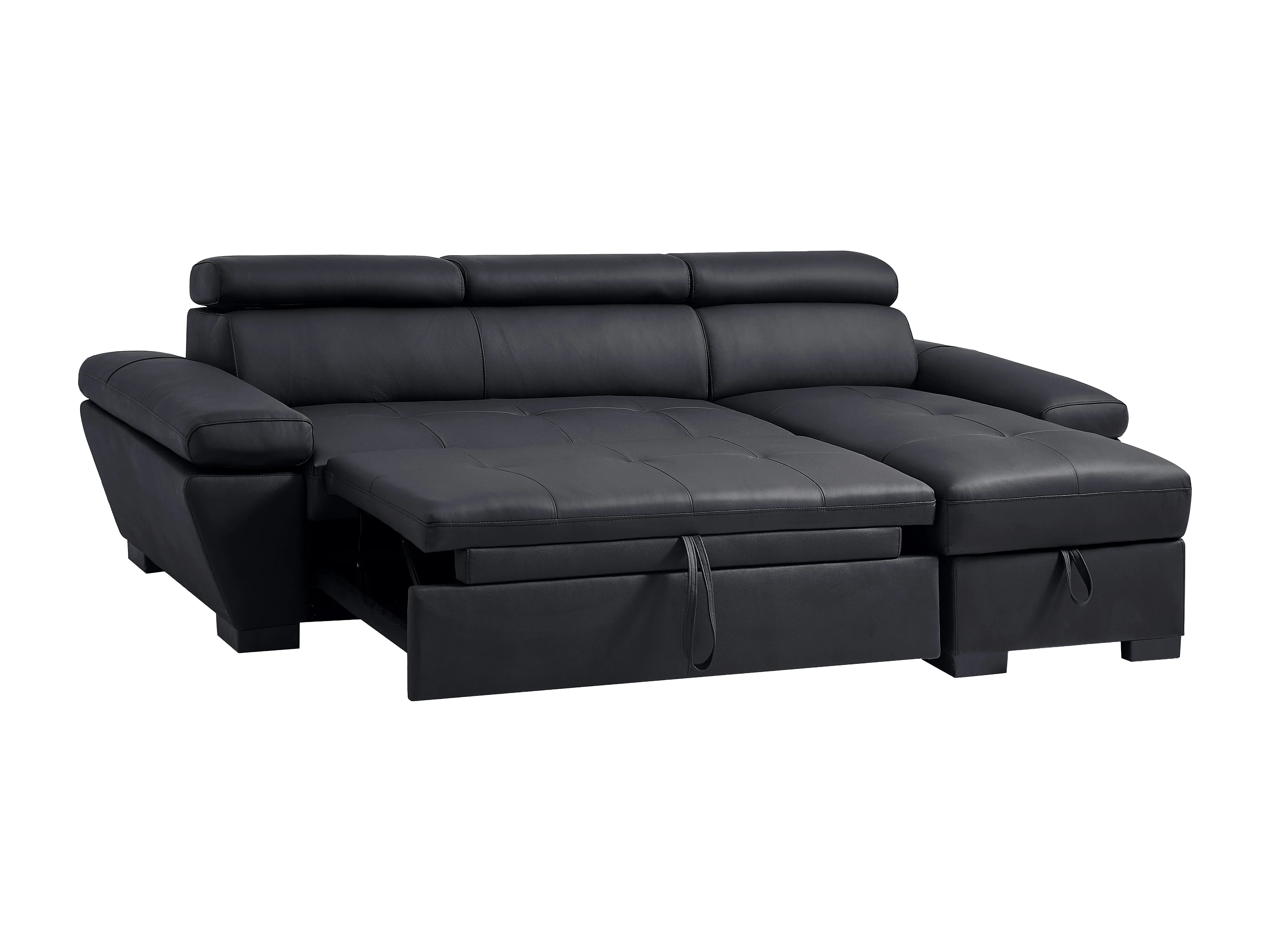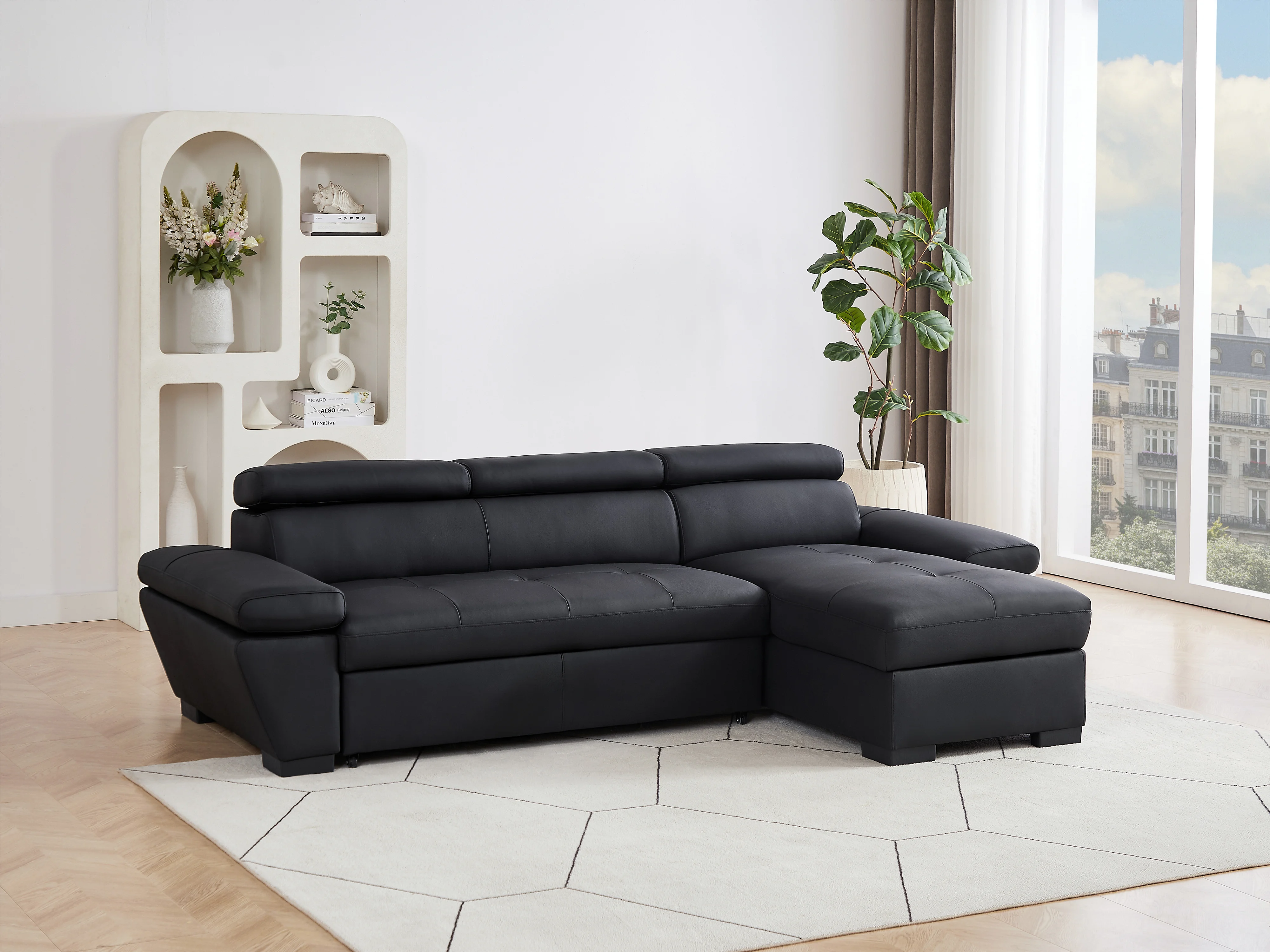 Canapé d'angle droit convertible en cuir noir JONOVA