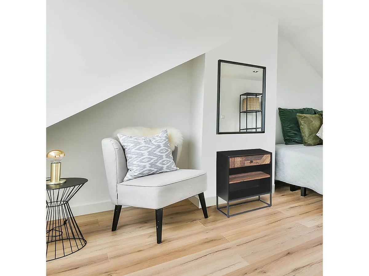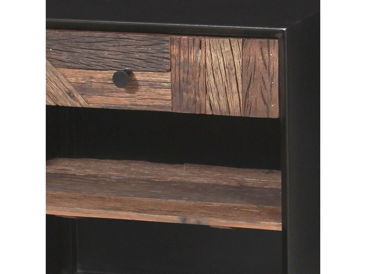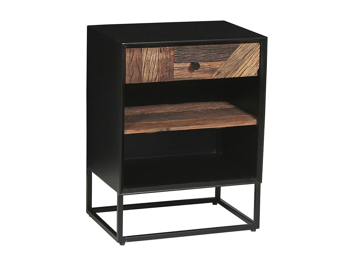 JORDAN - Chevet 1 Tiroir 2 Niches en Métal Noir et Bois Recyclé