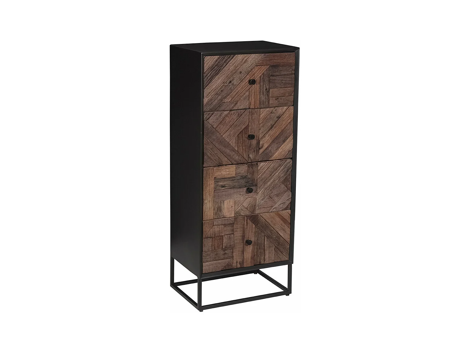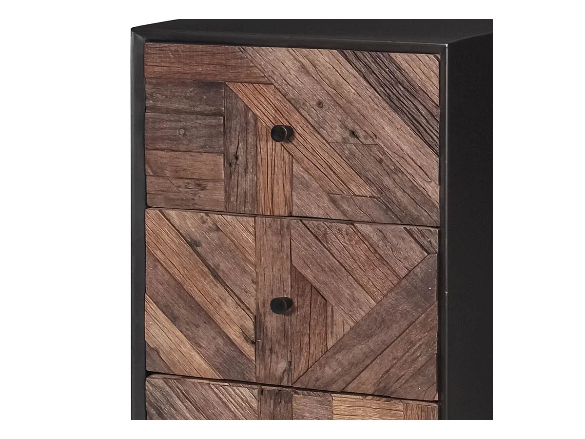 JORDAN - Chiffonnier 4 Tiroirs en Métal Noir et Bois Recyclé