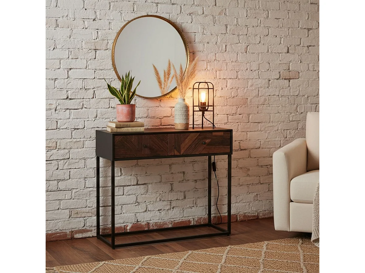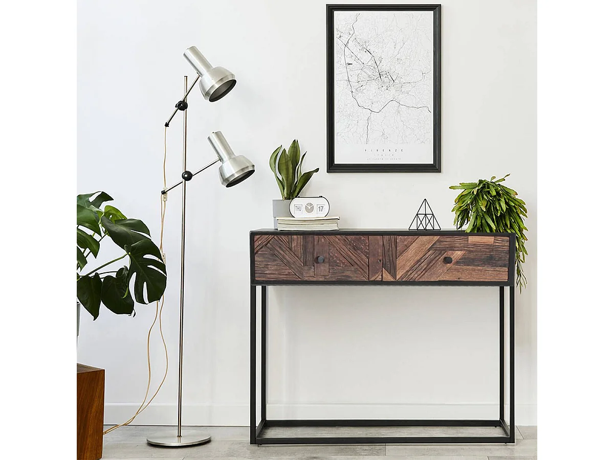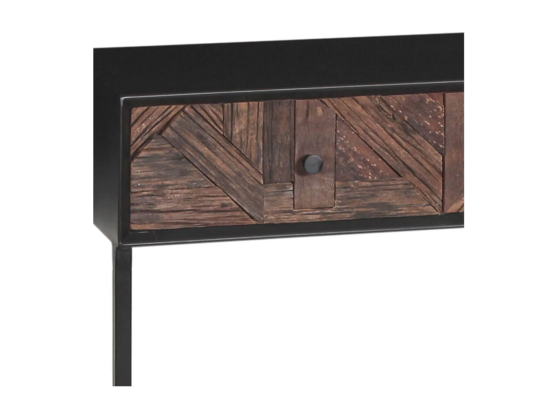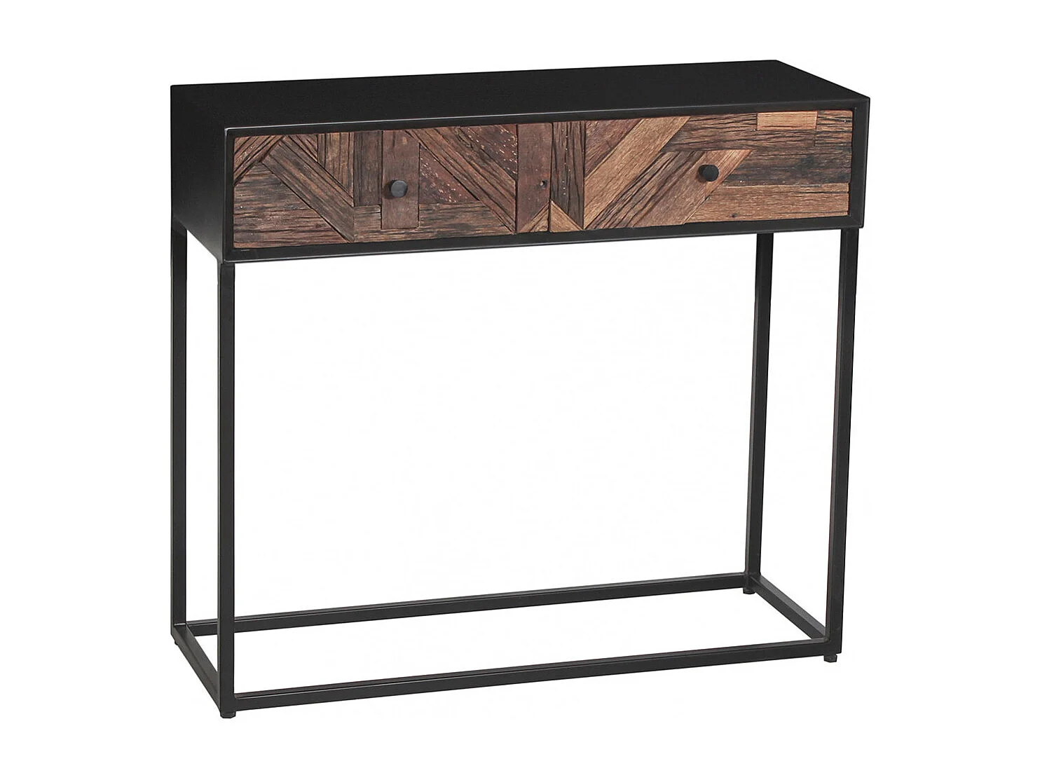 JORDAN - Console 2 Tiroirs en Métal Noir et Bois Recyclé
