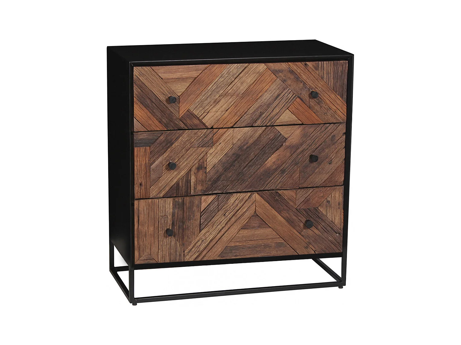 JORDAN - Meuble d'entrée 3 Tiroirs en Métal Noir et Bois Recyclé