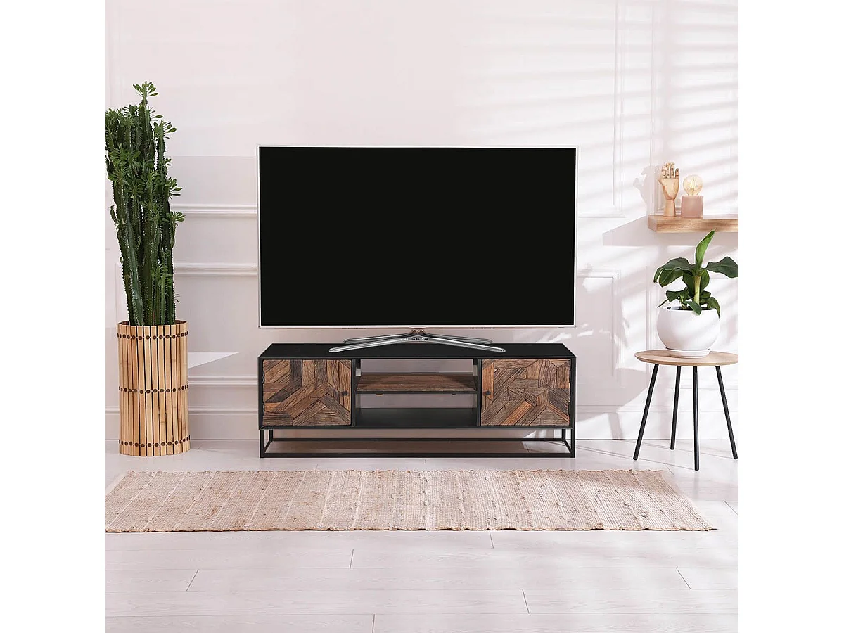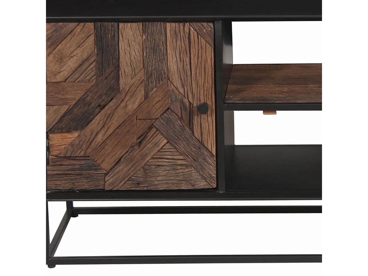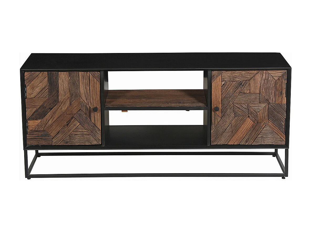 JORDAN - Meuble TV 2 Portes 2 Niches en Métal Noir et Bois Recyclé