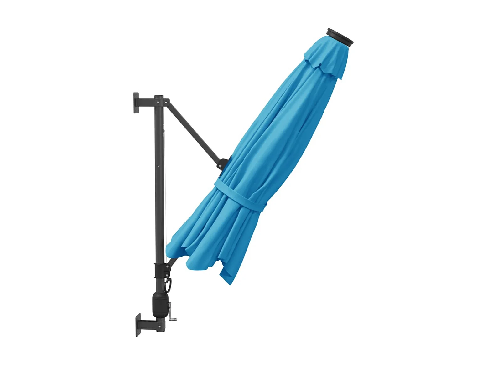 Jorikur Parasol mural avec LED bleu mer 290 cm