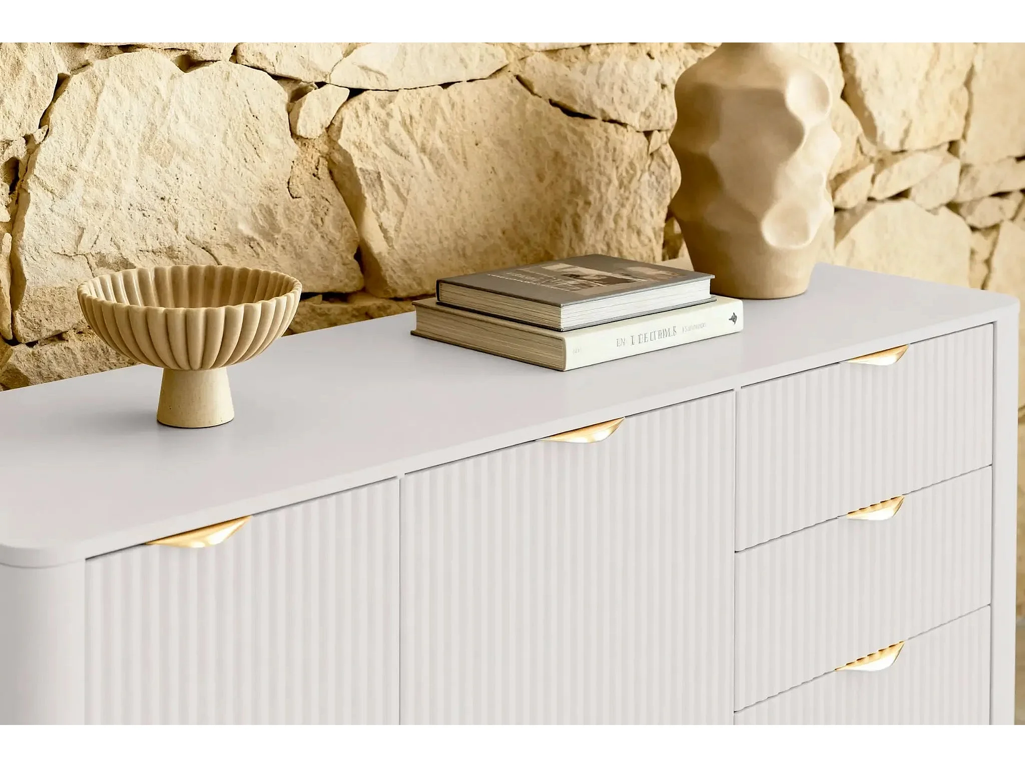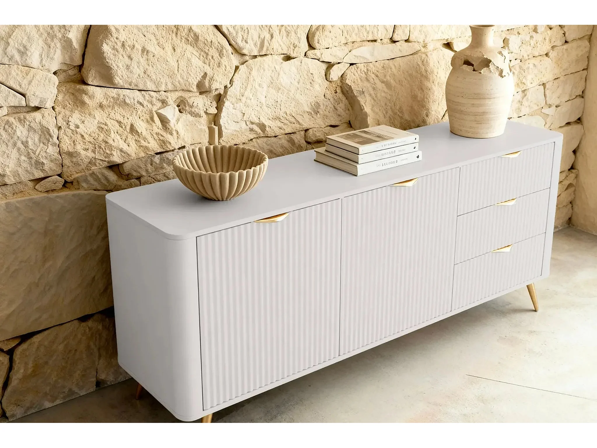JOUDY - Buffet 2 portes 163cm effet rainuré - Beige