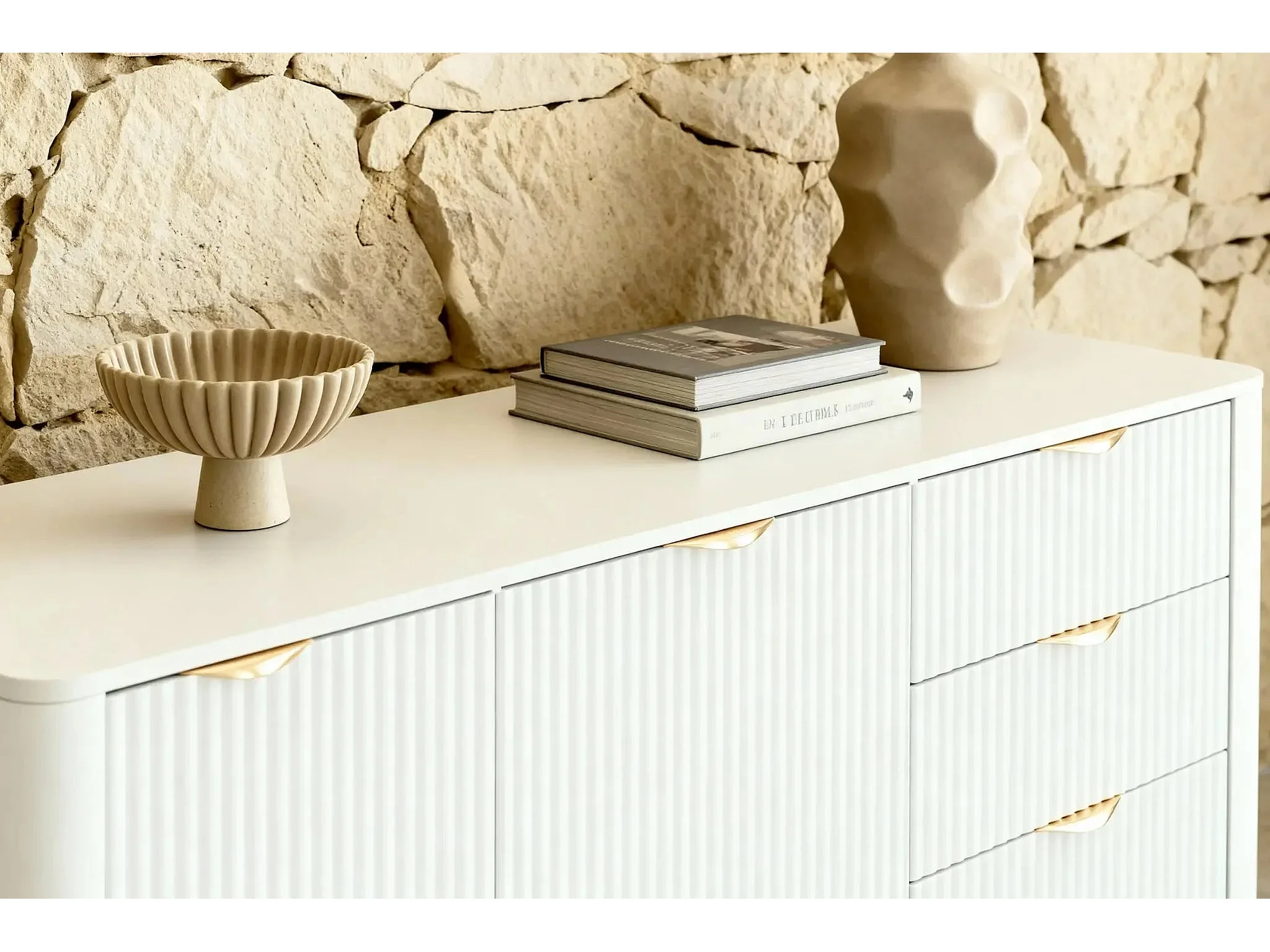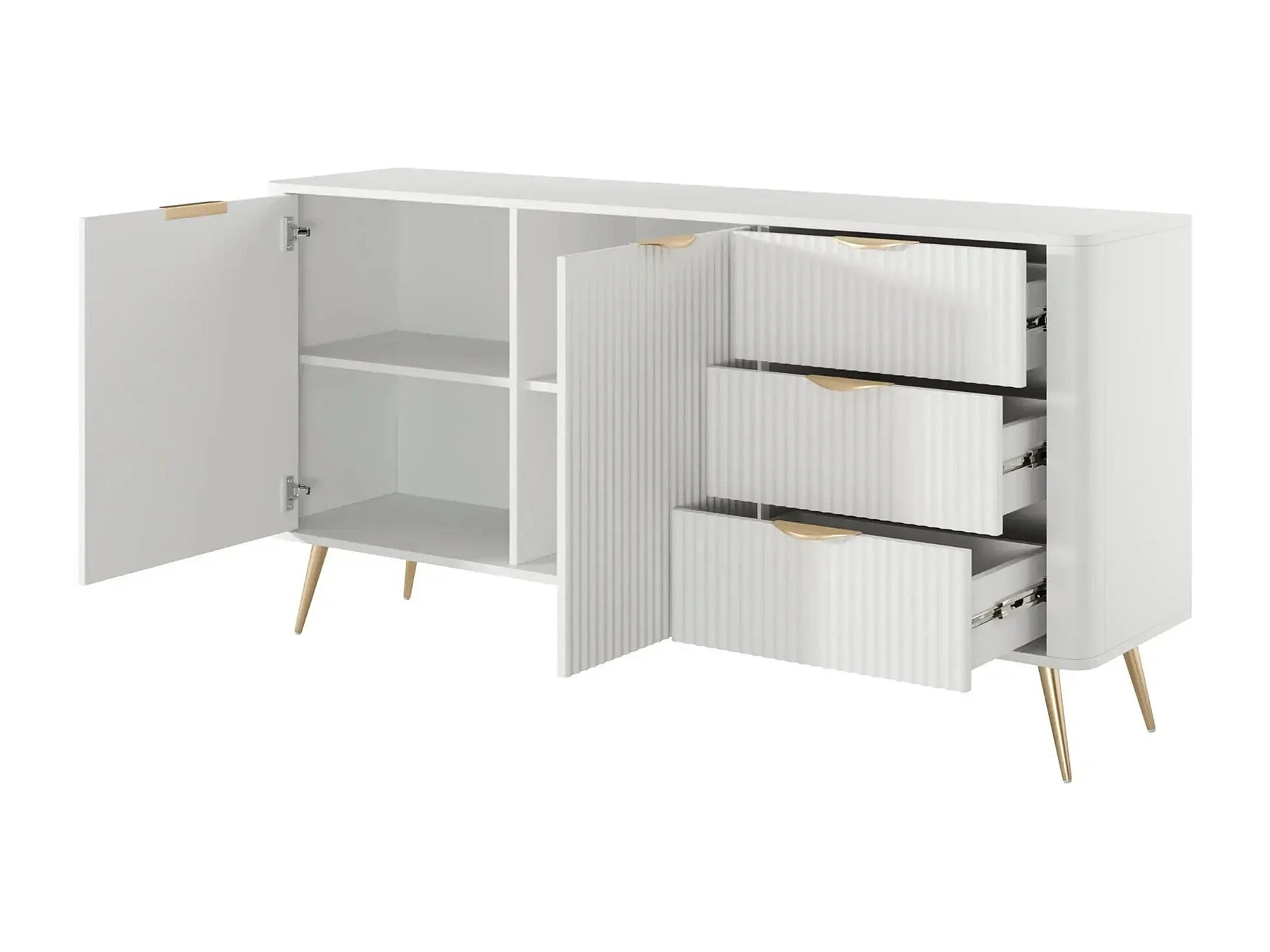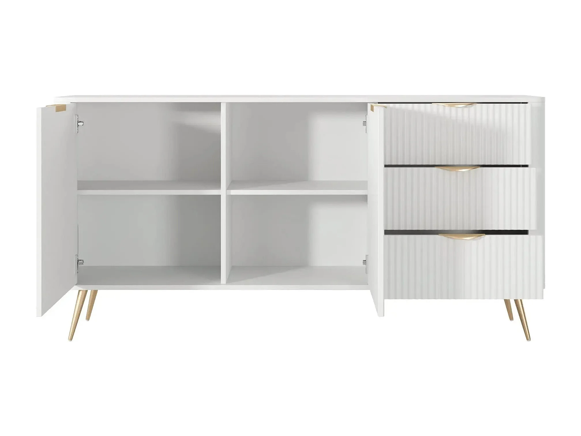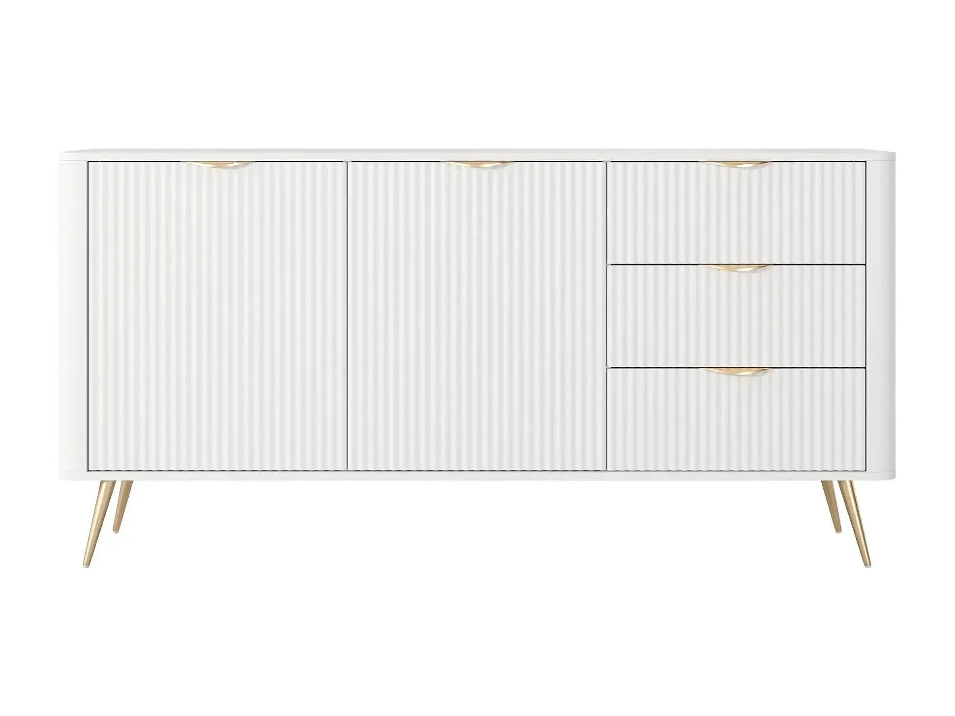 JOUDY - Buffet 2 portes 163cm effet rainuré - Blanc