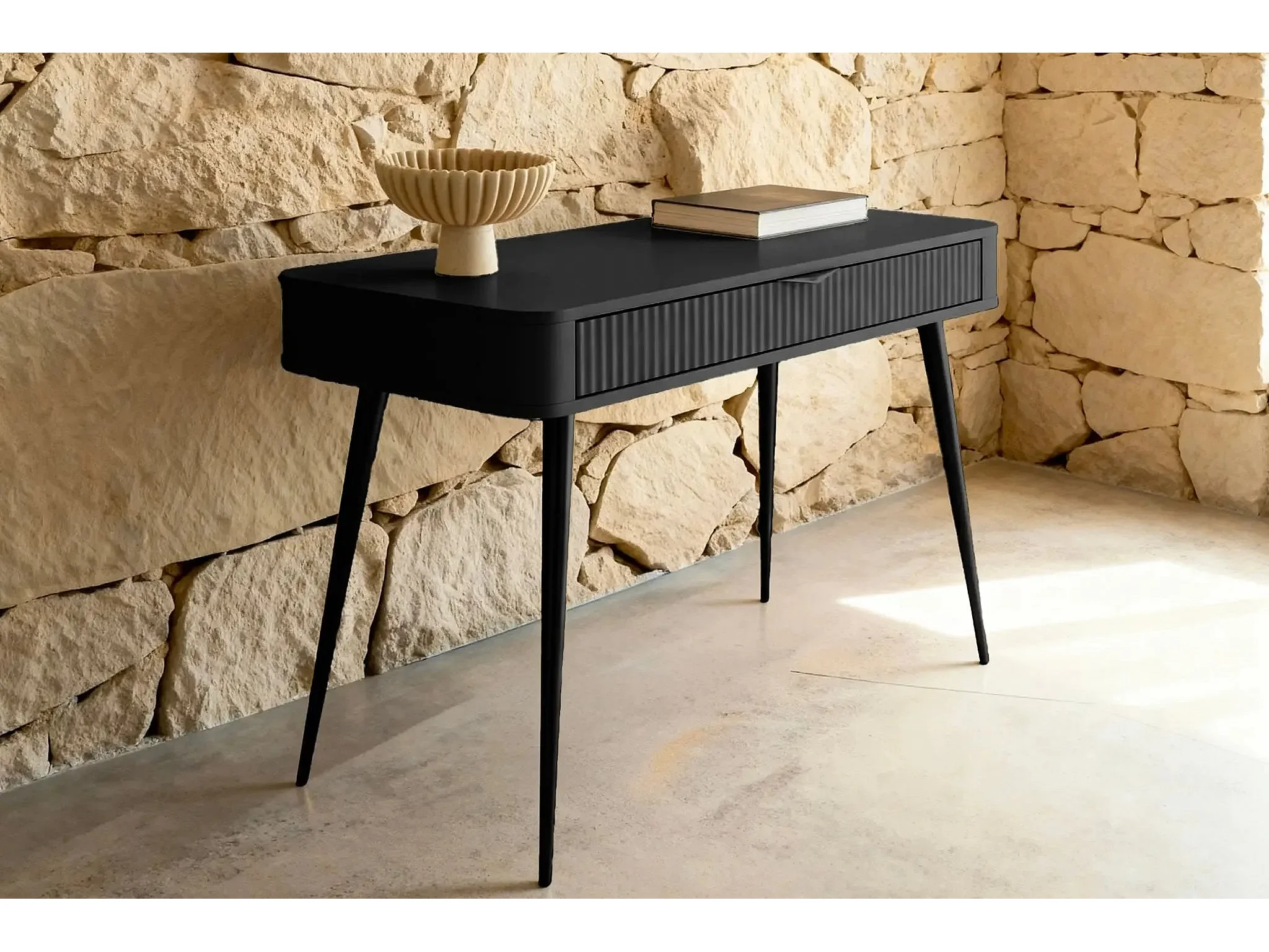 JOUDY - Bureau 100cm effet rainuré - Noir