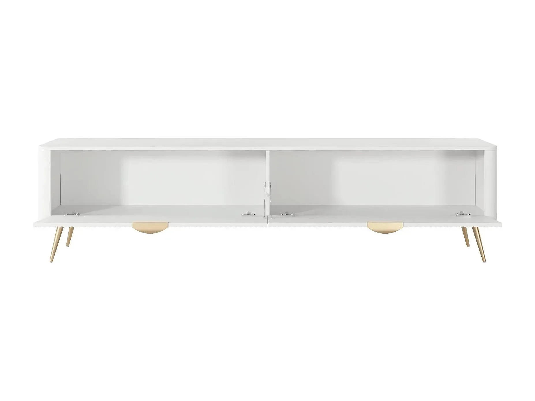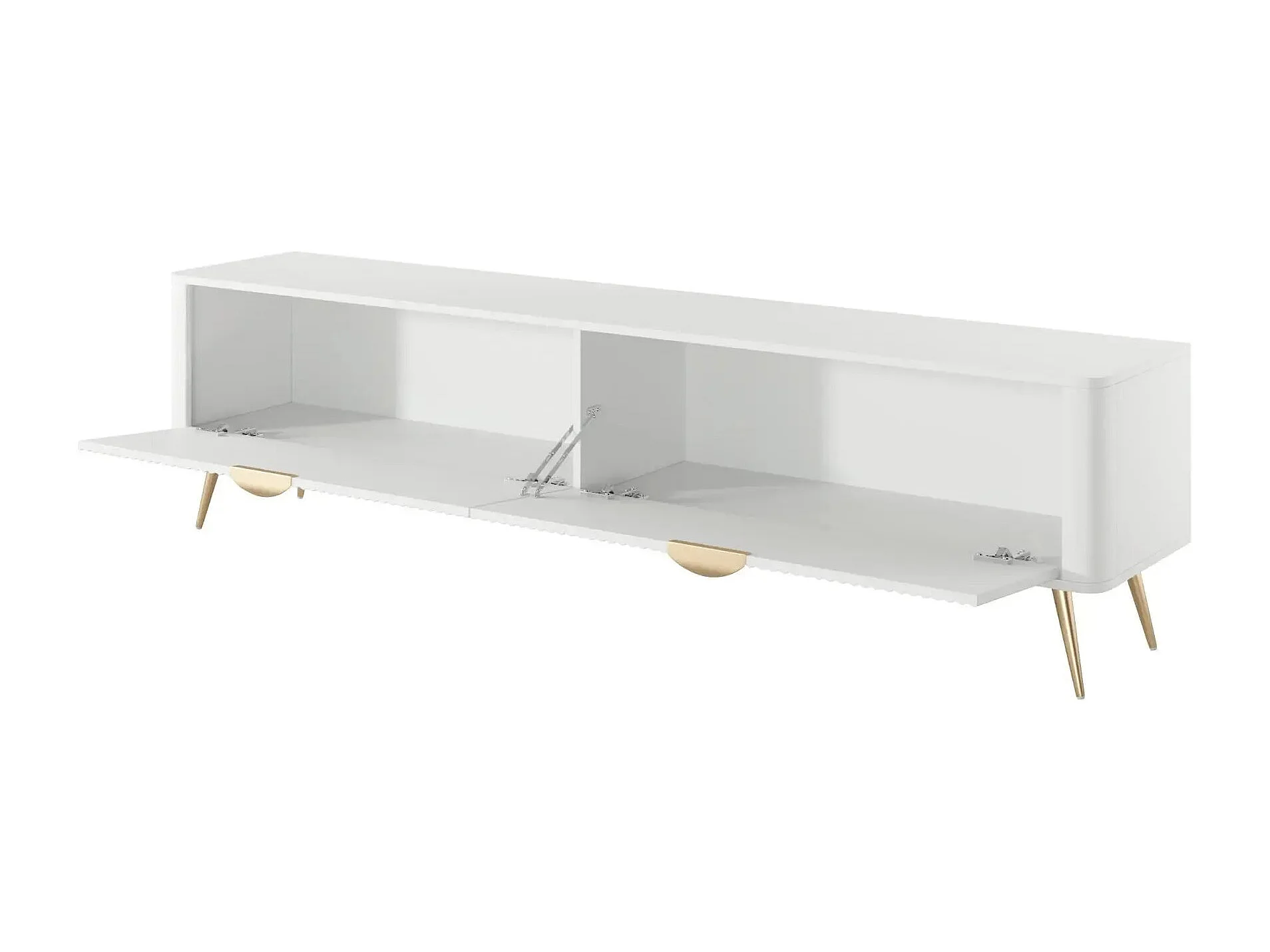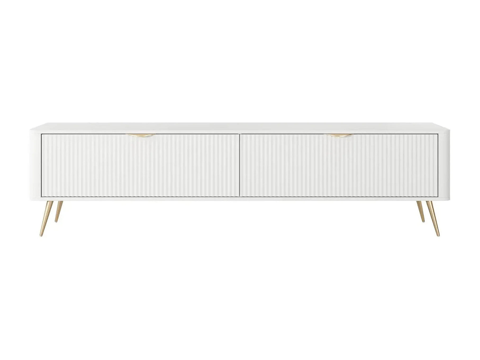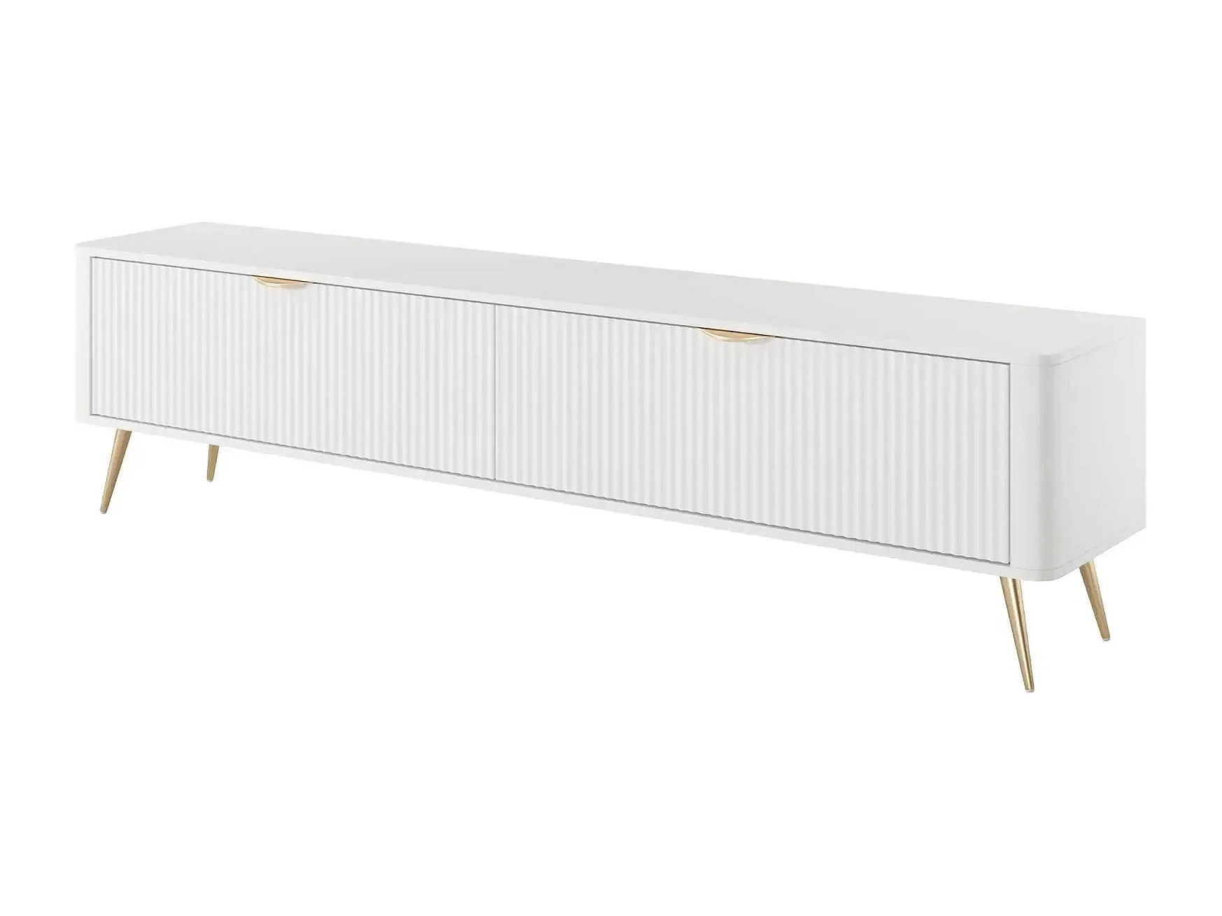 JOUDY - Meuble TV 200cm effet rainuré - Blanc