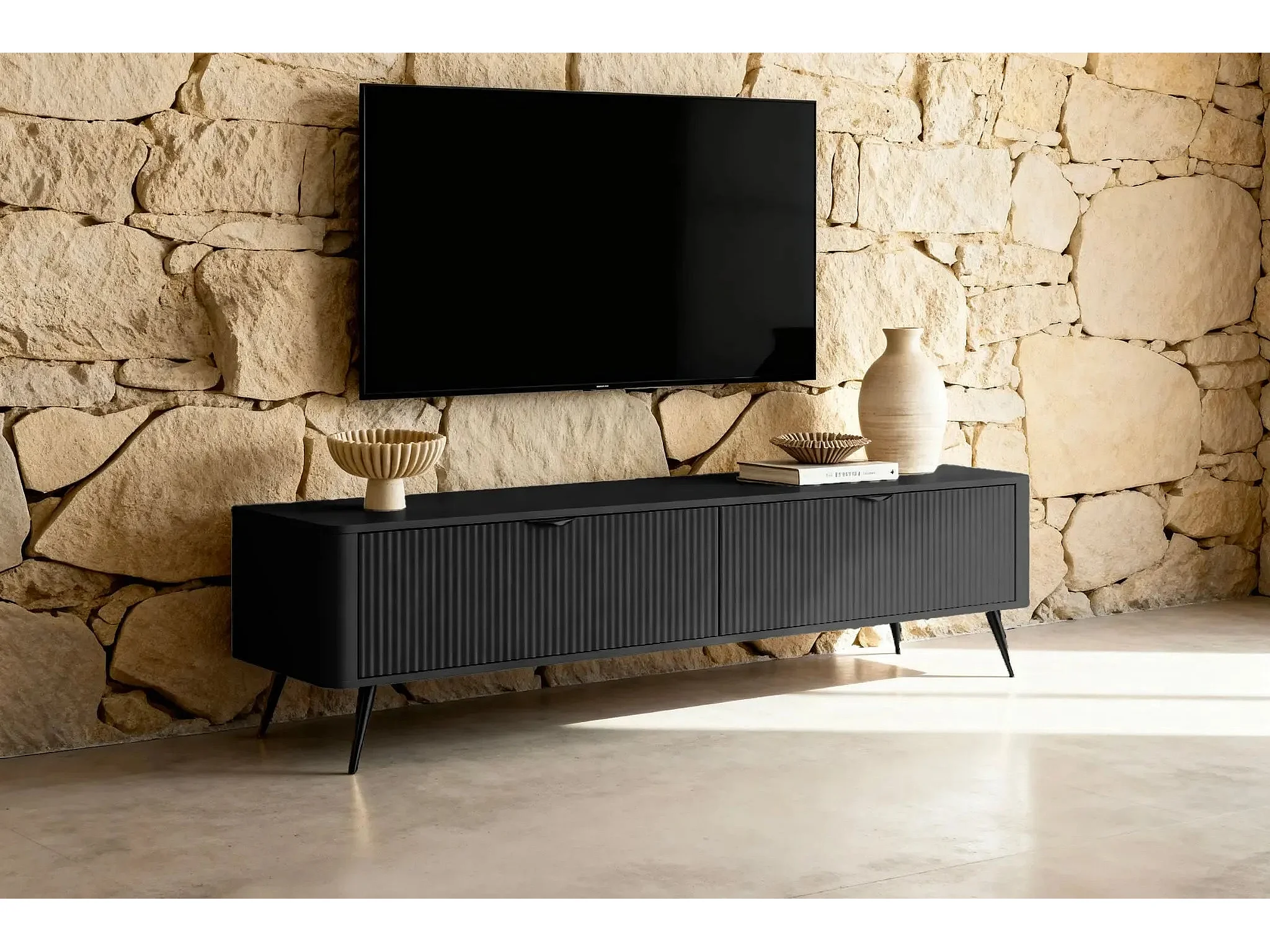 JOUDY - Meuble TV 200cm effet rainuré - Noir