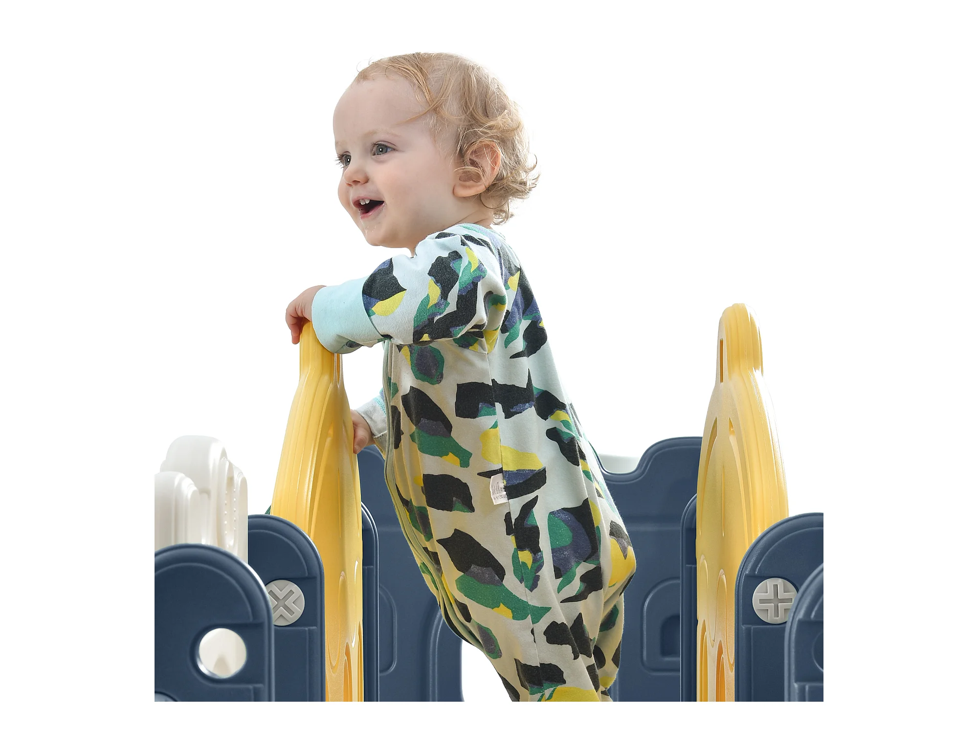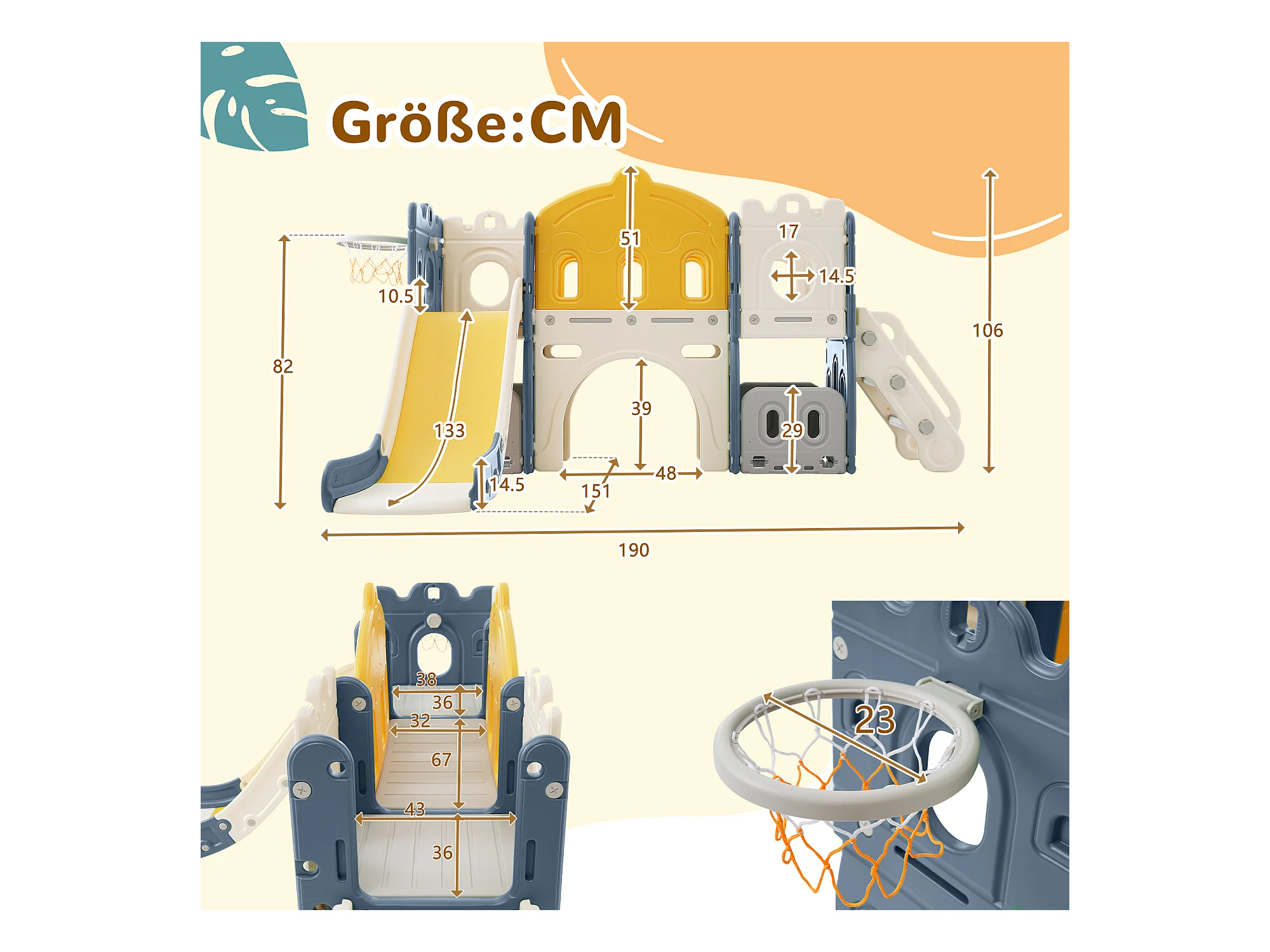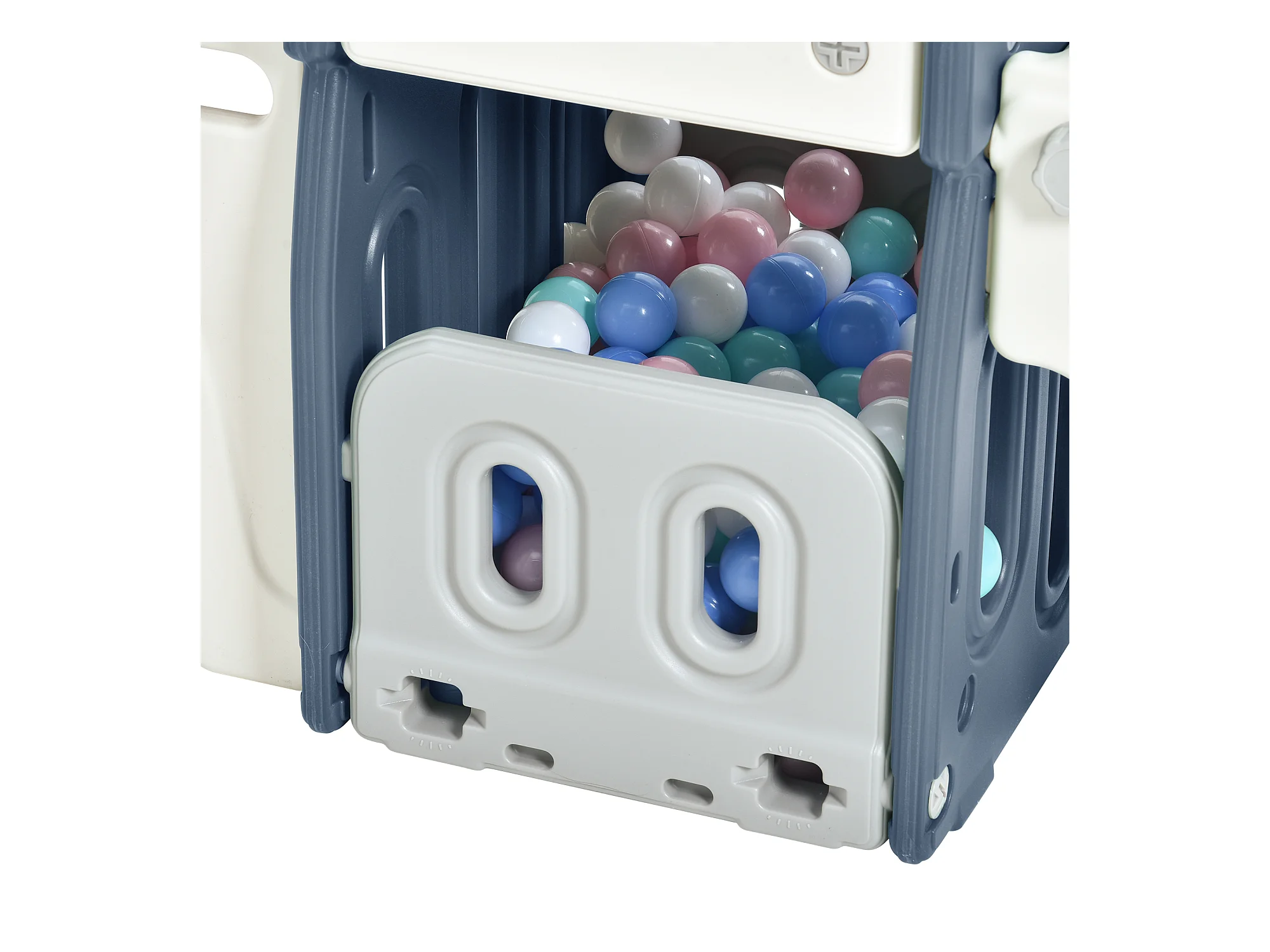 Jouet d'escalade 190x151x106cm 6 en 1 Toboggan pour Enfants Panier Basketball Échelle Tour Château Rangement Sans Balles PEHD Bleu