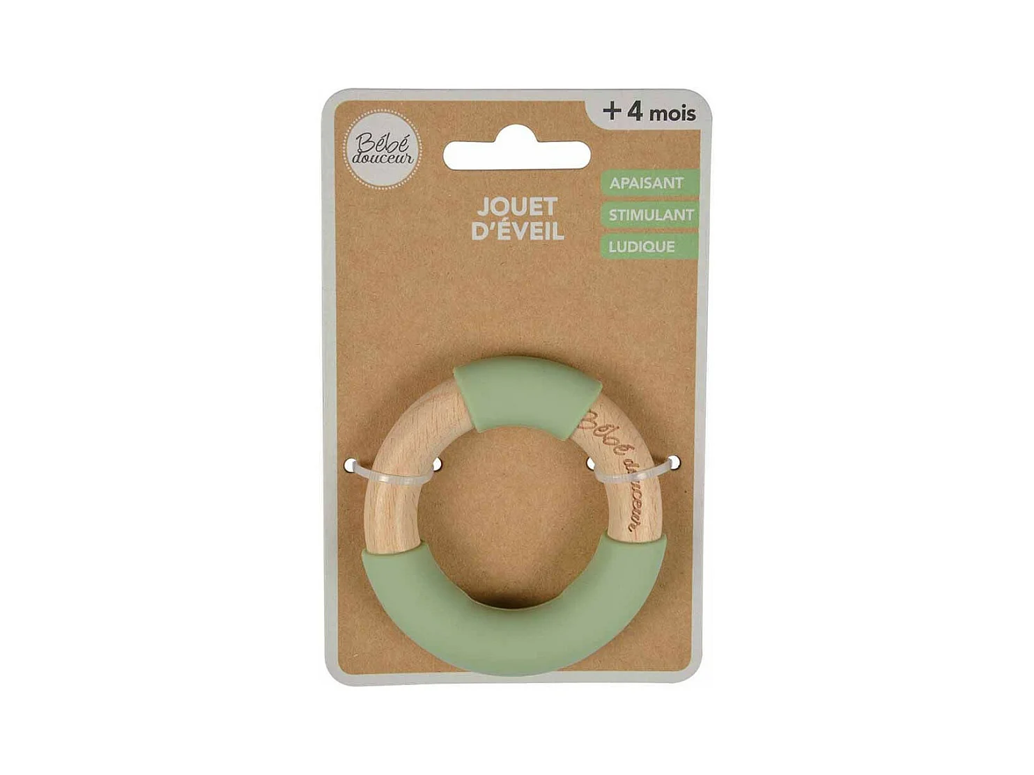 Jouet d'Éveil Bébé "Anneau Bois" 7cm Naturel & Vert