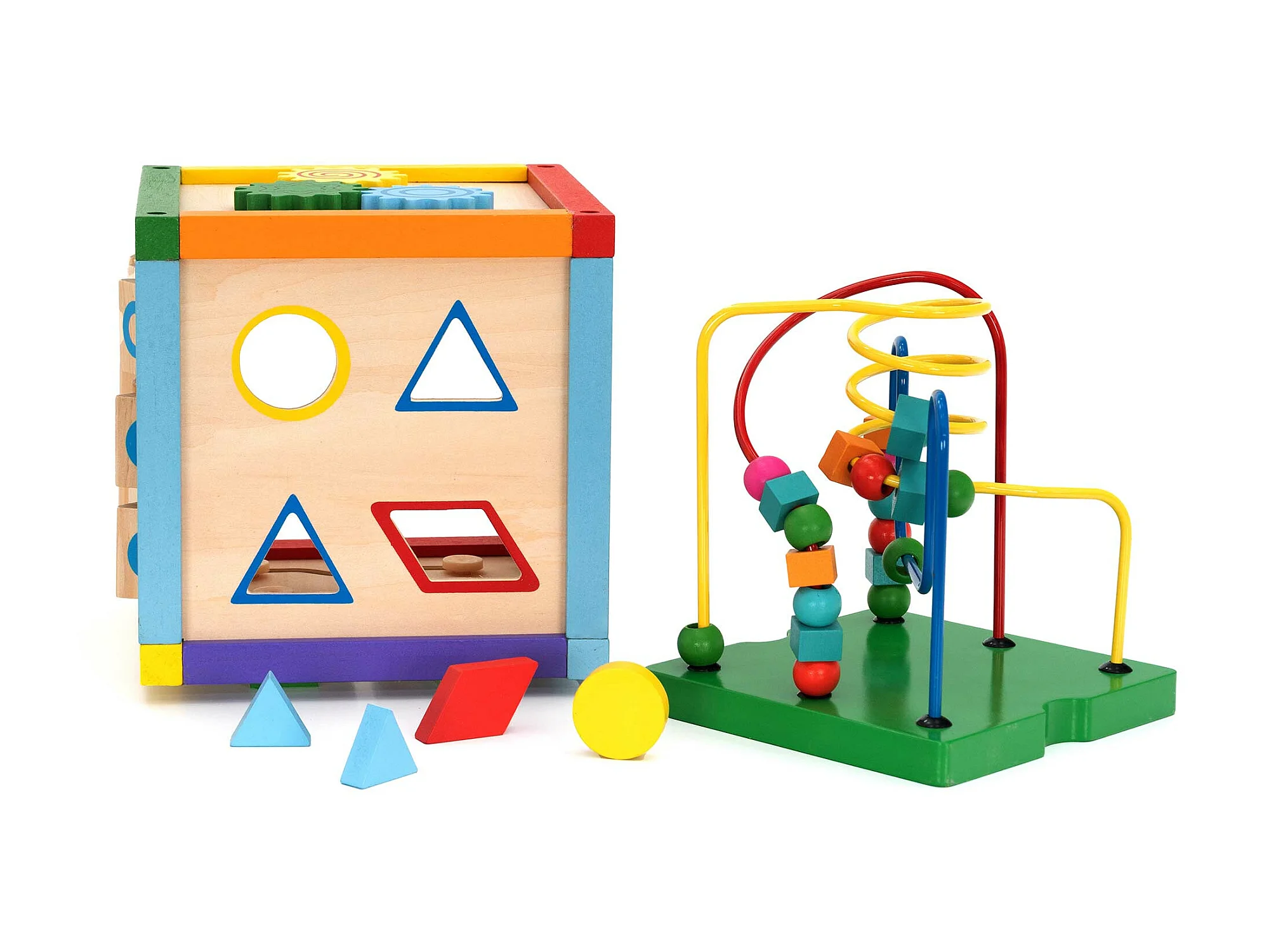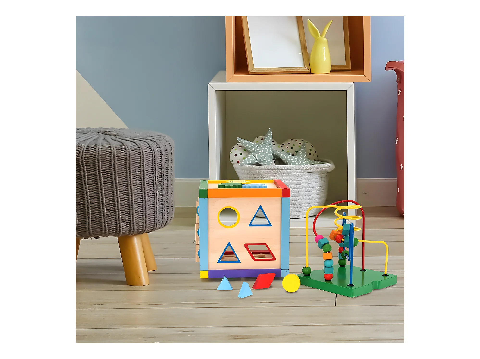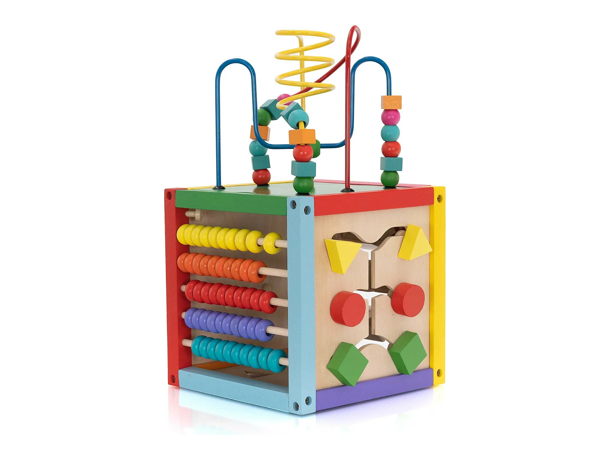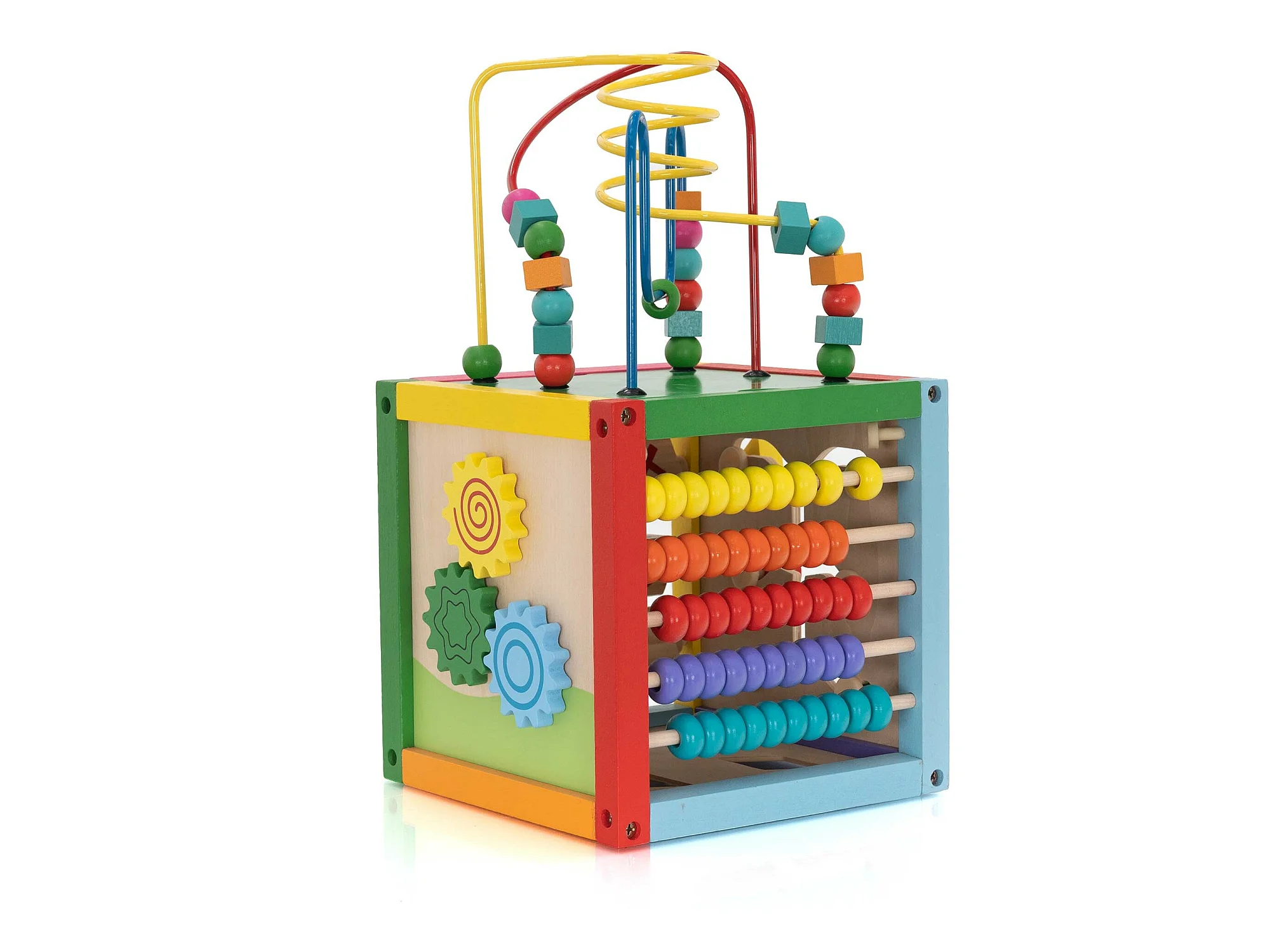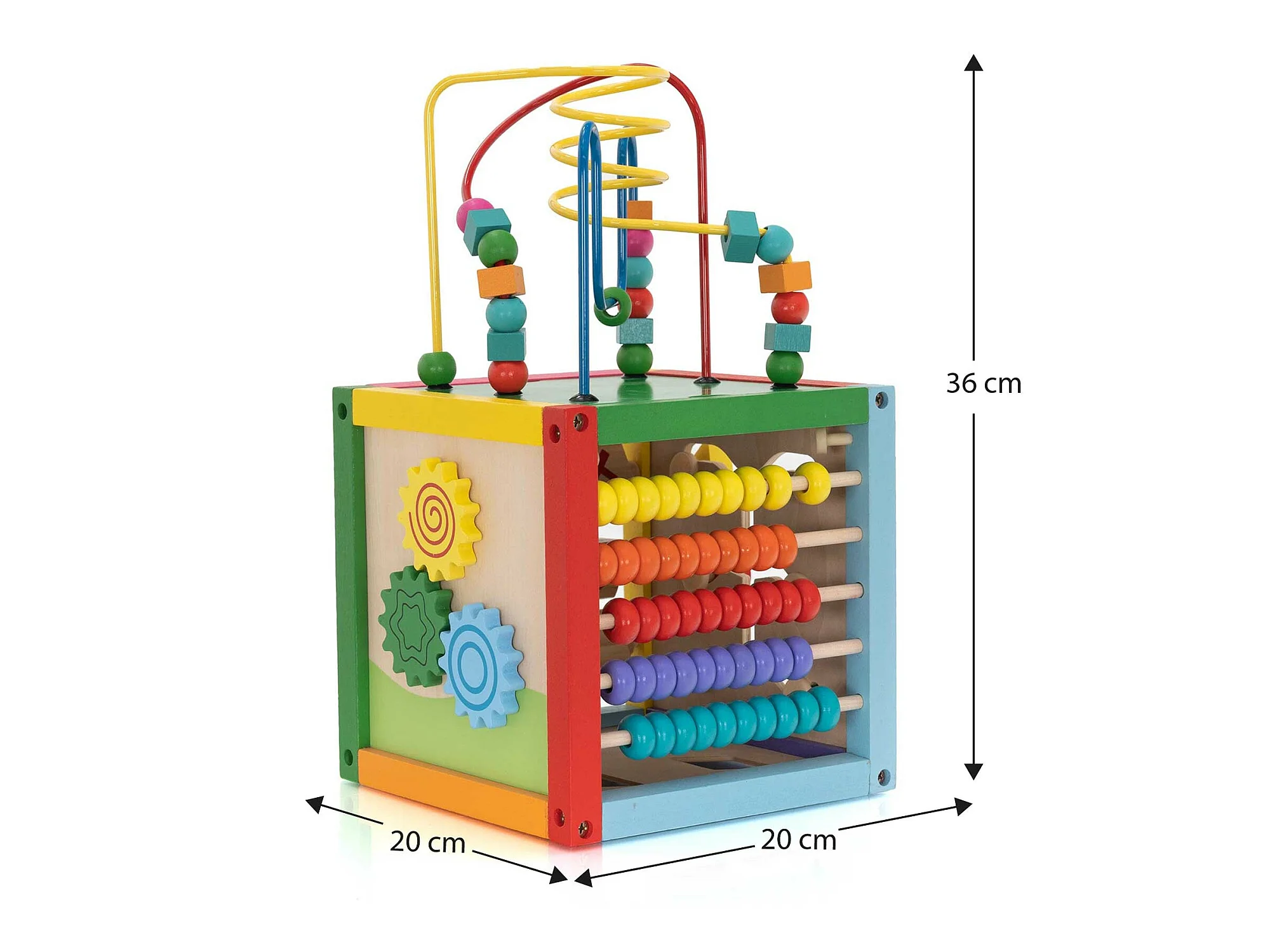 Jouet Éducatif Montessori Cube en Bois 6 Faces Robincool Newton Laberinto 20x20x36 cm avec Boulier Multicolore