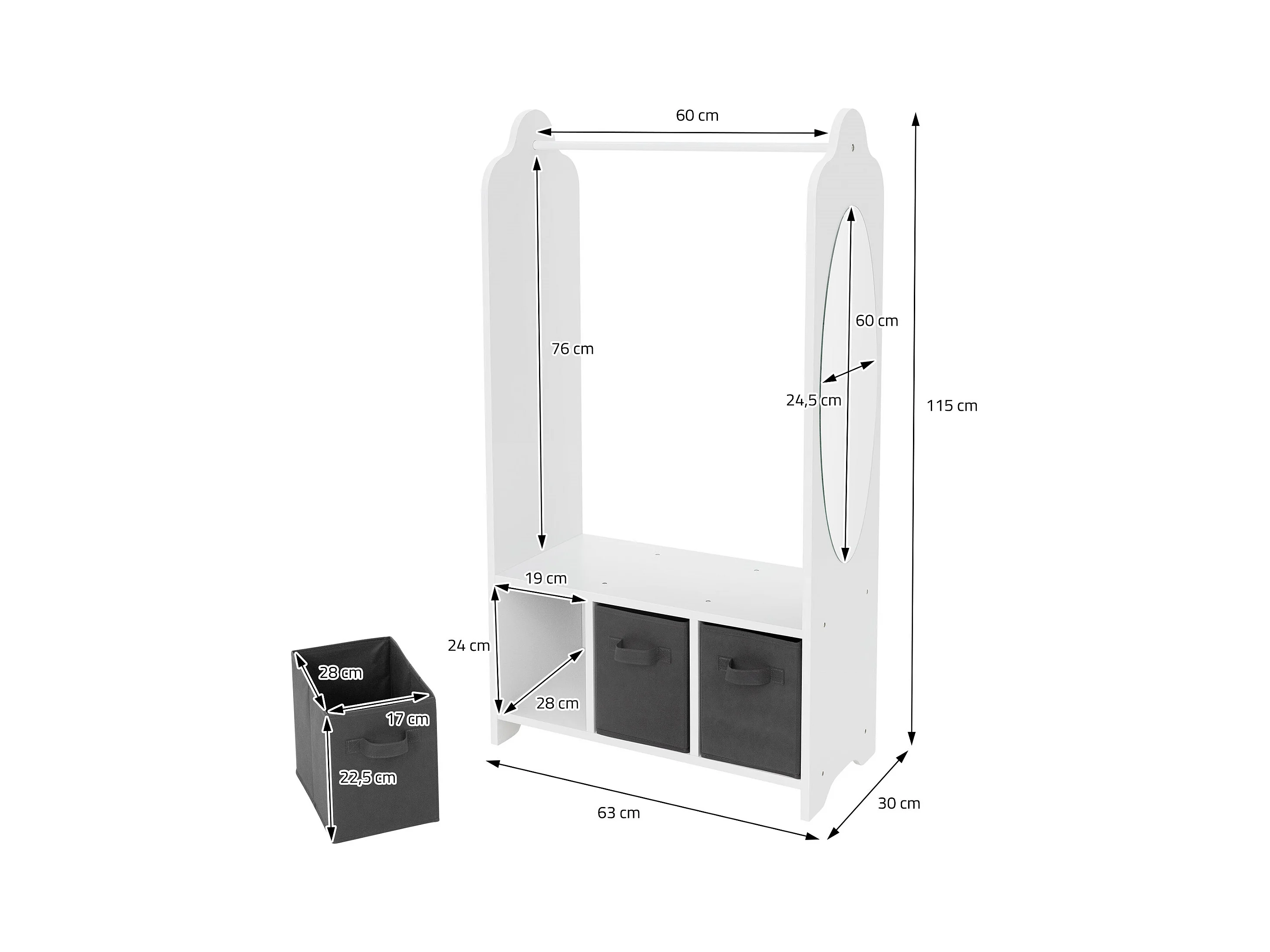 Joyz Portemanteau pour enfants avec étagère tringle 3 compartiments et miroir