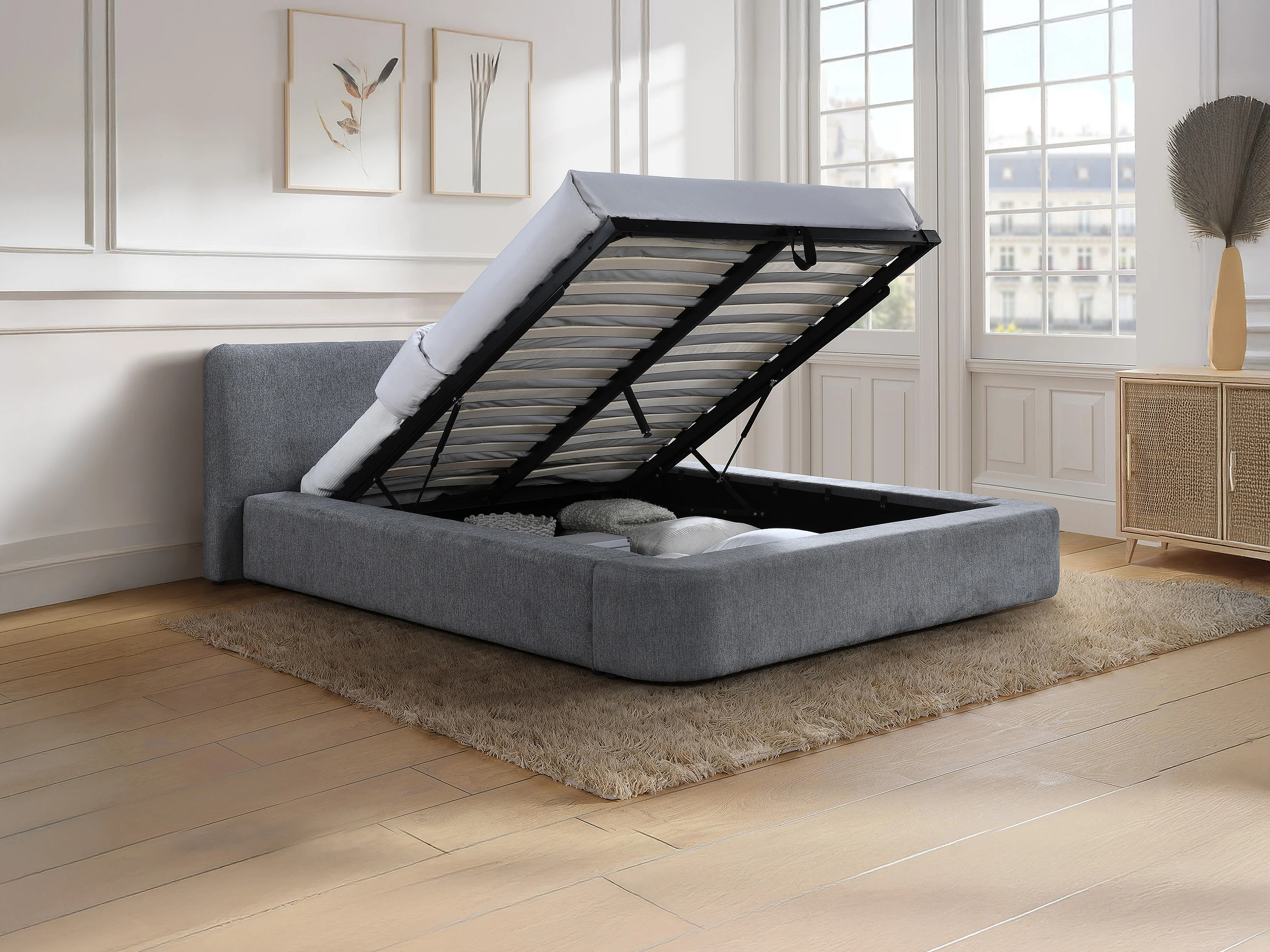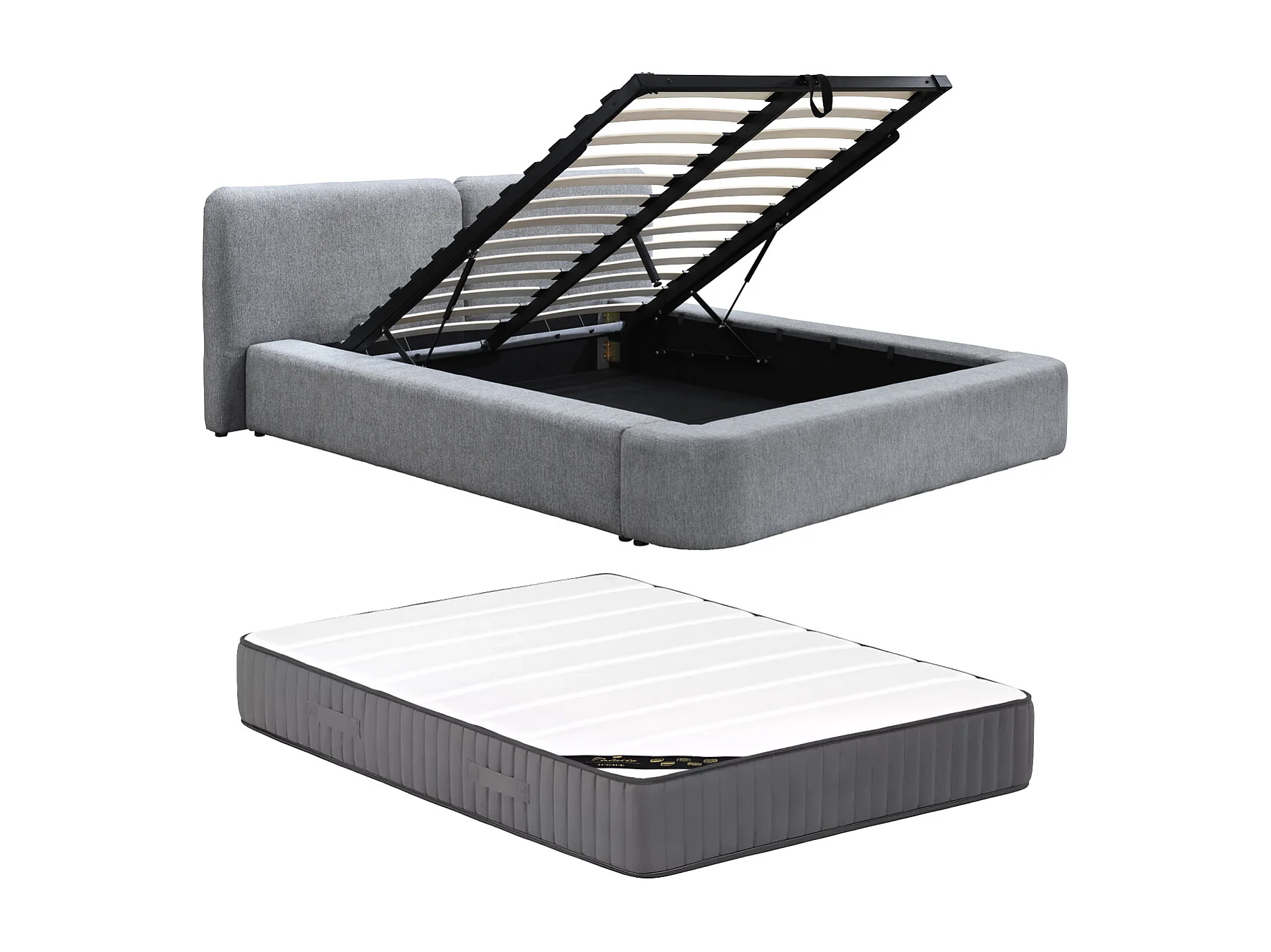 Lit coffre 140 x 190 cm - Tissu - Gris + Matelas - JUDALO de Maison Céphy