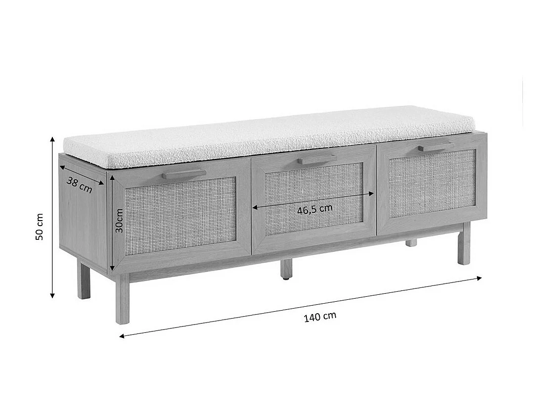 June - Banc d'entrée avec rangement à chaussures en bois et cannage L140cm - Bois clair