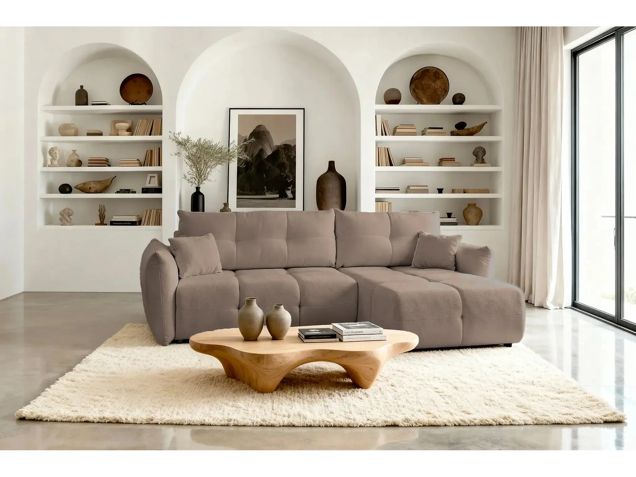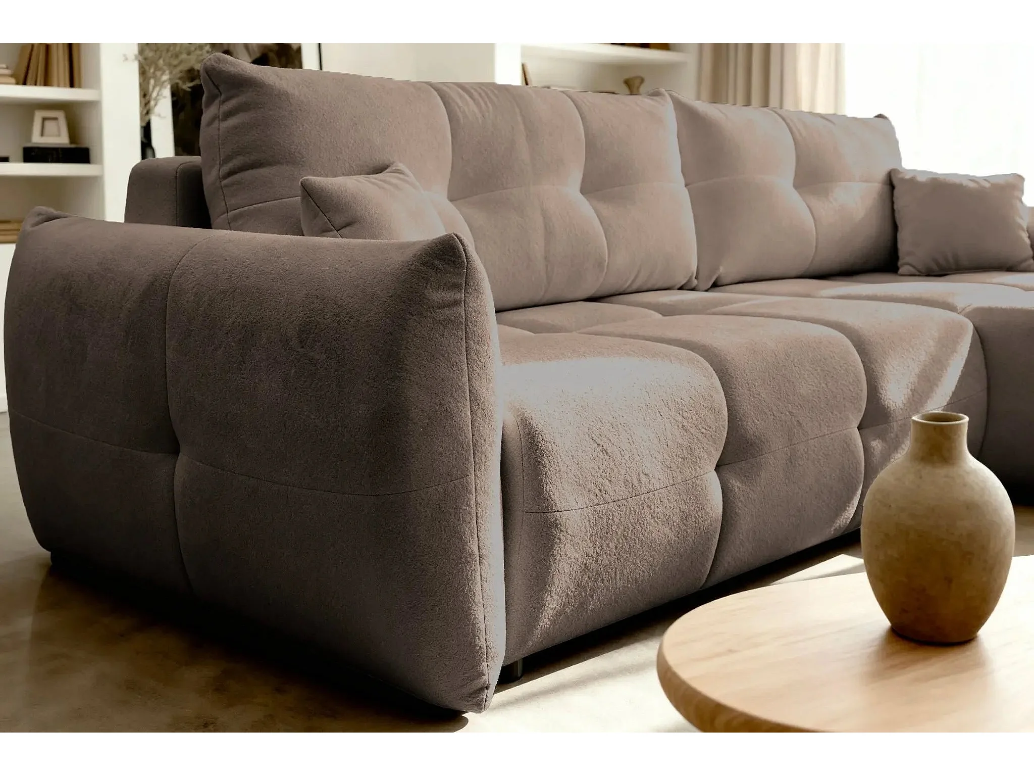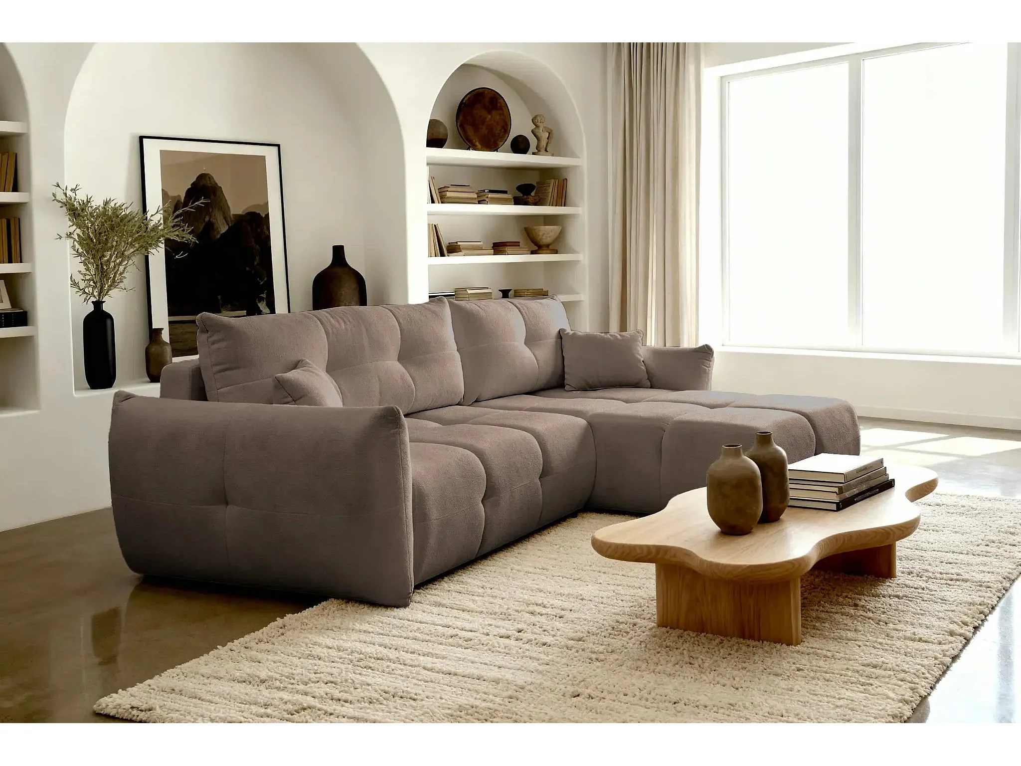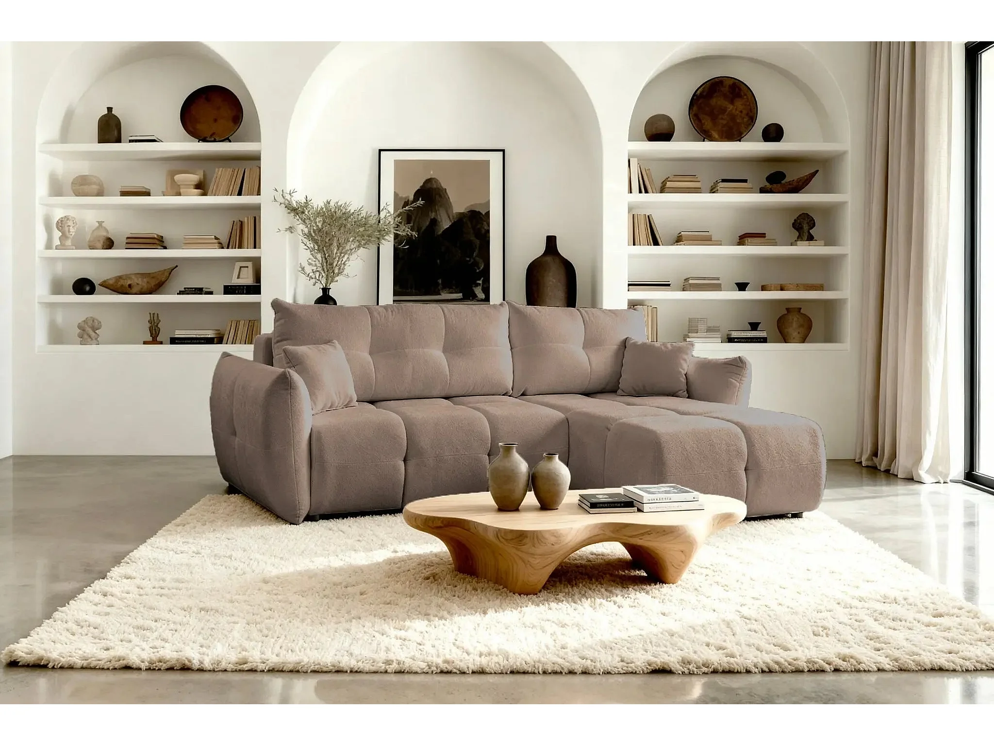 JUNE - Canapé d'angle convertible tissu bouclette 3 places - Café
