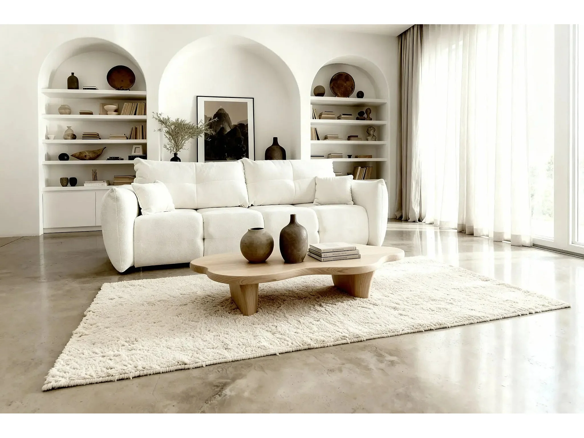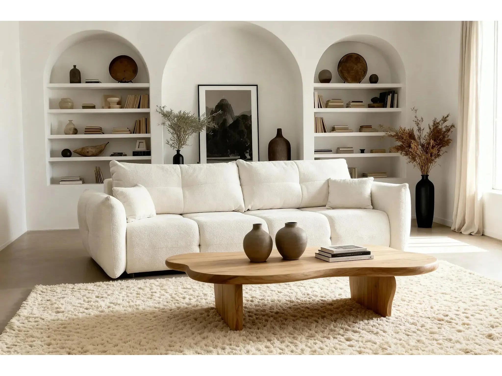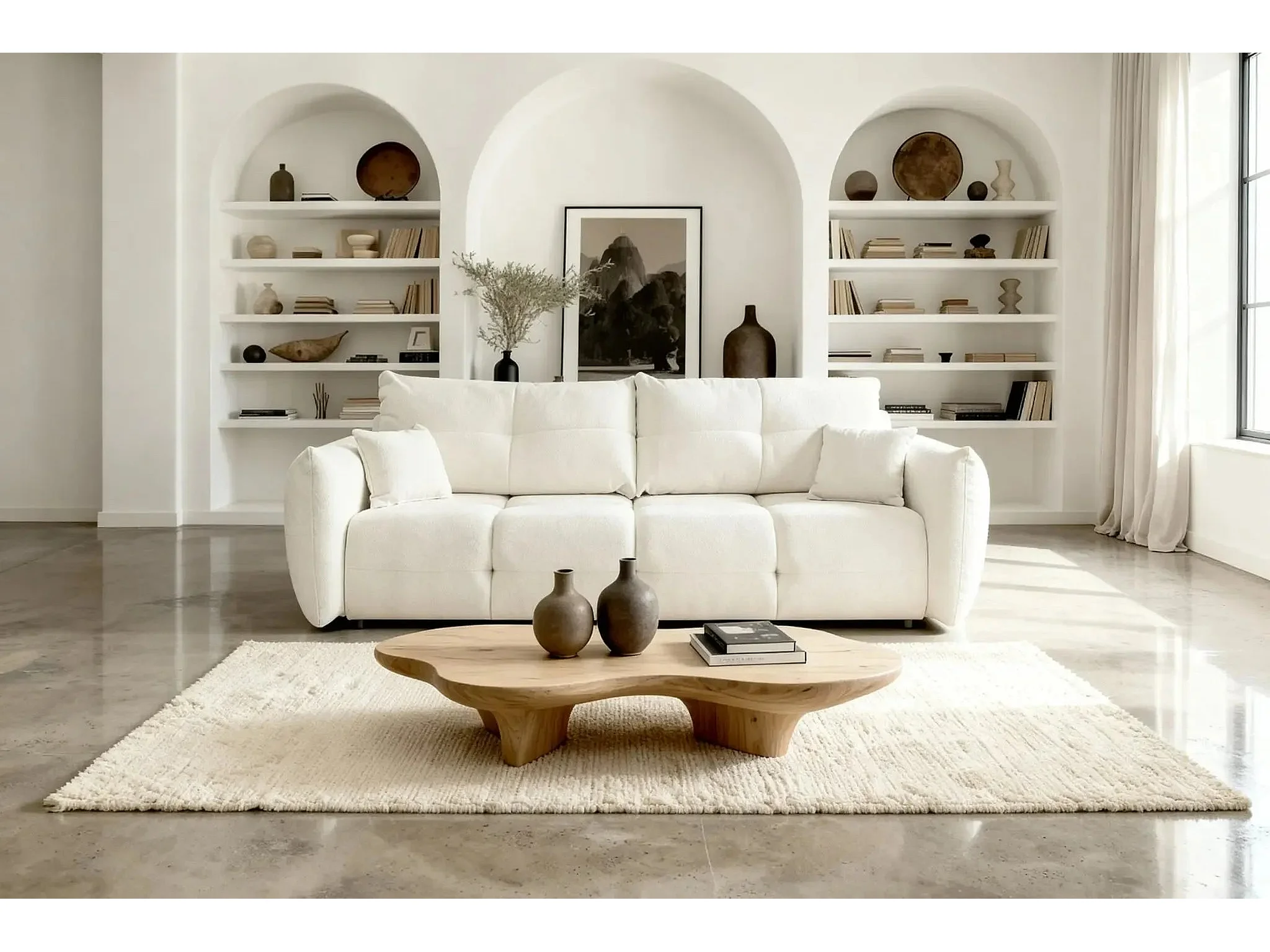 JUNE - Canapé droit convertible tissu bouclette 2 places - Beige