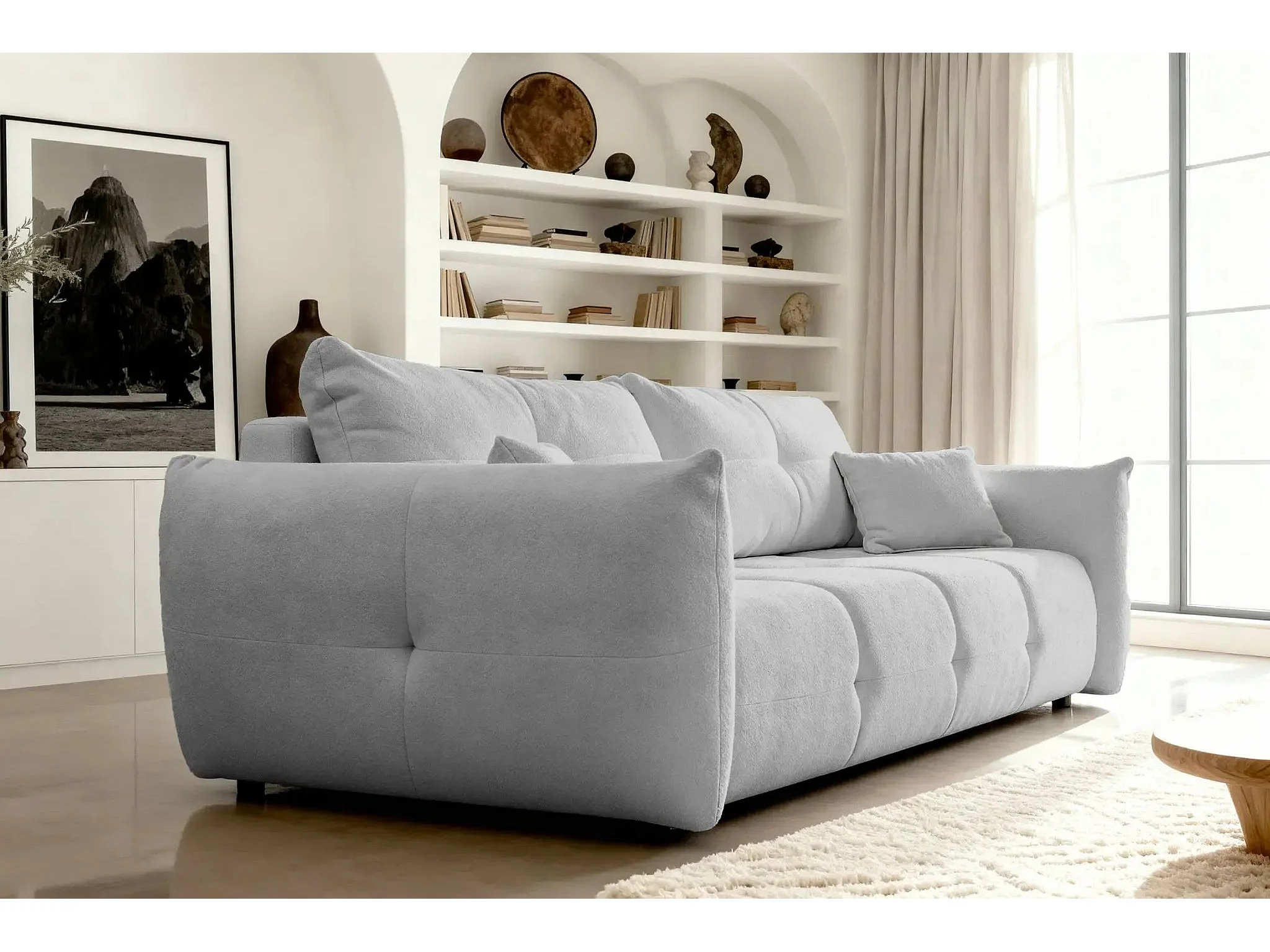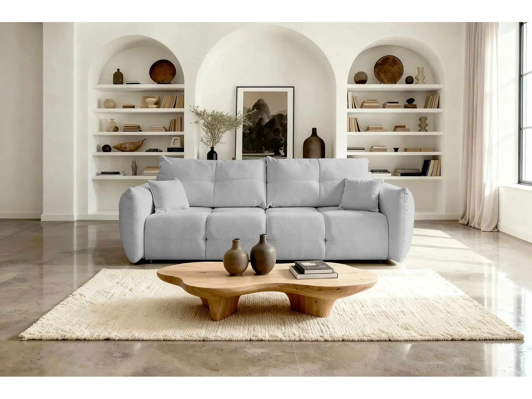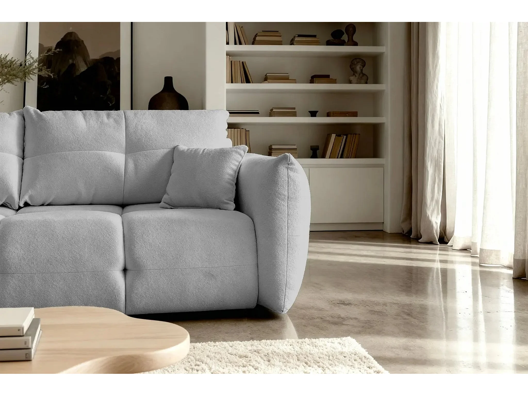 JUNE - Canapé droit convertible tissu bouclette 2 places - Gris clair