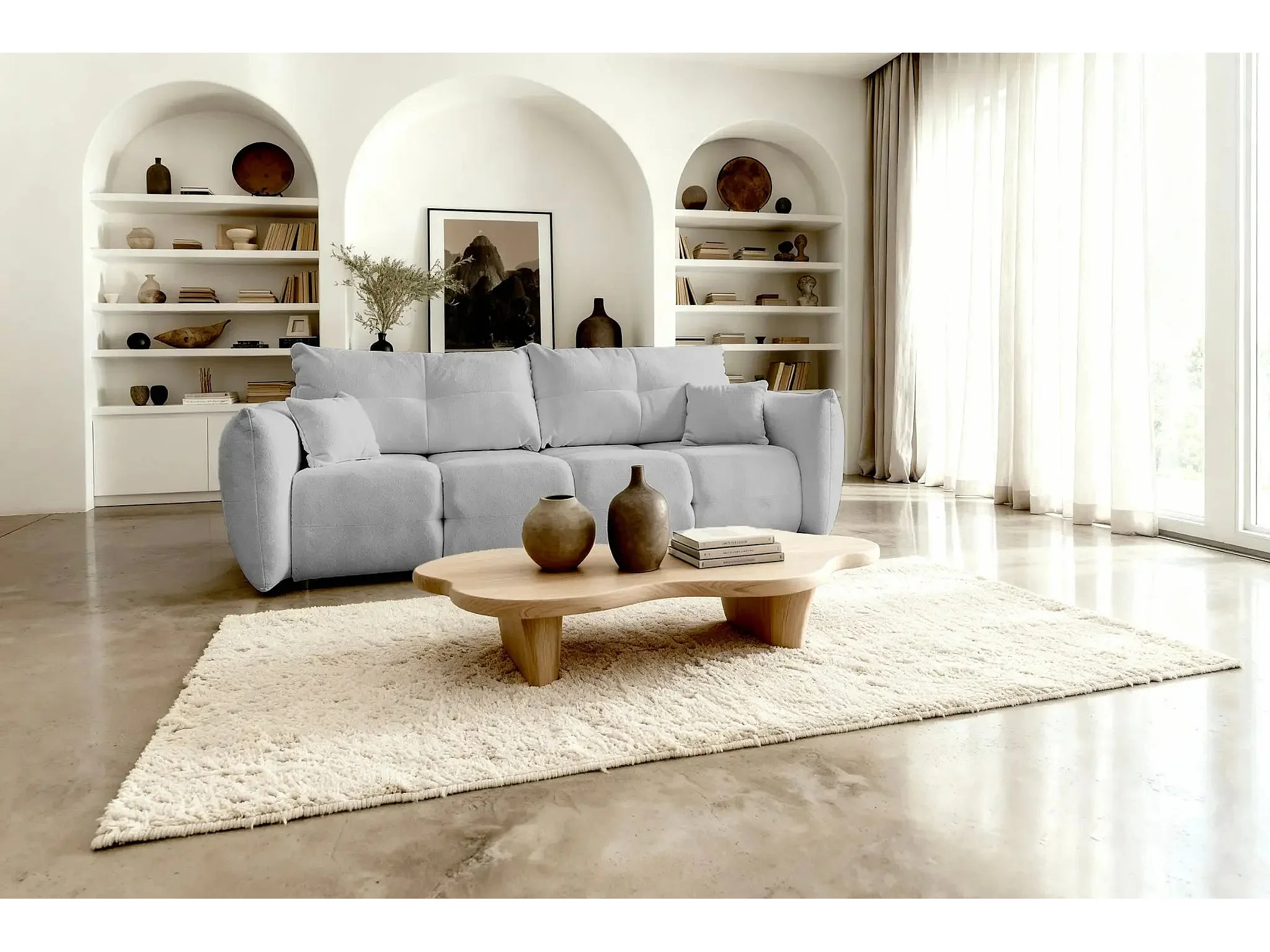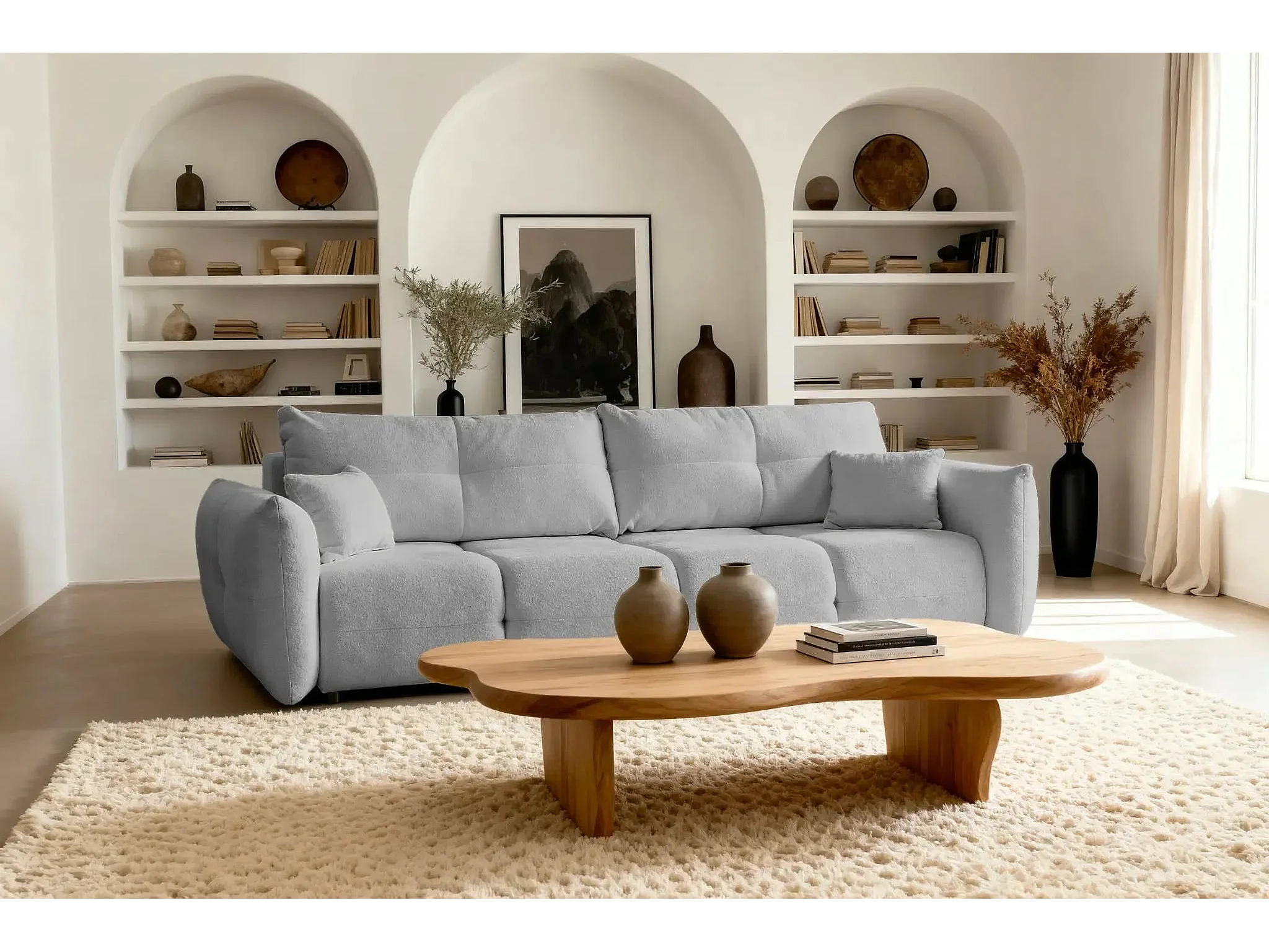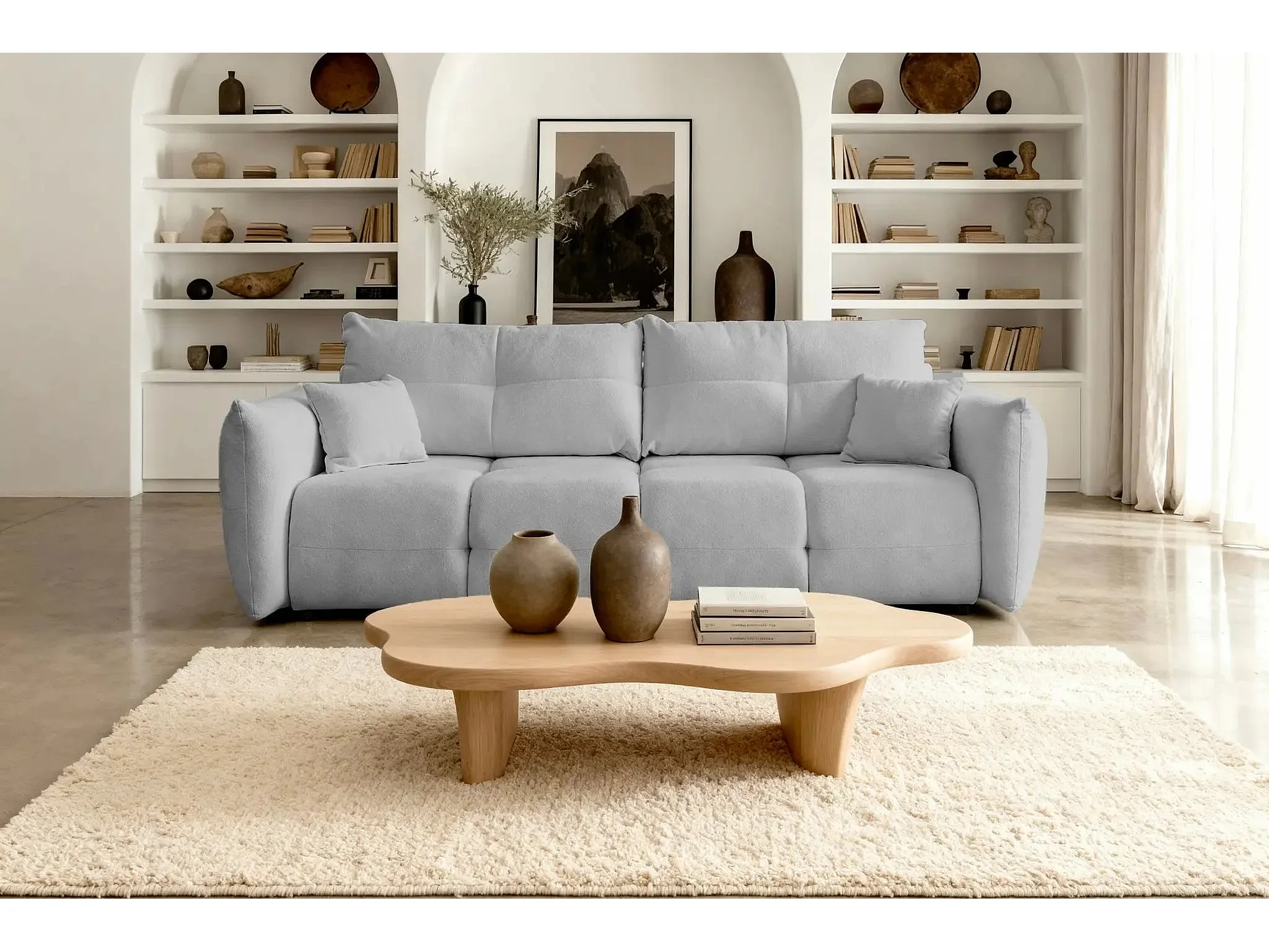 JUNE - Canapé droit convertible tissu bouclette 2 places - Gris clair