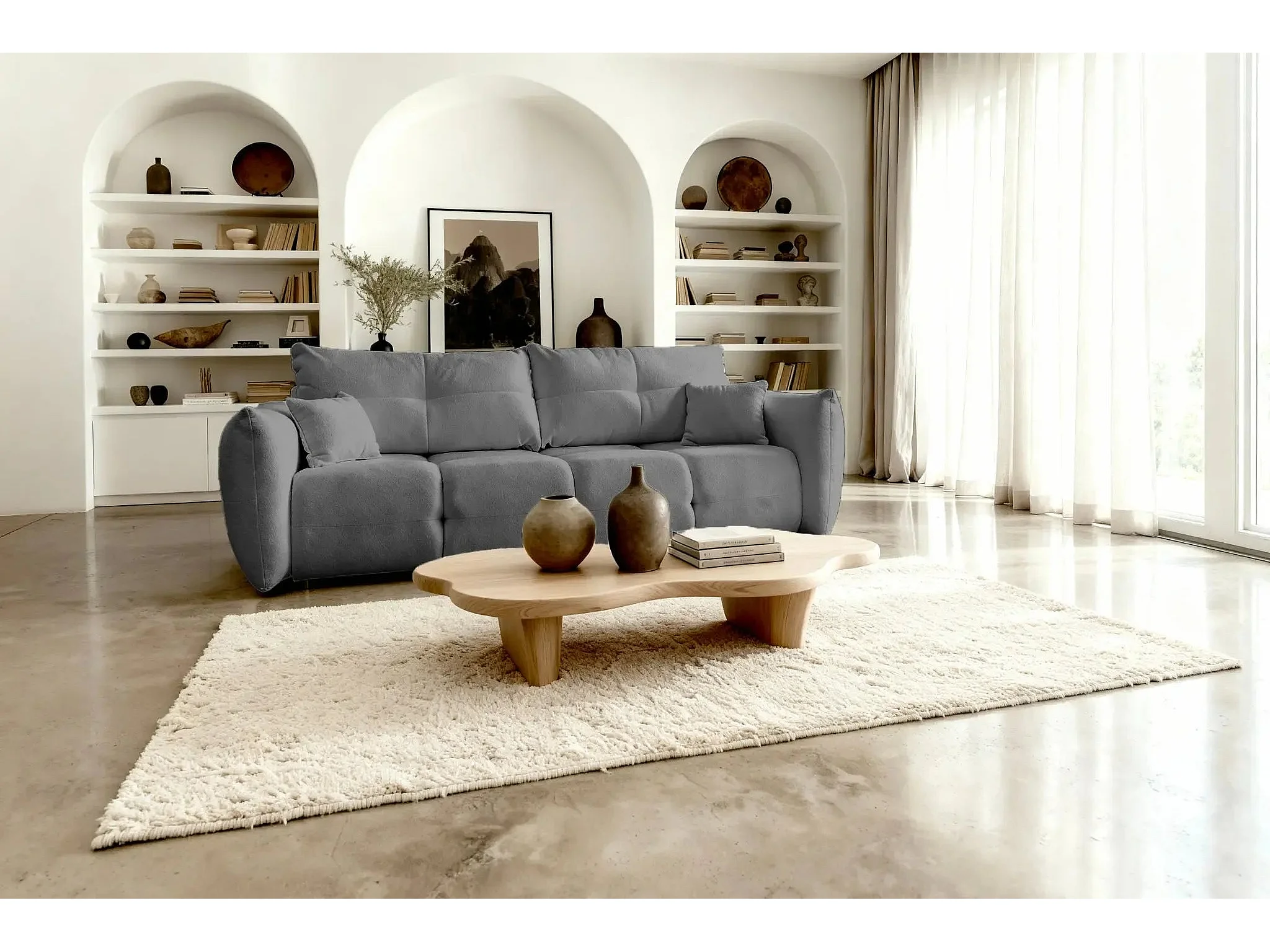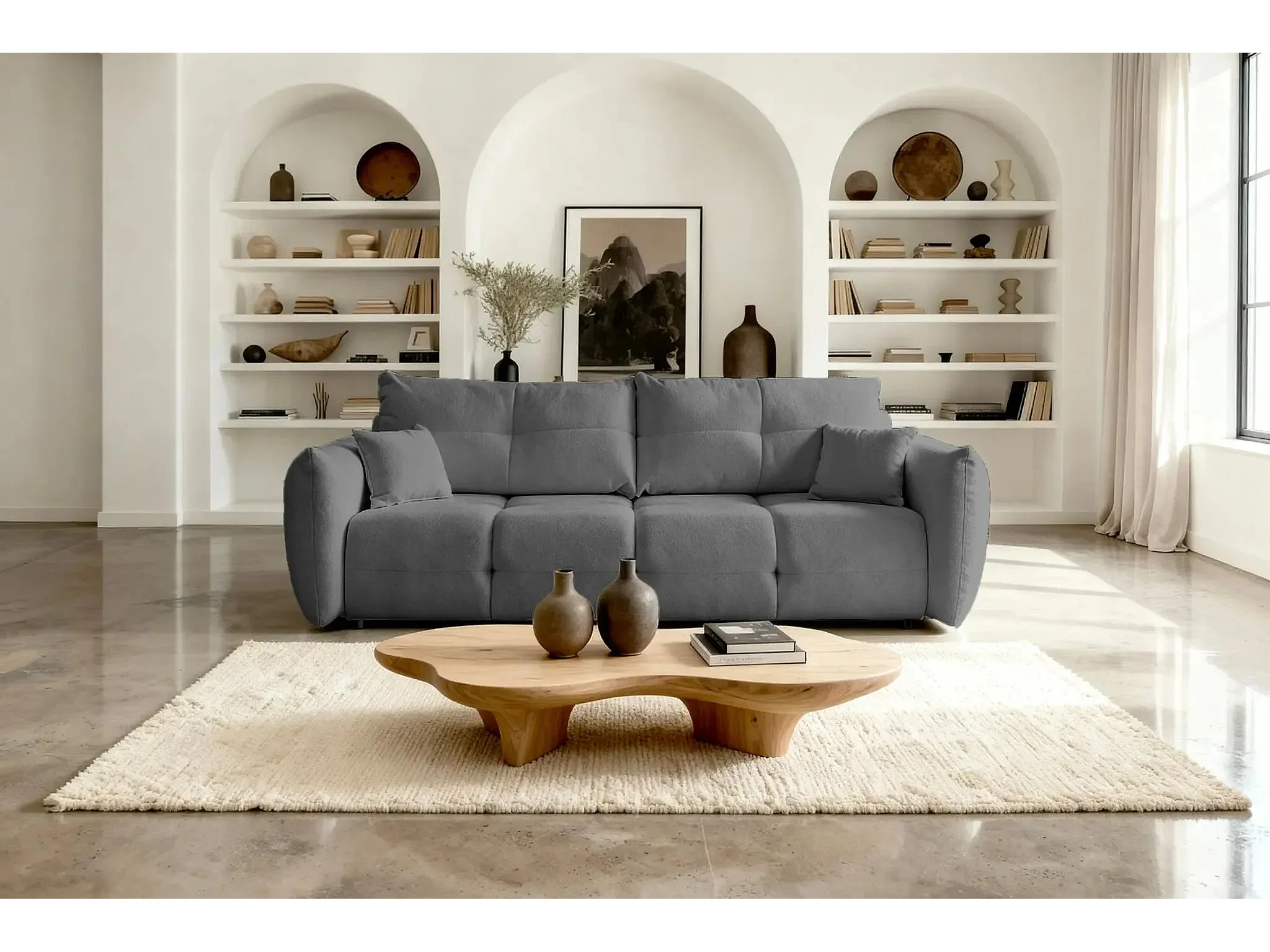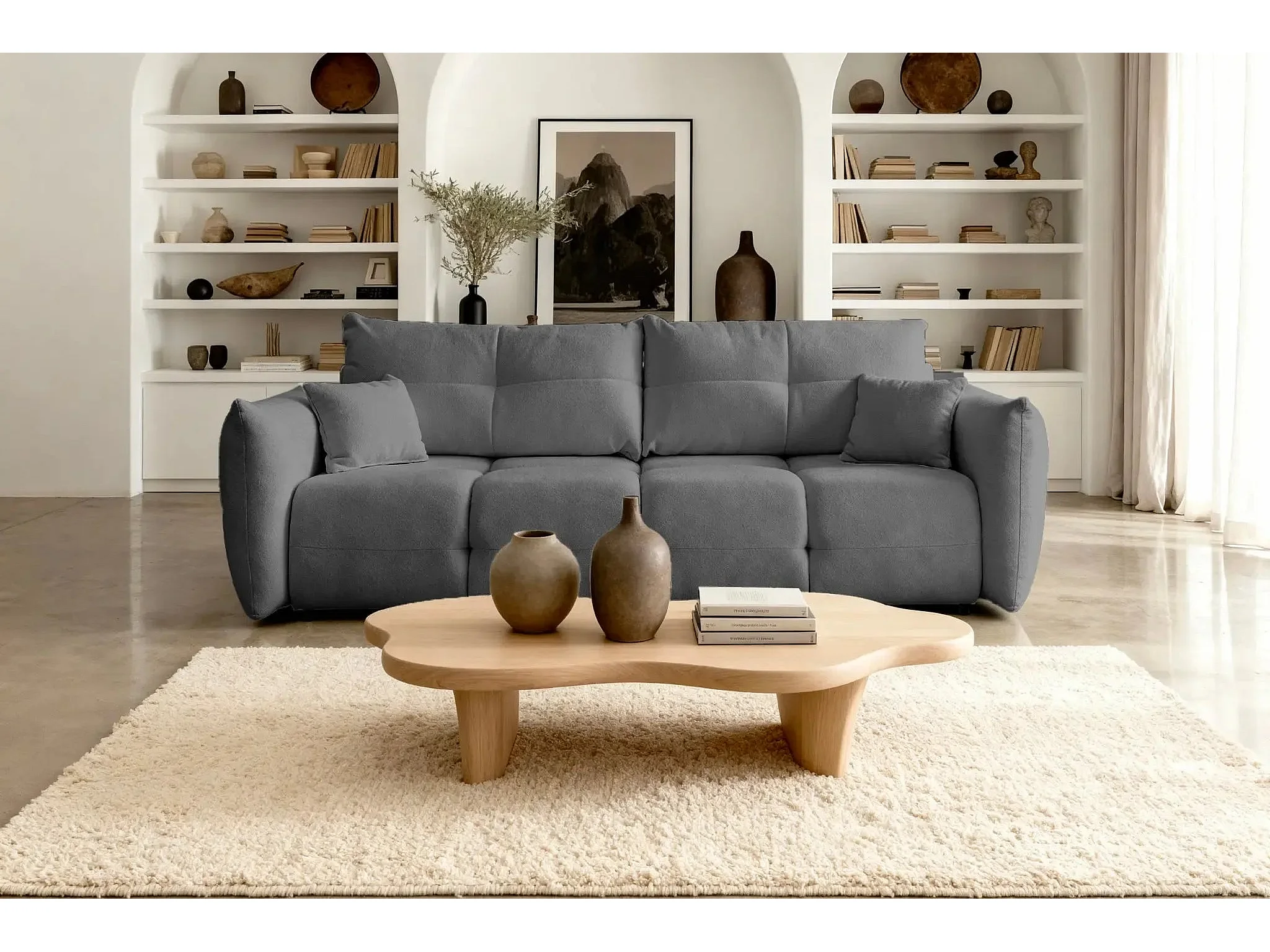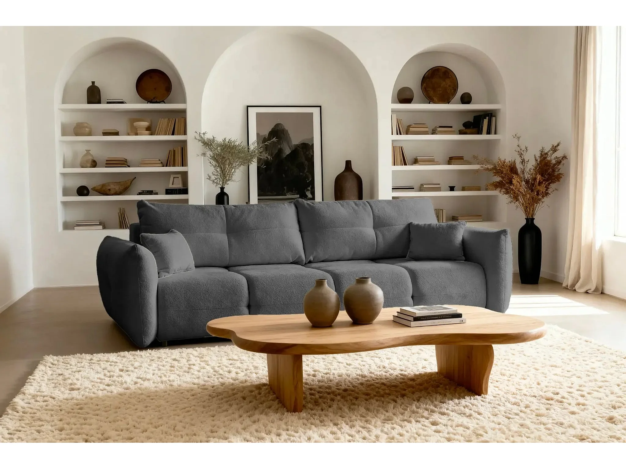 JUNE - Canapé droit convertible tissu bouclette 2 places - Gris foncé