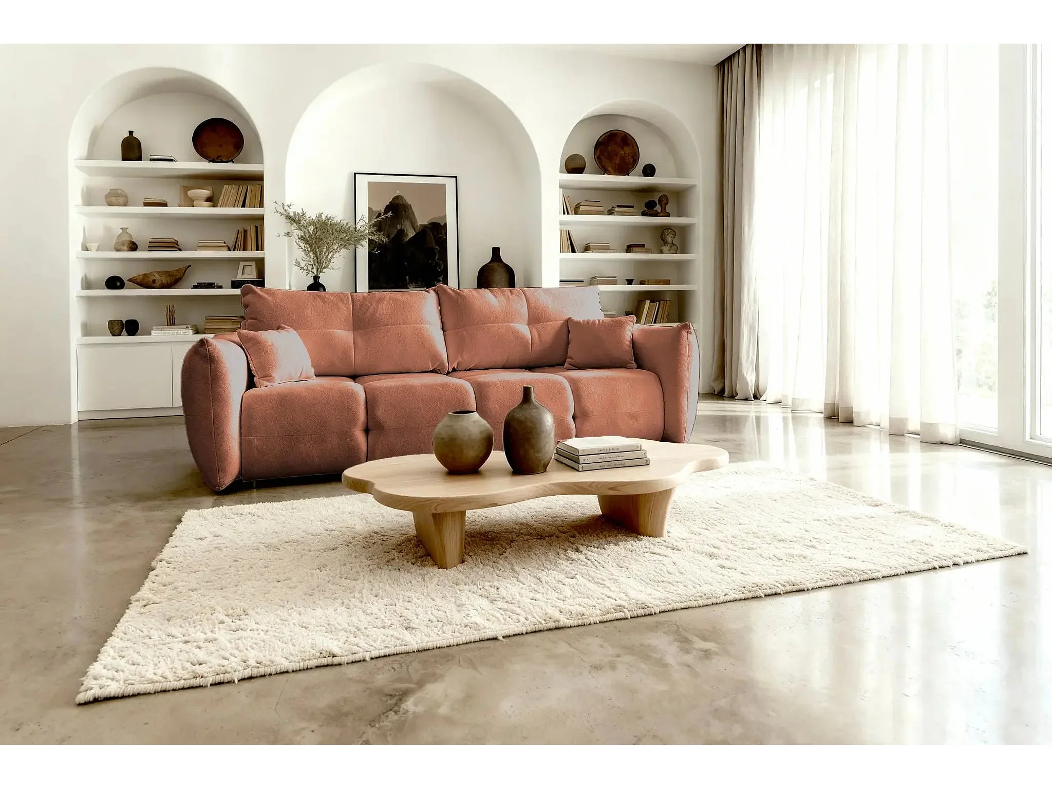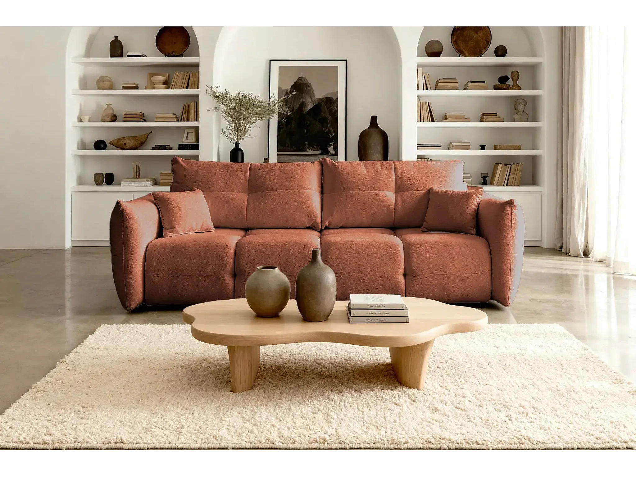 JUNE - Canapé droit convertible tissu bouclette 2 places - Terracotta