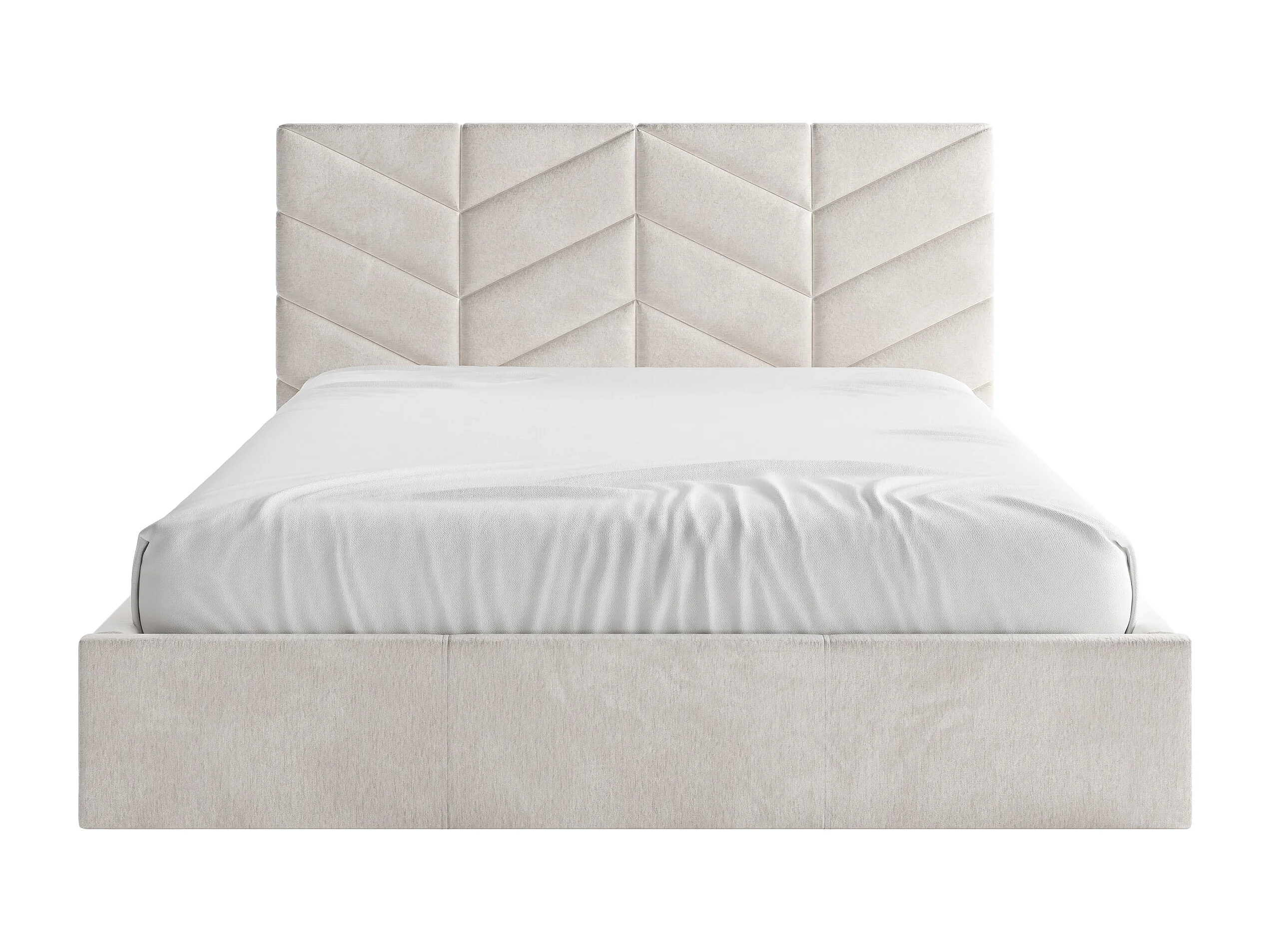 Lit coffre 180 x 200 cm - Tissu texturé - Crème + Matelas - JUSTANI