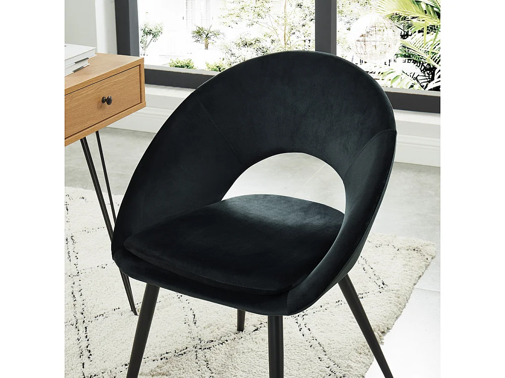 Chaise LEONIE velours noir pieds métal noir
