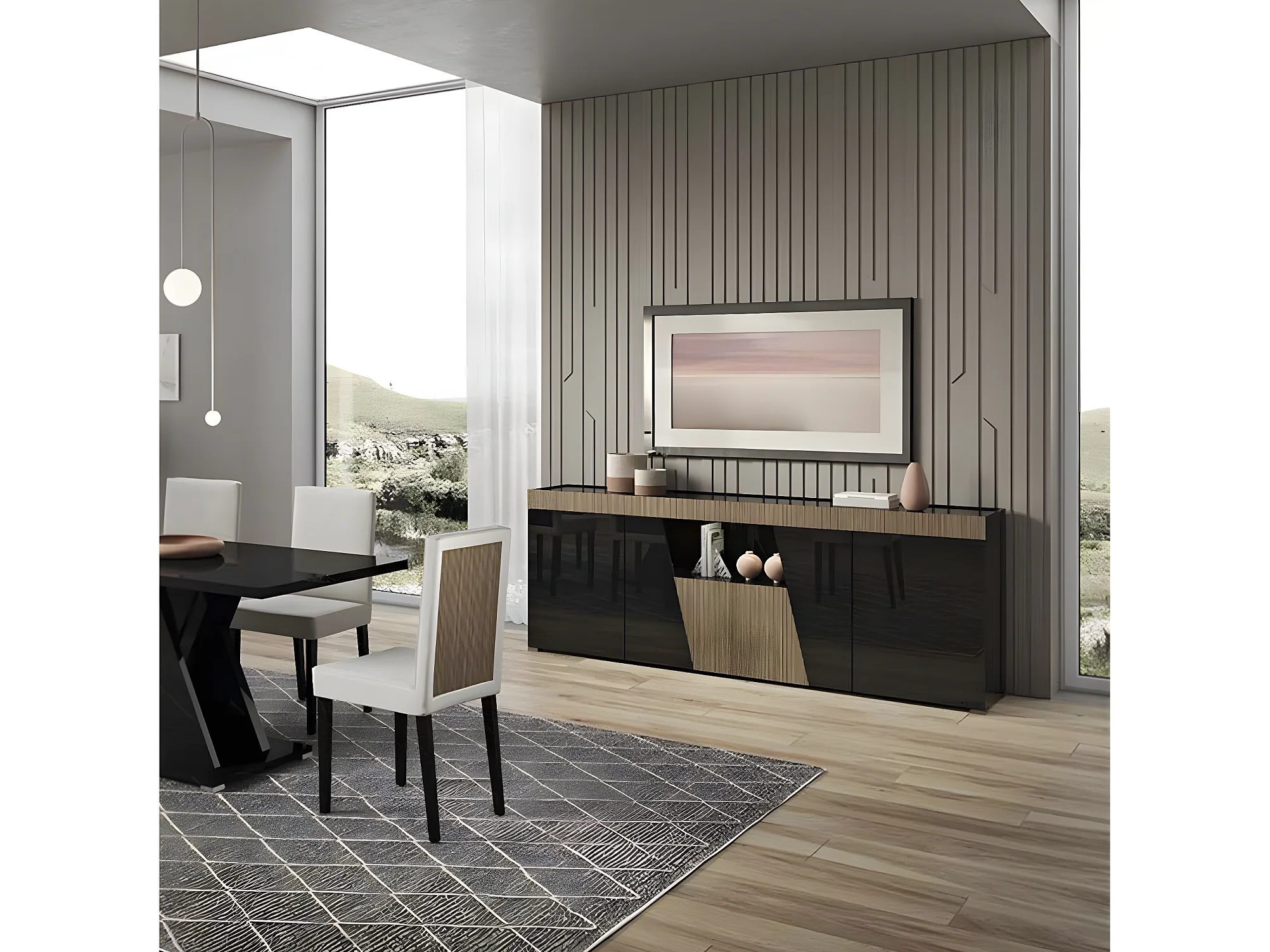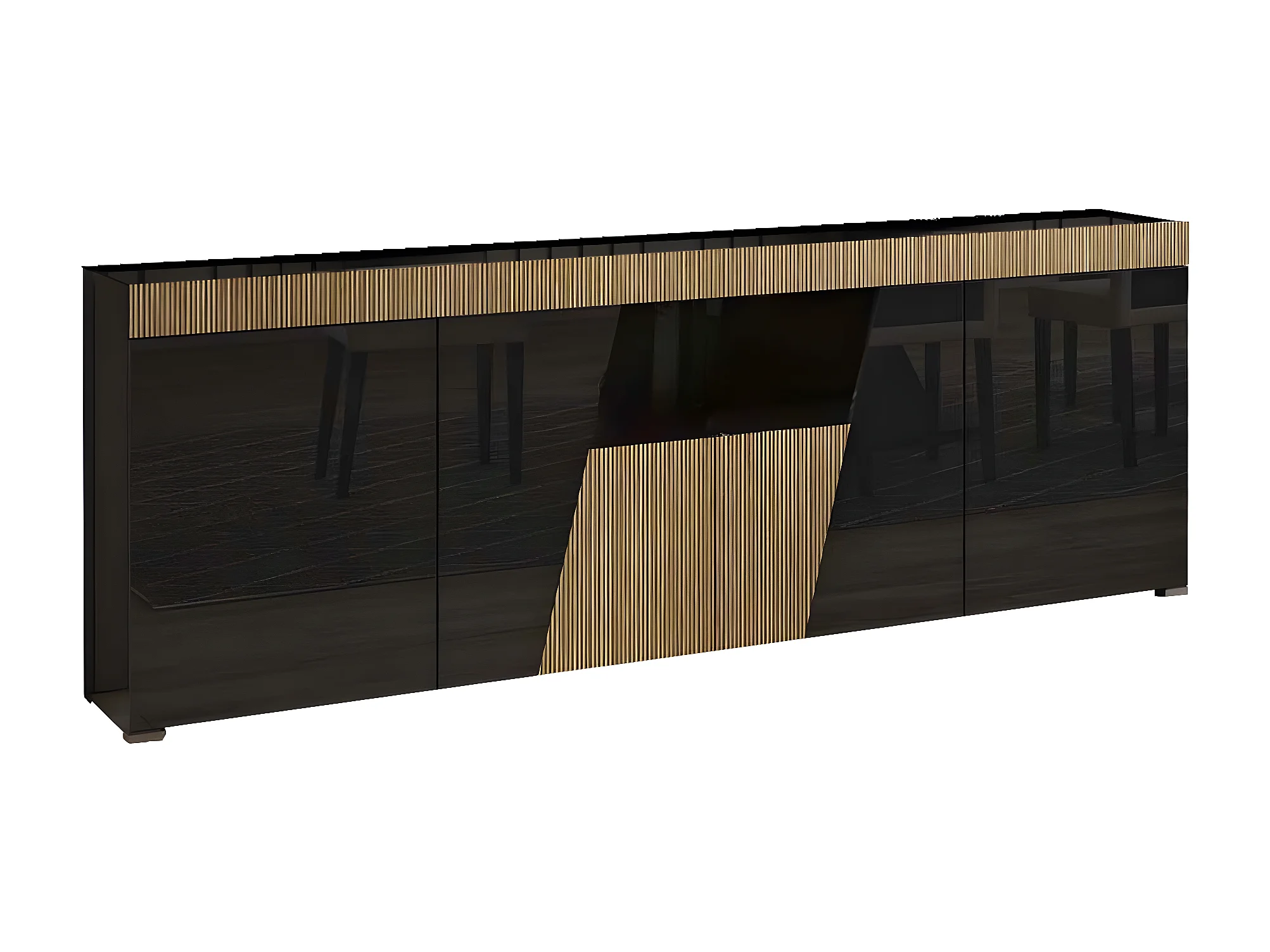 KADALA - Buffet Design 4 Portes Laqué Noir Décor Bois avec Leds