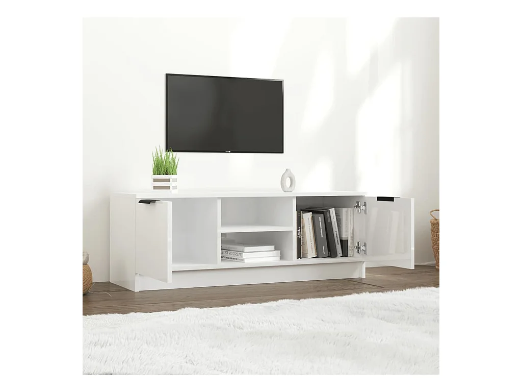 Kaelyn Meuble TV Blanc brillant 102x35x36,5 cm Bois d'ingénierie