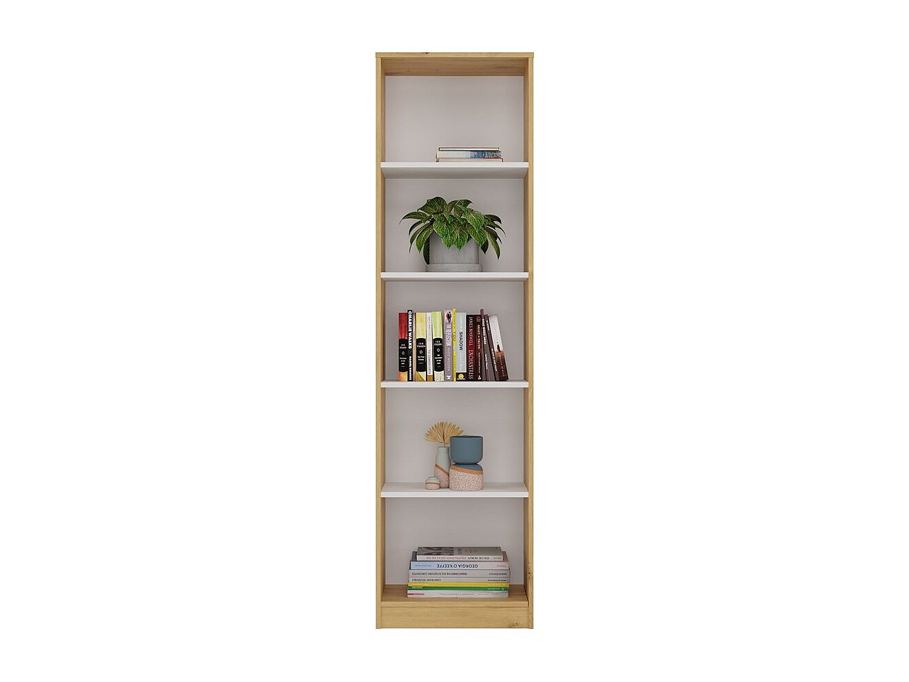 KAFFI - Bibliothèque 5 étagères - 50x30x181 cm - Meuble de rangement livres - Chêne artisan