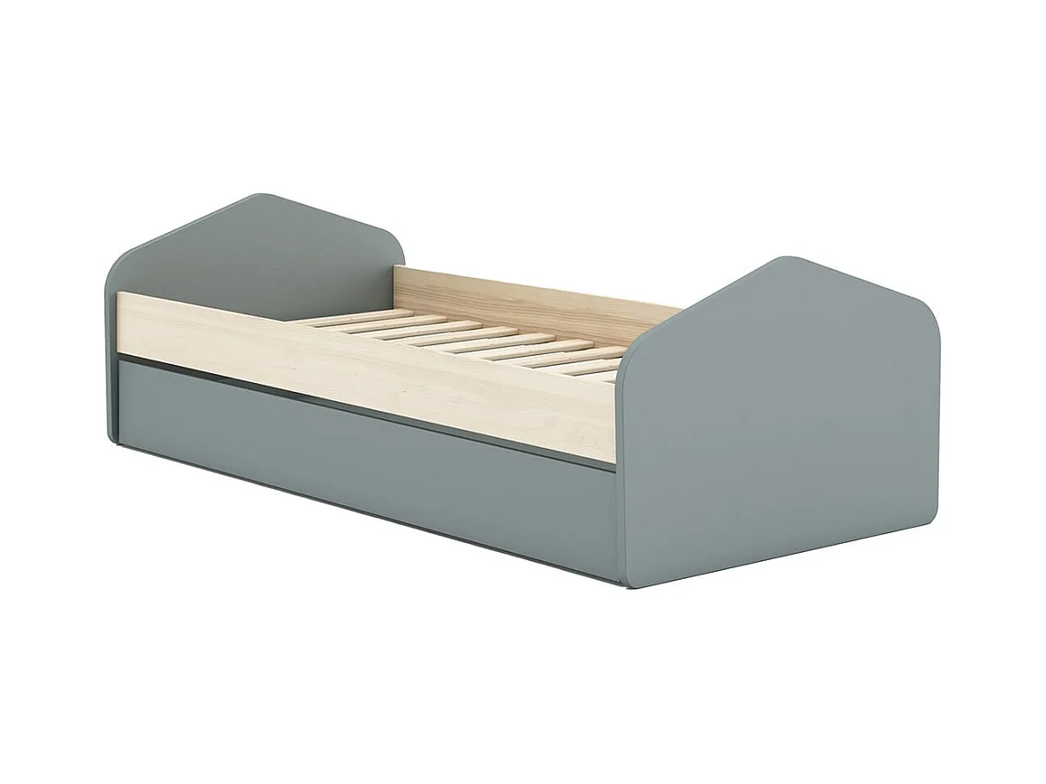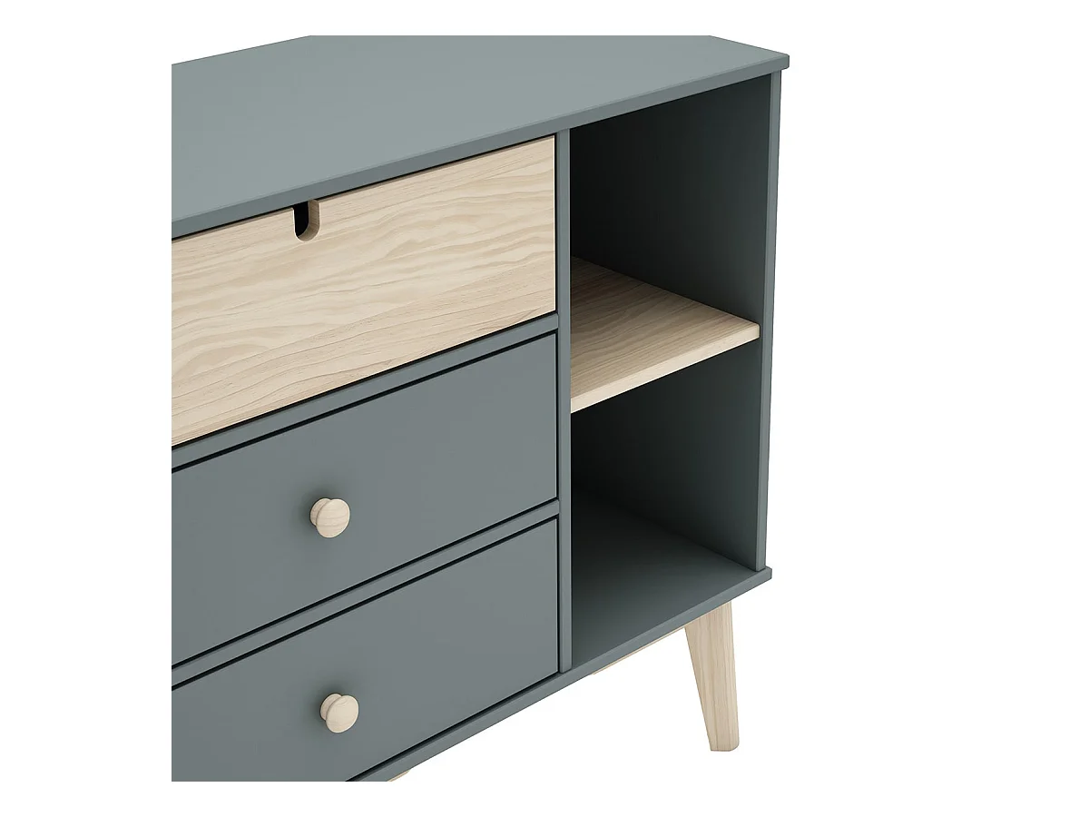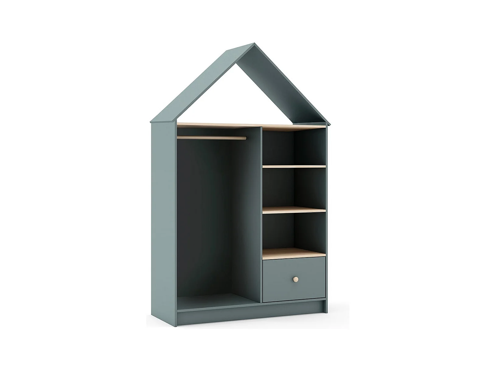 KAINA - Chambre 90x200cm avec Commode 3T et Dressing Cabane Coloris Gris et Naturel