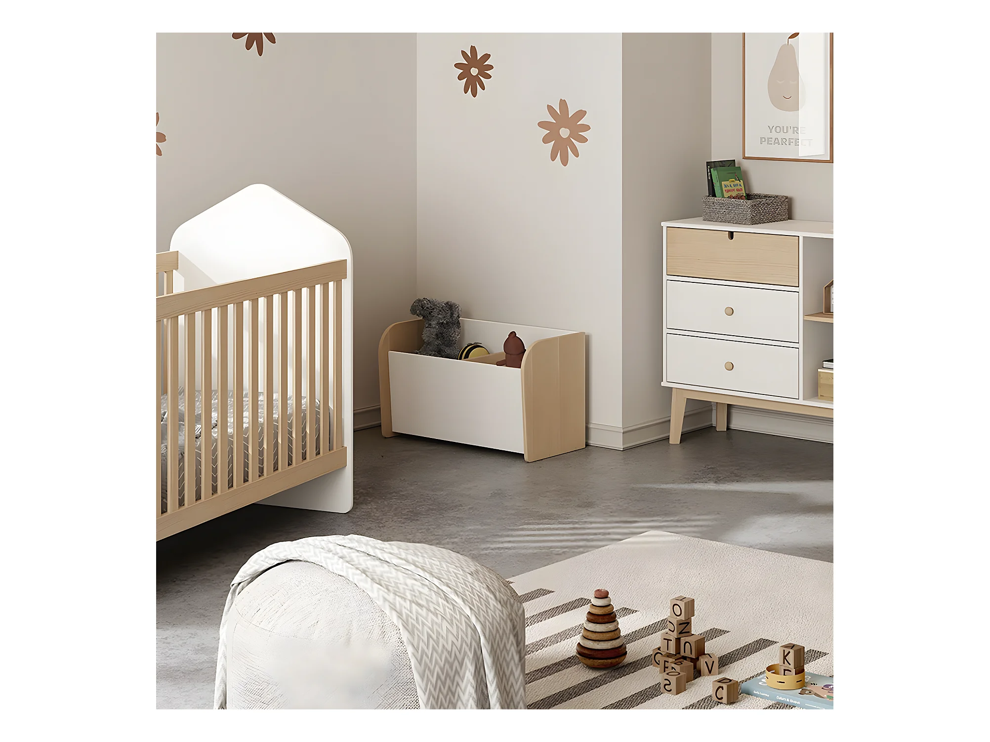 KAINA - Coffre à Jouets en MDF et Pin Coloris Blanc et Naturel