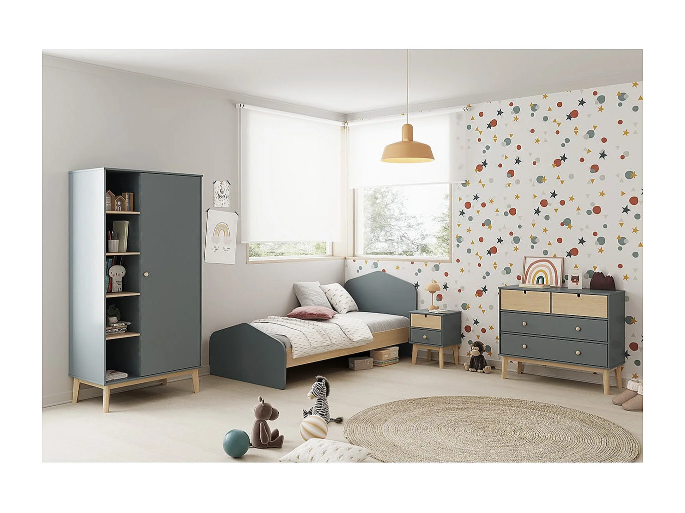 KAINA - Commode 4 Tiroirs MDF et Pin Coloris Gris Vert et Naturel
