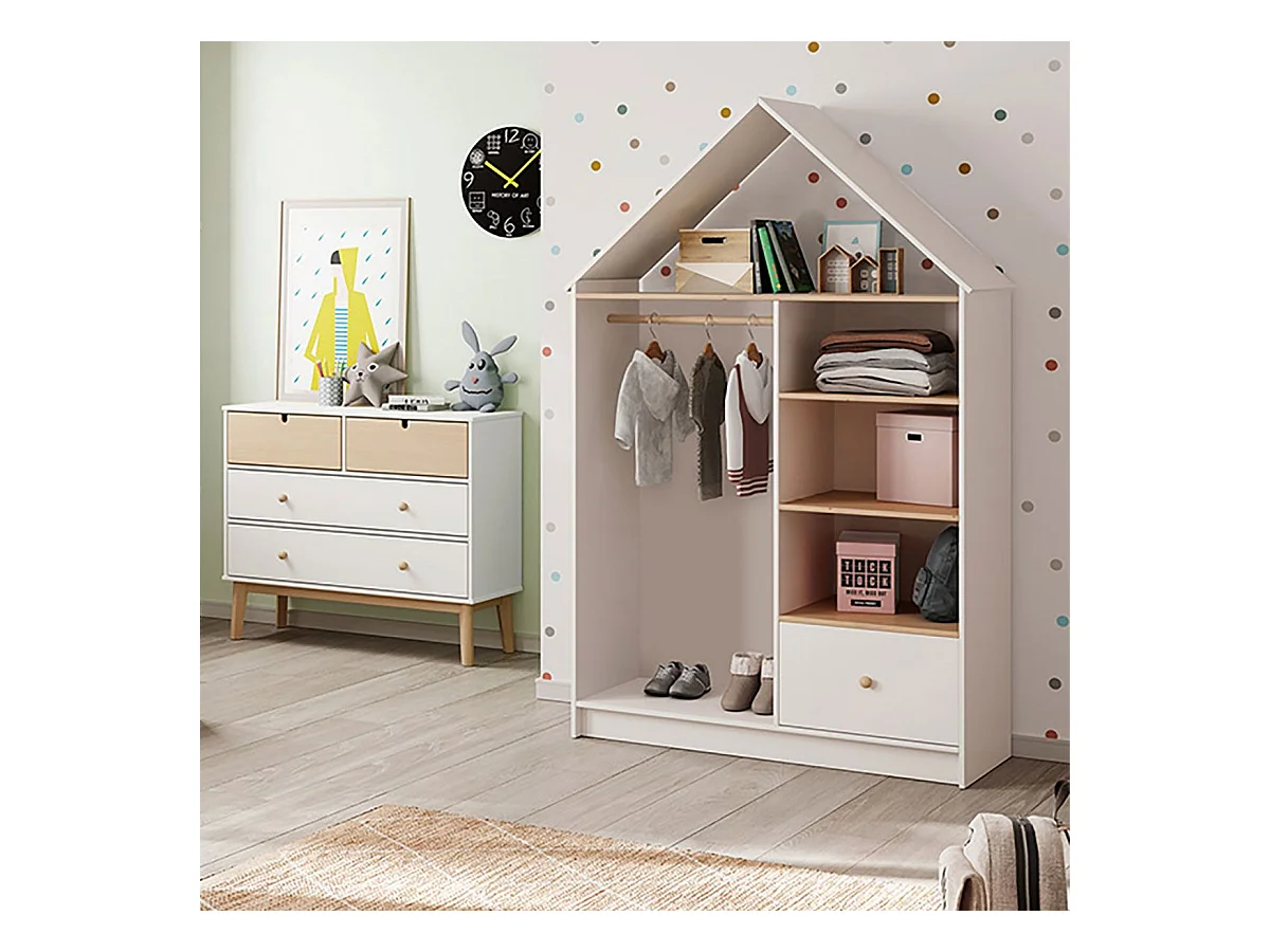 KAINA - Dressing Cabane Enfant MDF et Pin Coloris Blanc et Naturel
